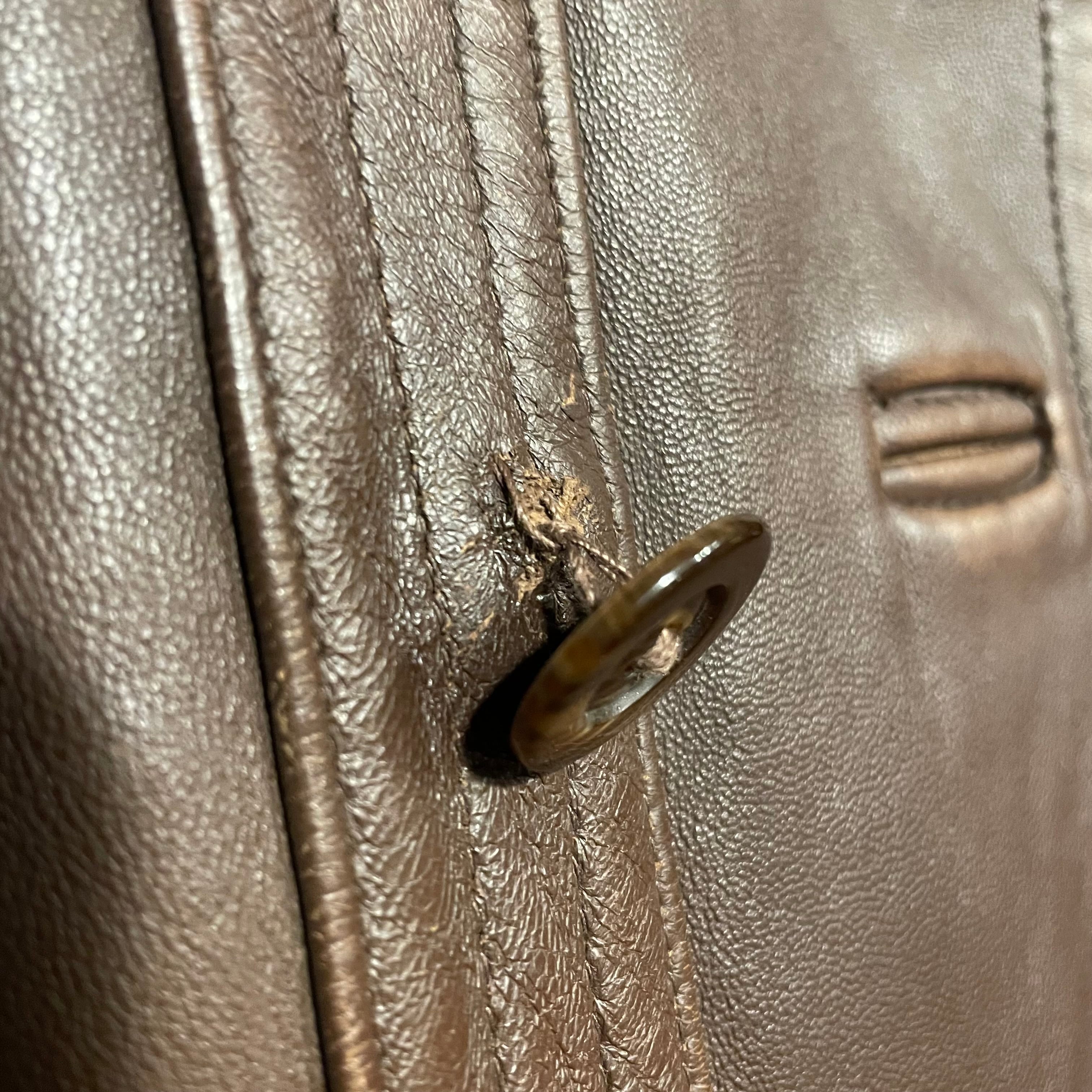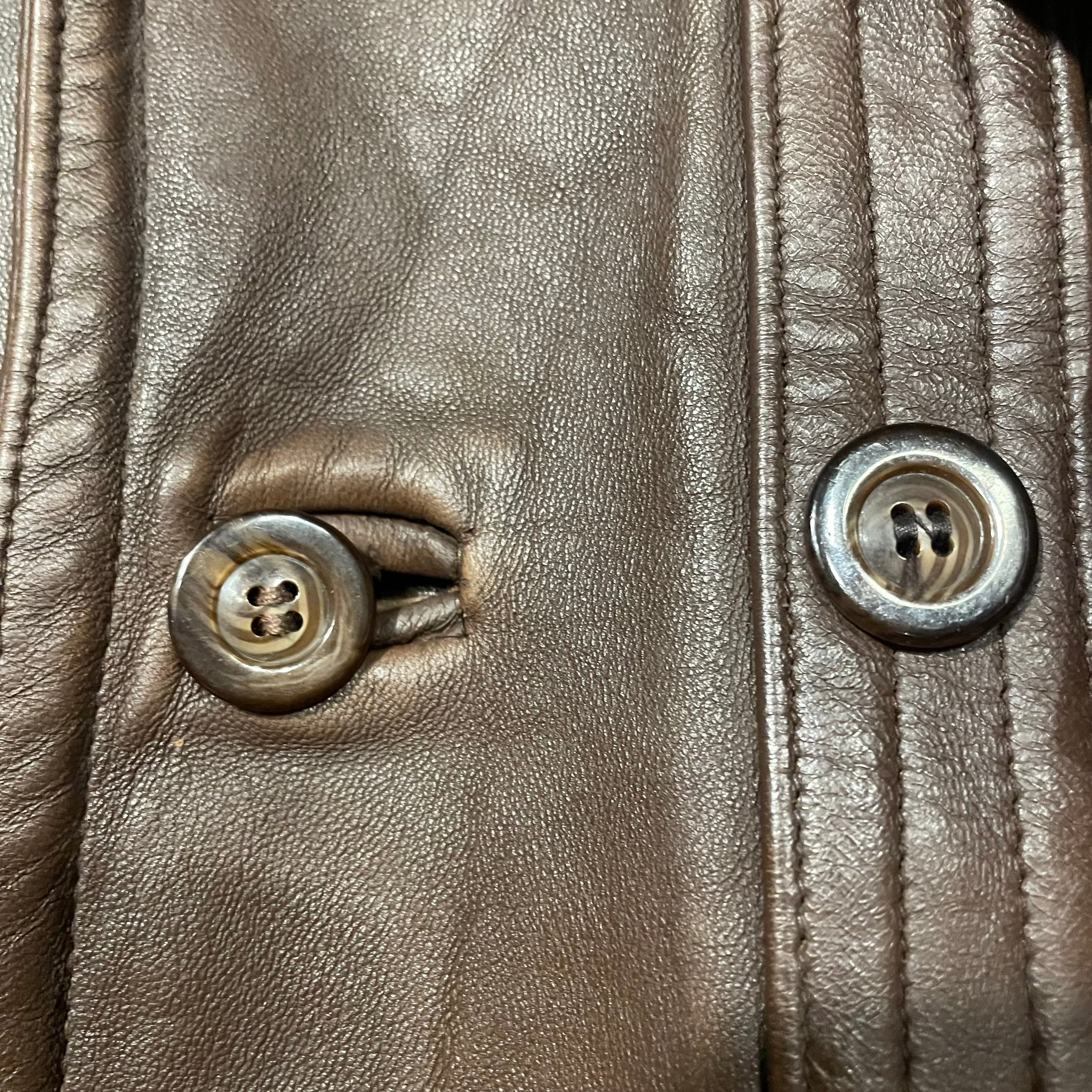 コンディション :フロントの上から二つ目のボタンの糸が伸びて緩くなっている状態で無理に引っ張らない限り取れる心配はございません。着用に問題あるダメージはございません。