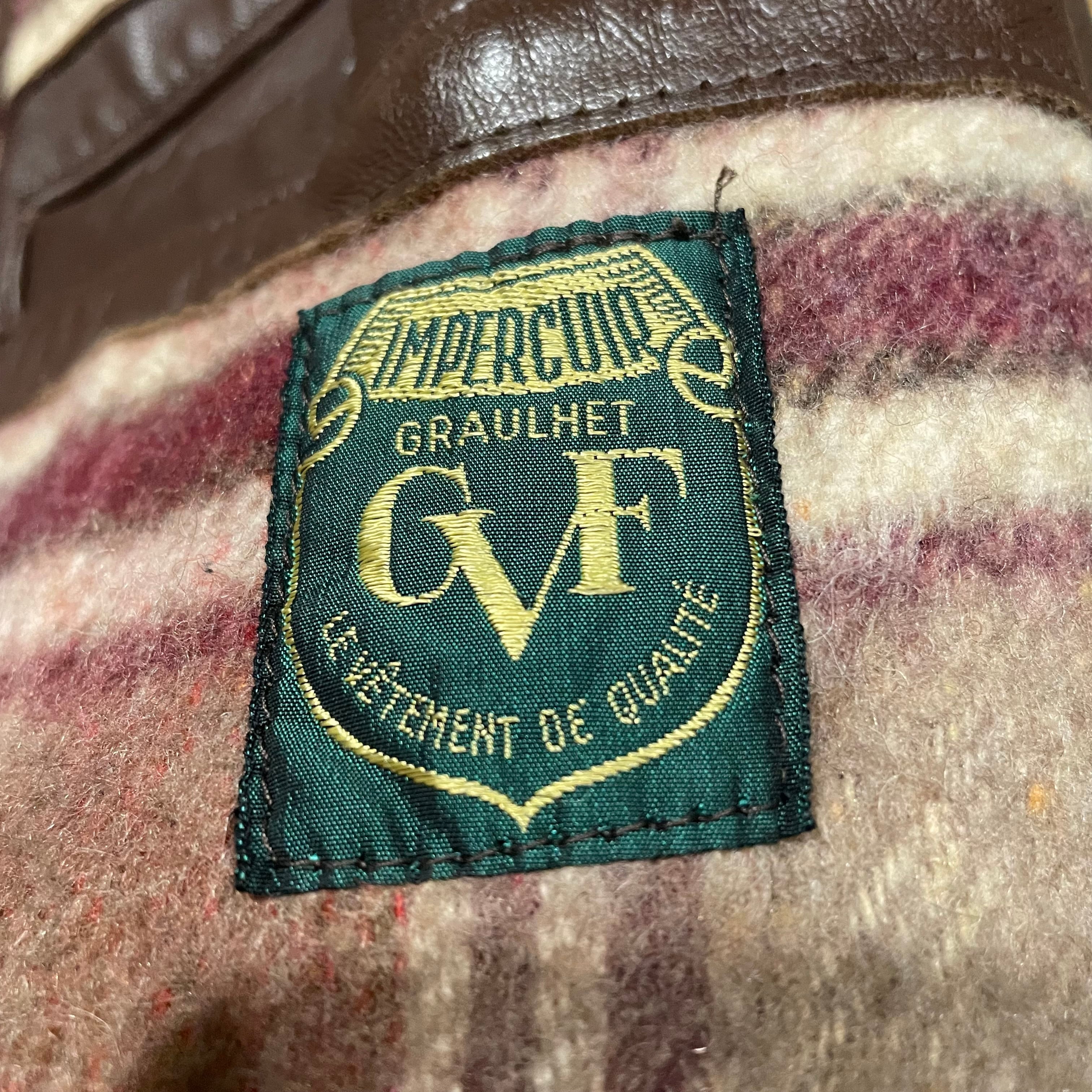 70s GVF IMPERCUIR フランス製 コルビジェジャケット レザー襟 L ユーロ ヴィンテージ レザージャケット ノエルキュイール カバーオール