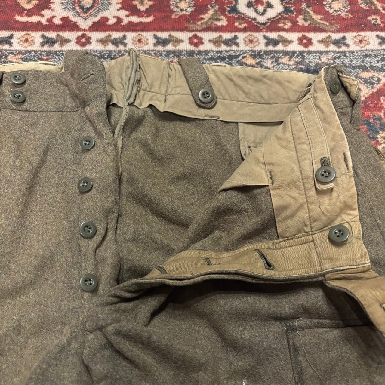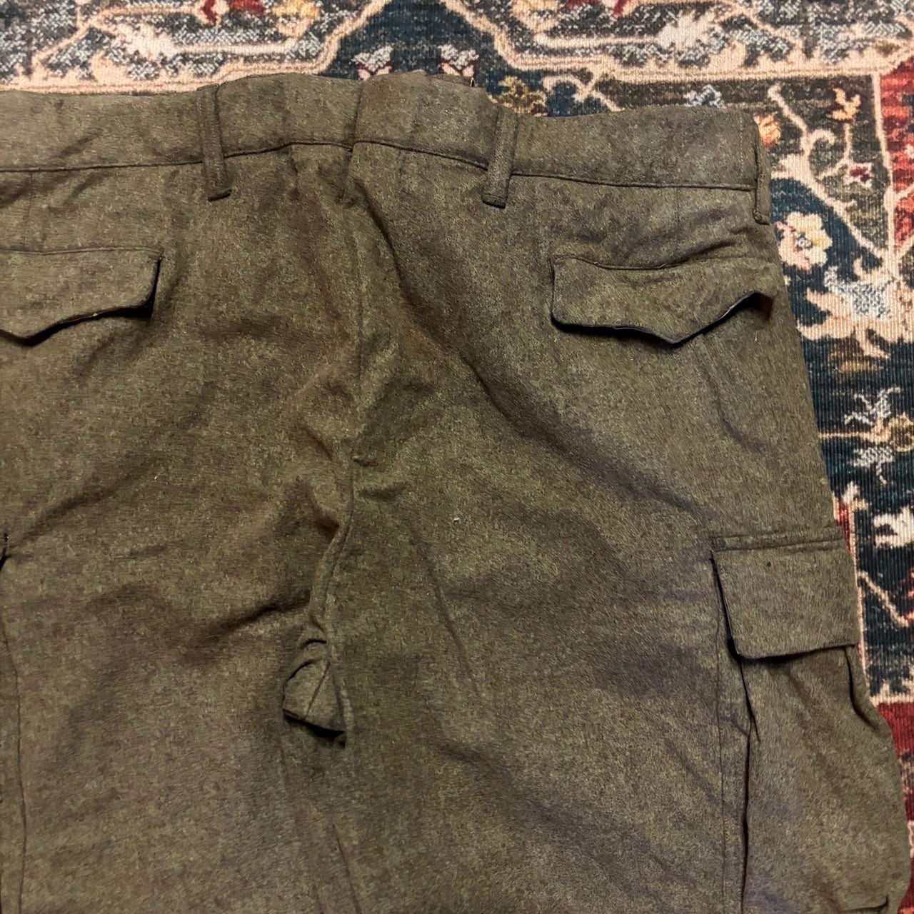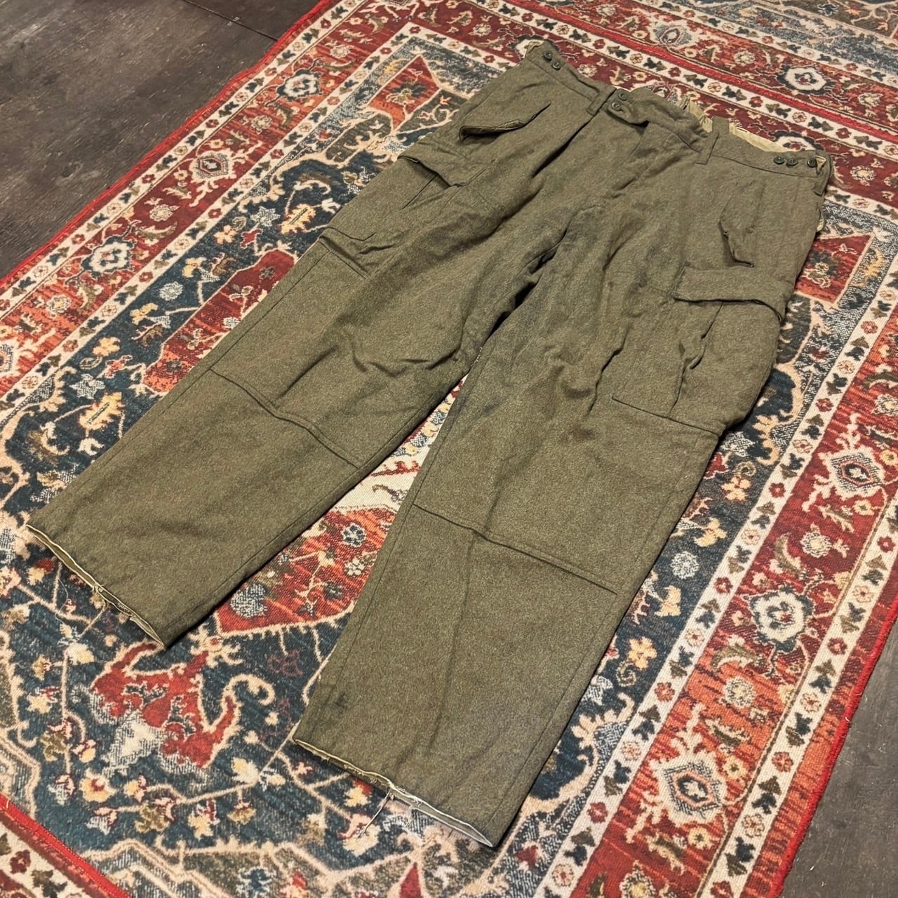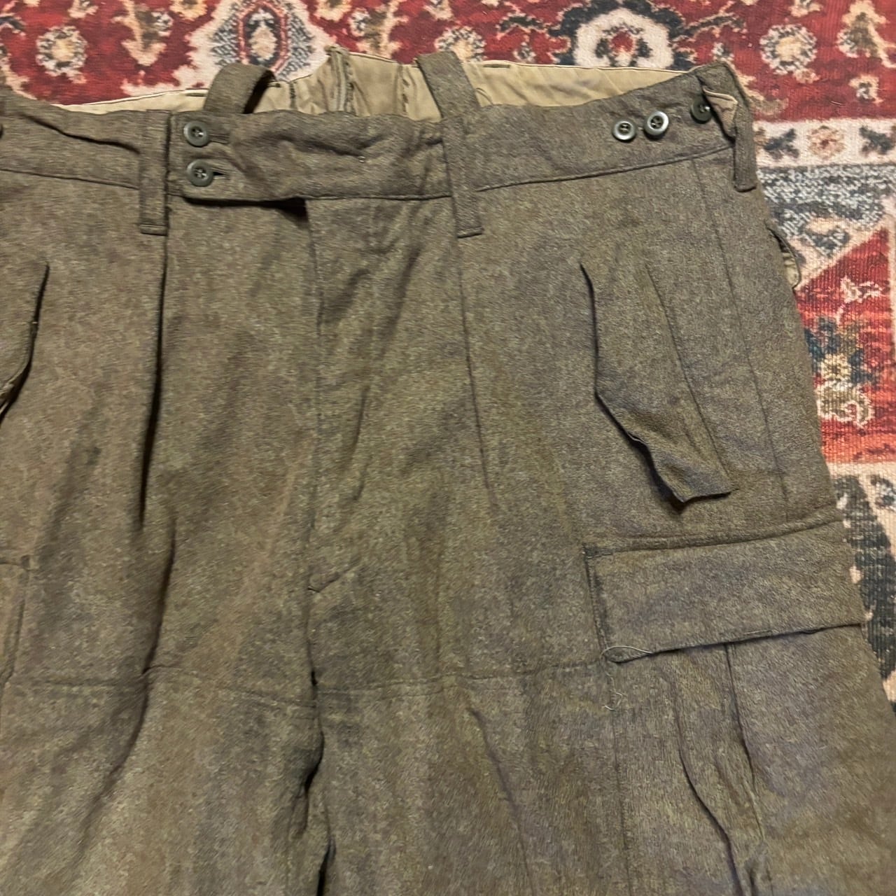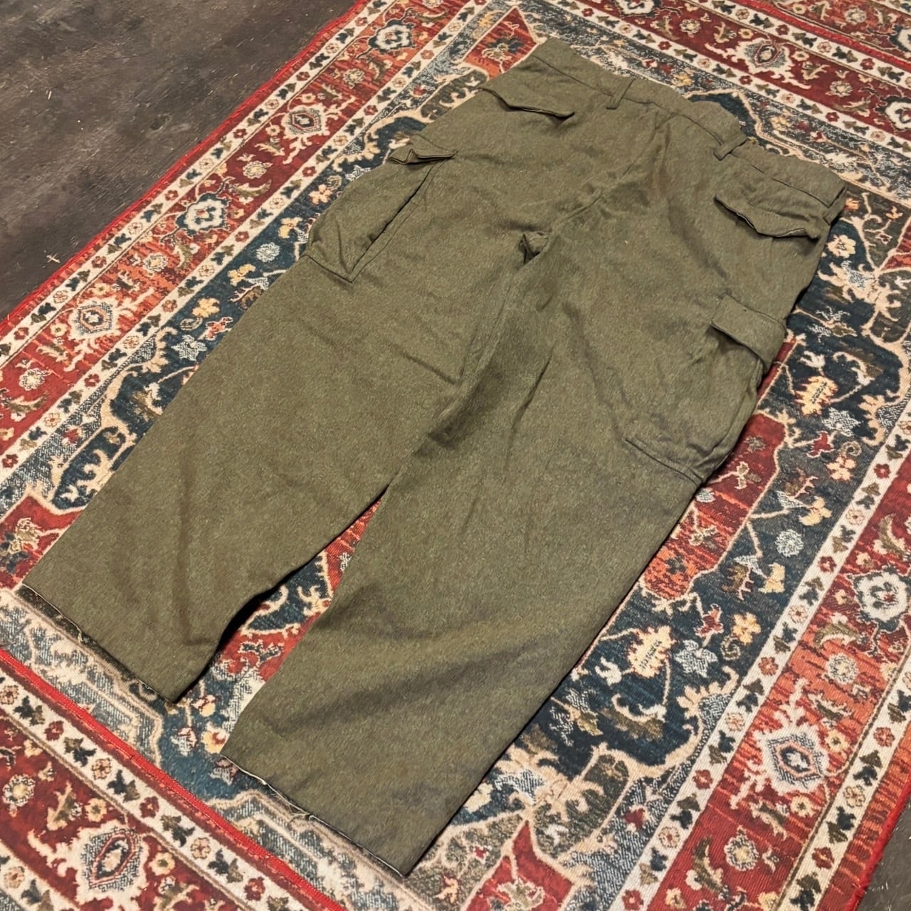 60s ドイツ軍 実物 ウール トラウザー カーゴパンツ ユーロ 100cm ミリタリー 肉厚 オリーブ カーキ メルトン ヴィンテージ 50s 70s
