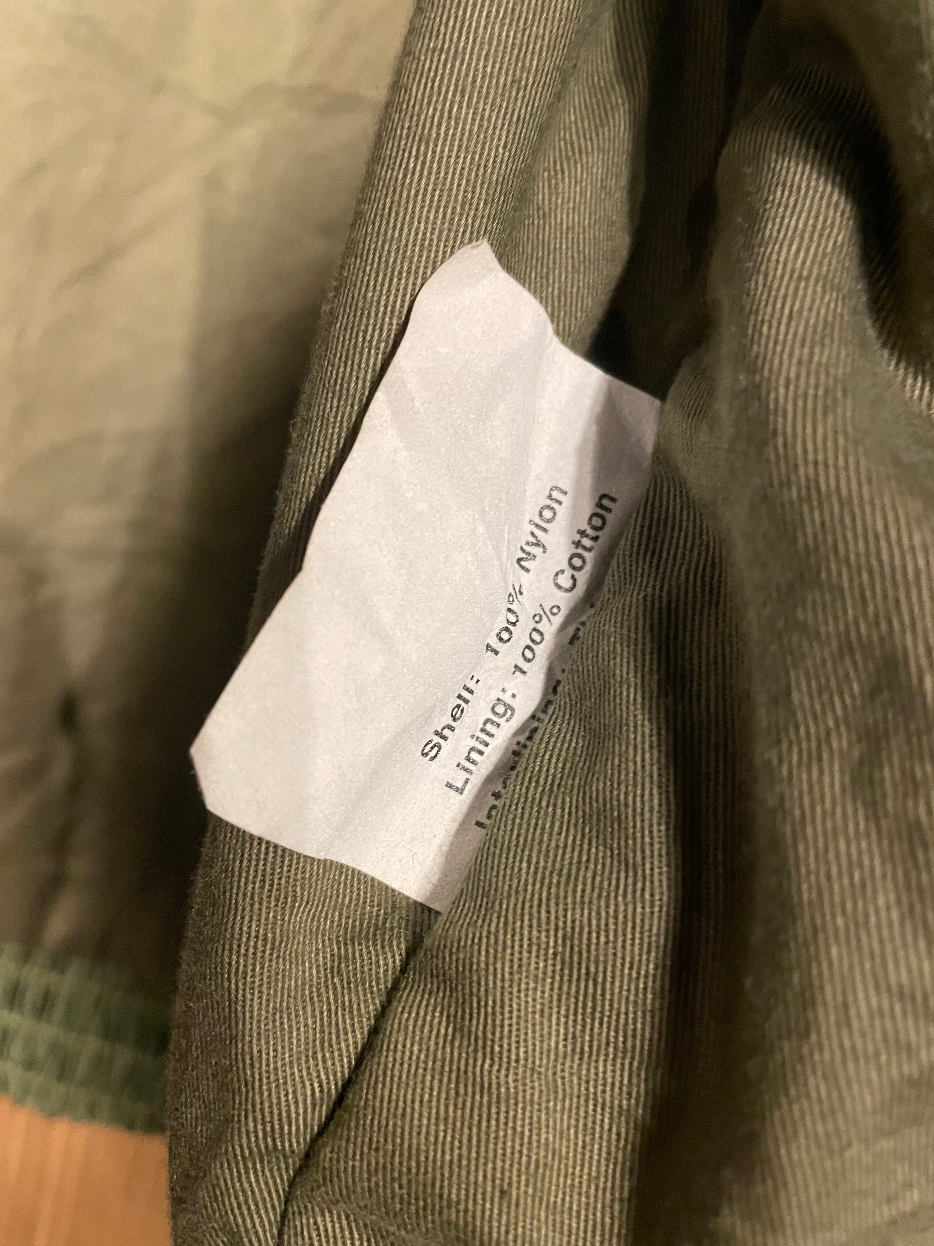 スタンドカラーのグリーンが特徴でフロントポケットの大きさデザイン実用性を兼ねている。