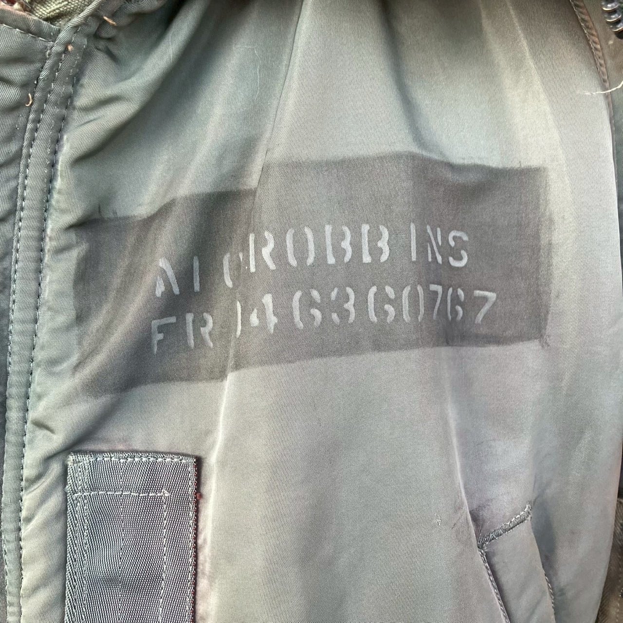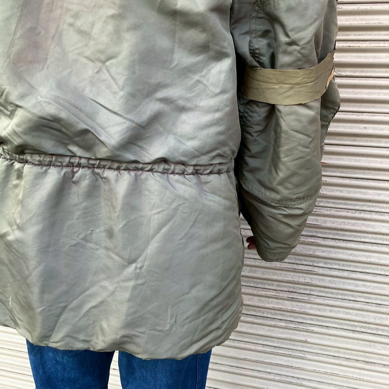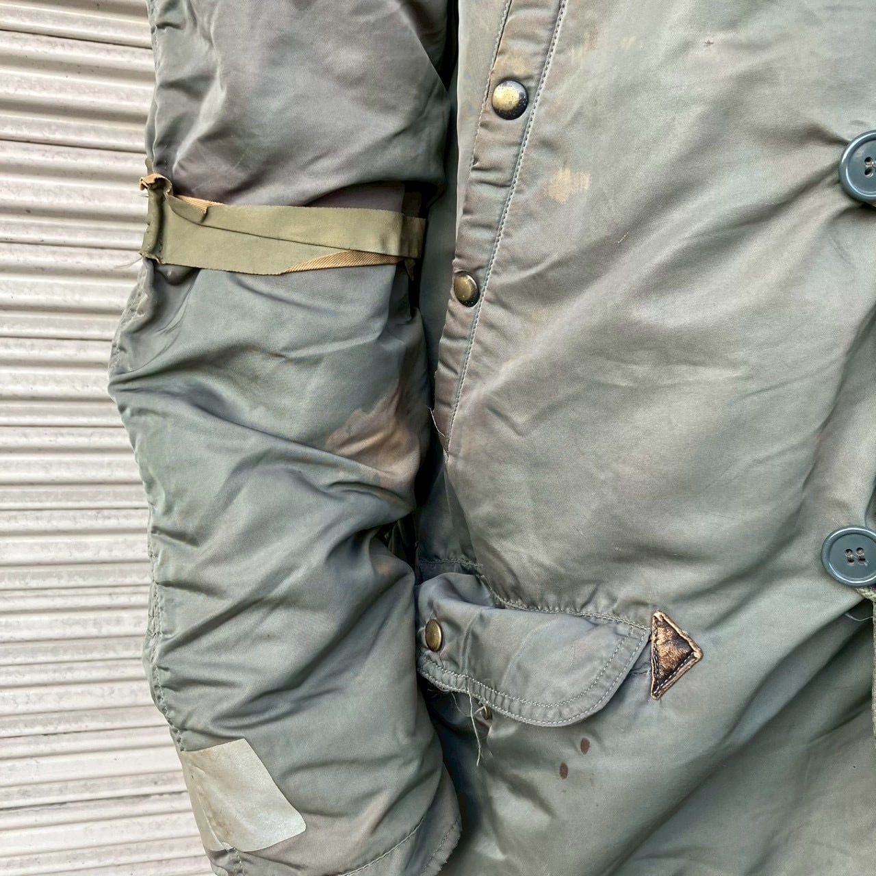 胸・袖・背面には当時のステンシルやリフレクターテープ跡が確認でき、リアルなミリタリーの雰囲気が強く感じられる一着です。