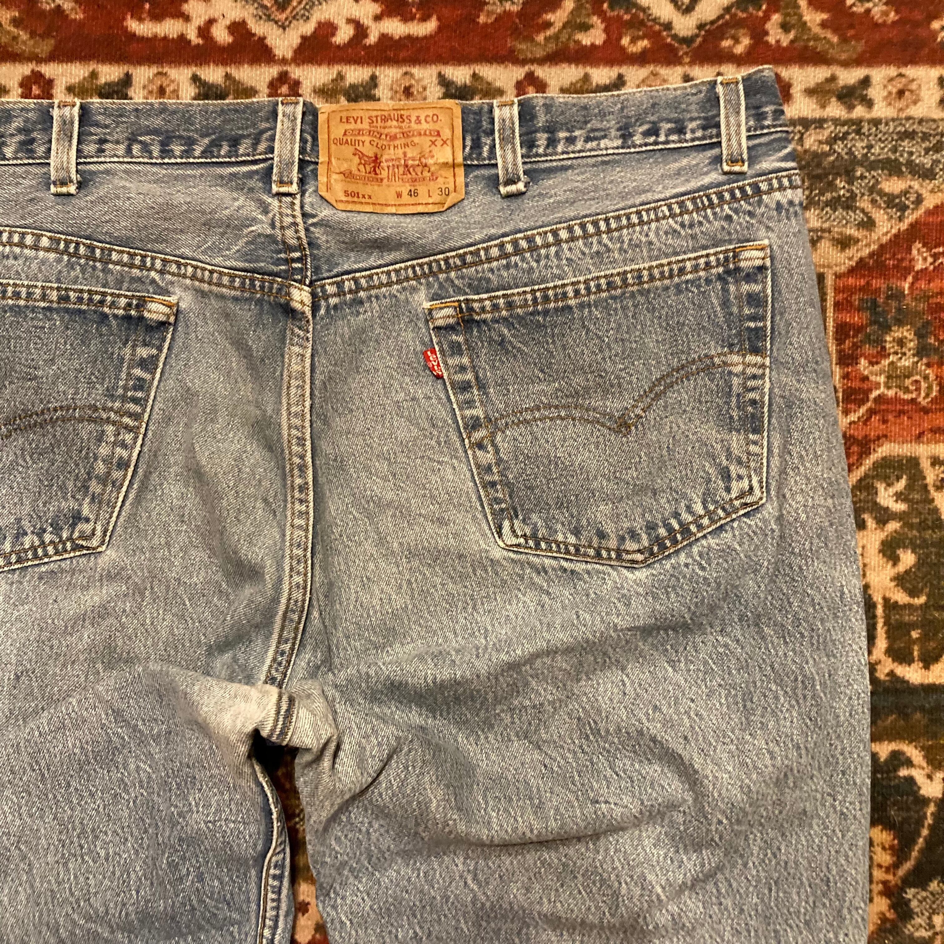 90s Levi's USA製 501 デニムパンツ W46 L30 W112cm リーバイス ヴィンテージ グランジ ダメージ ジーンズ 552刻印 インディゴ 80s