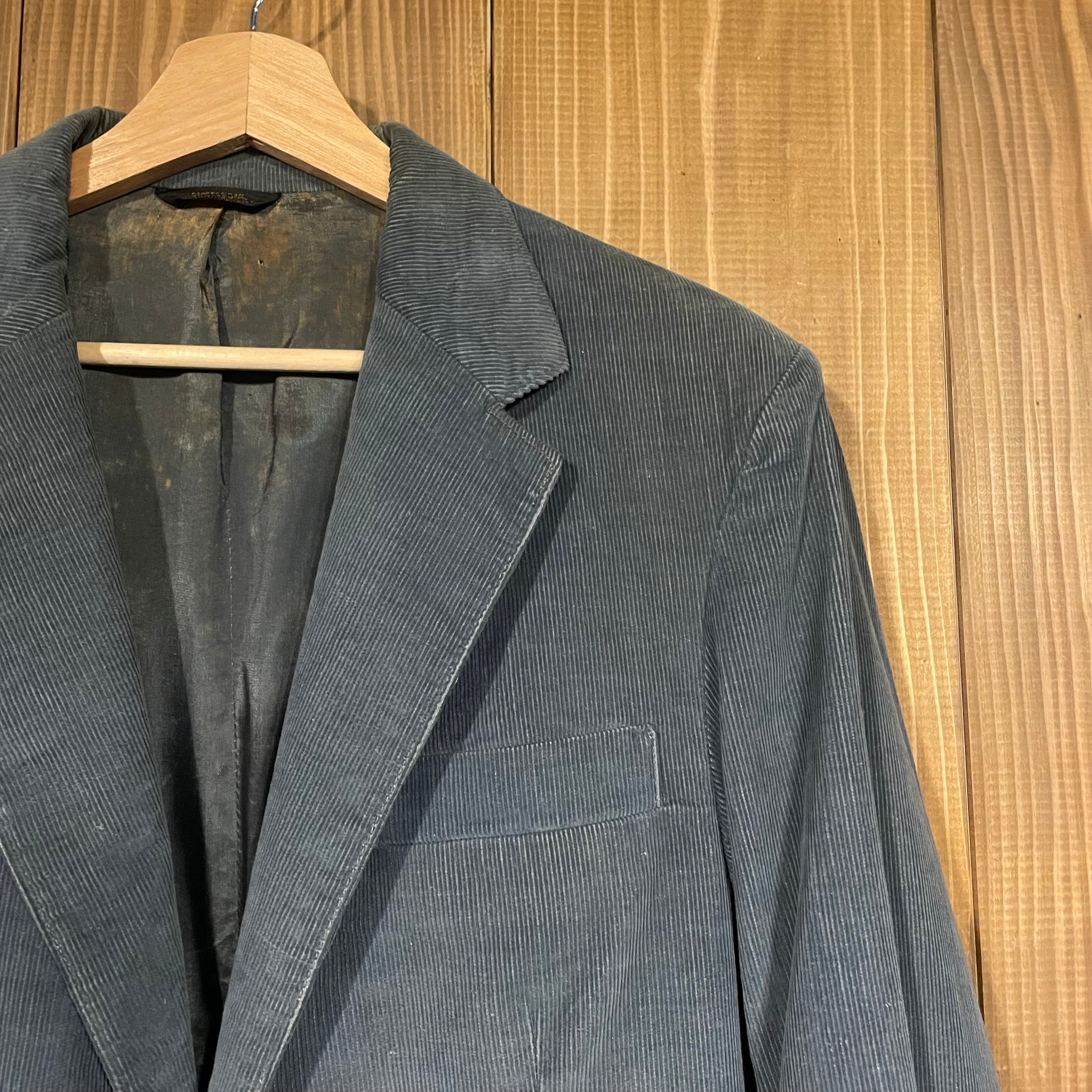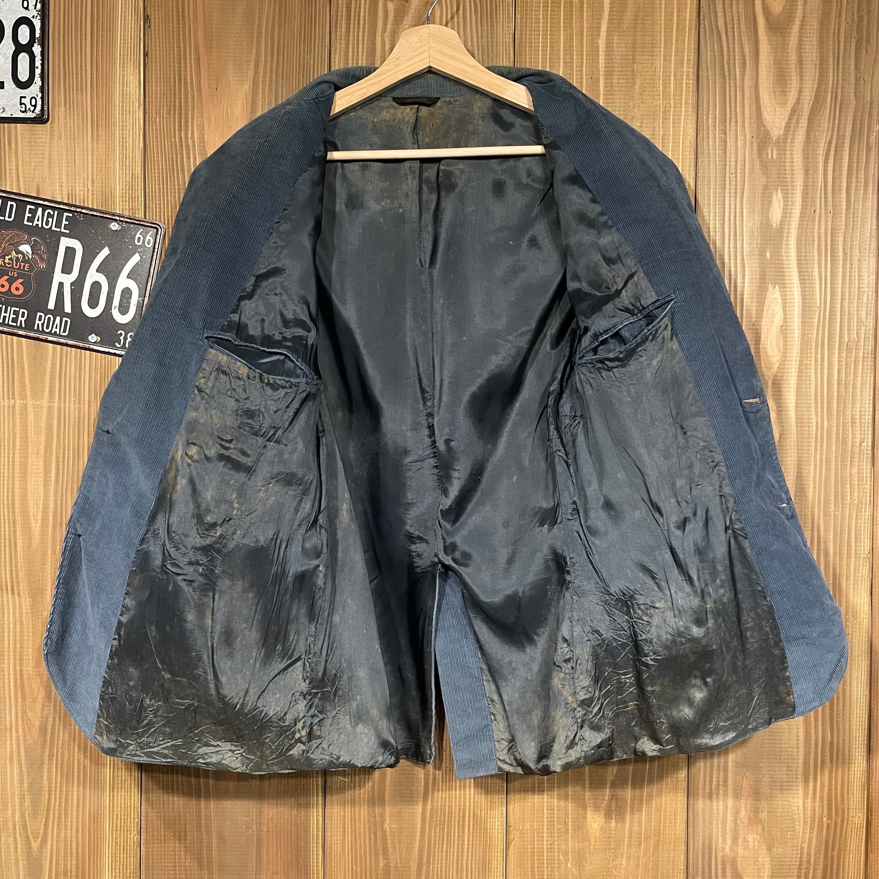 80s USA製 コーデュロイジャケット テーラード ジャケット ヴィンテージ ブレザー フェード ブルー グレー フォーマル シングル