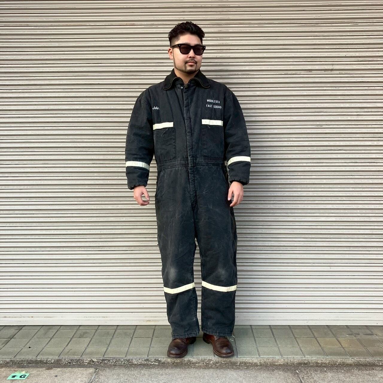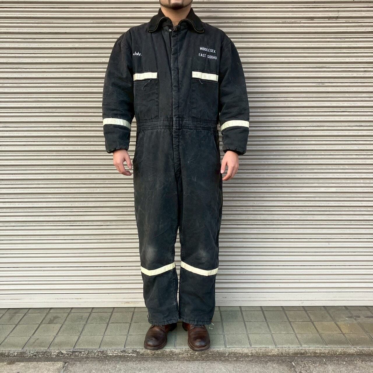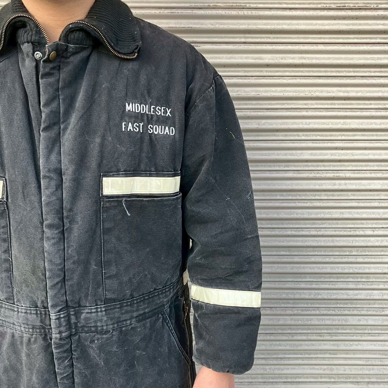 90s アメリカ緊急救命隊 実物 MIDDLESEX FAST SQUAD 刺繍入り ヴィンテージ ワーク カバーオール ブラック ツナギ レスキュー隊 00s L