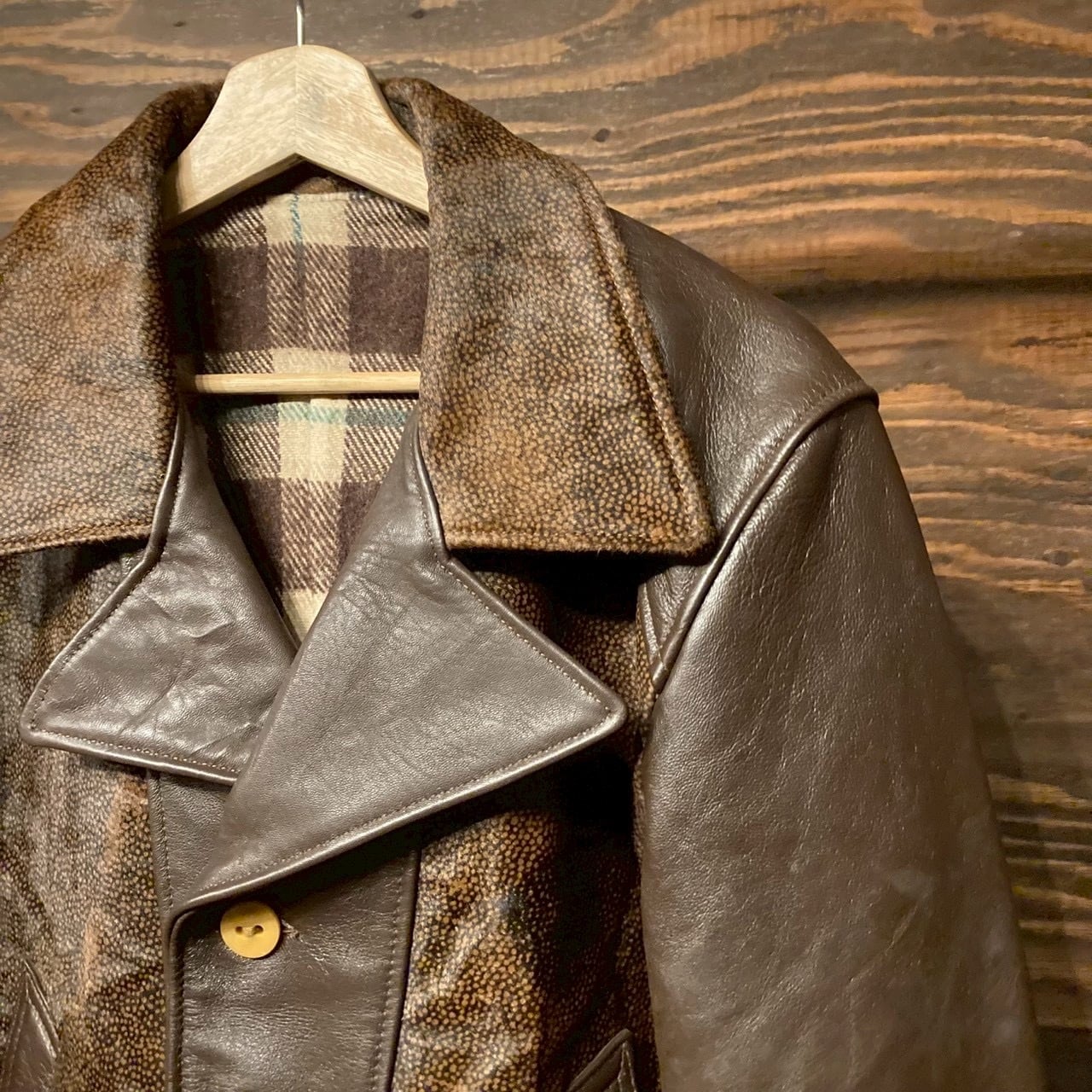 Vintage Leather Grizzly Jacket 再構築 熊ジャン ヴィンテージ ハラコ グリズリージャケット レザー ムートン ブラウン 40s 50s ライダース ボタンタイプ