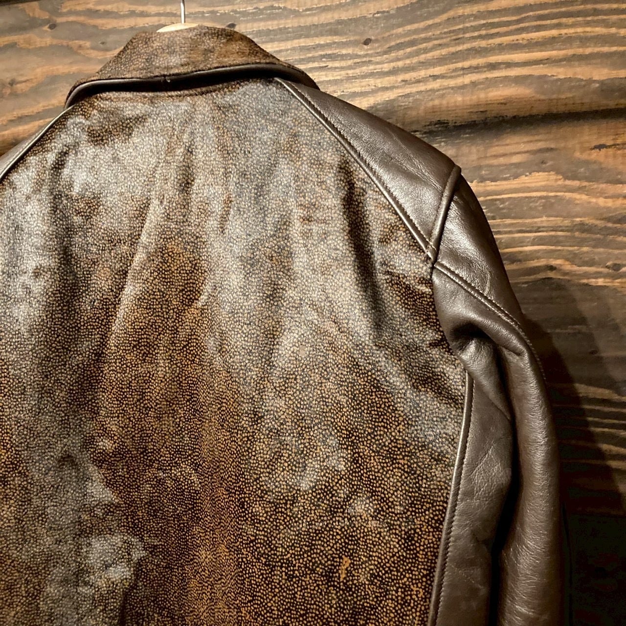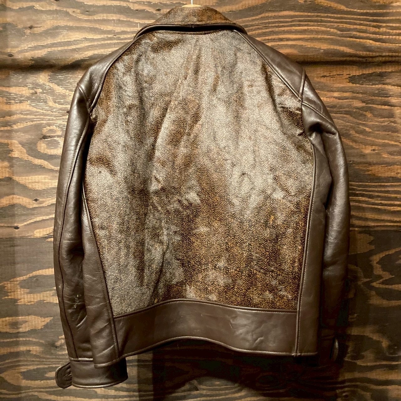 1940〜50年代のヴィンテージレザーを解体して再構築して作ったグリズリージャケット。