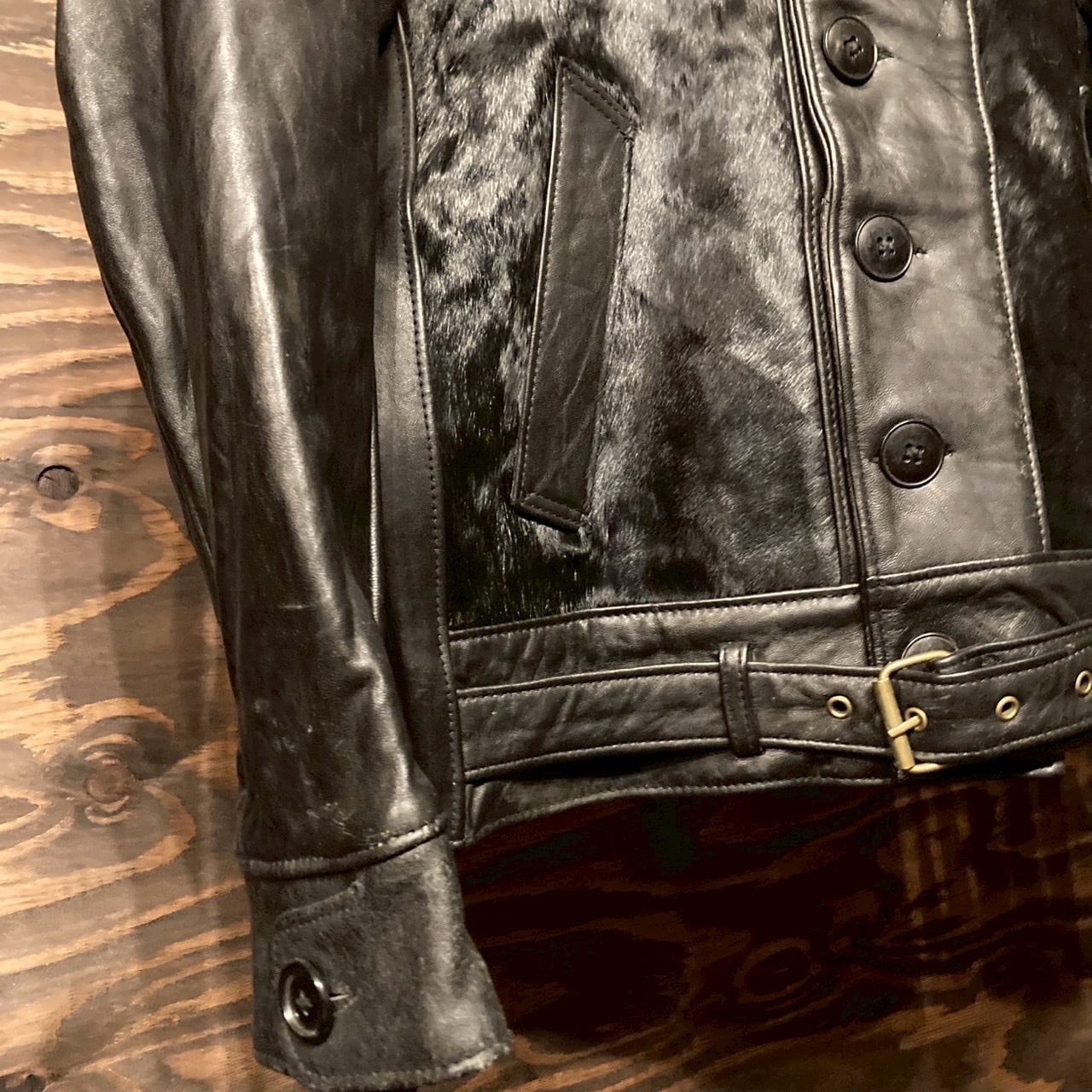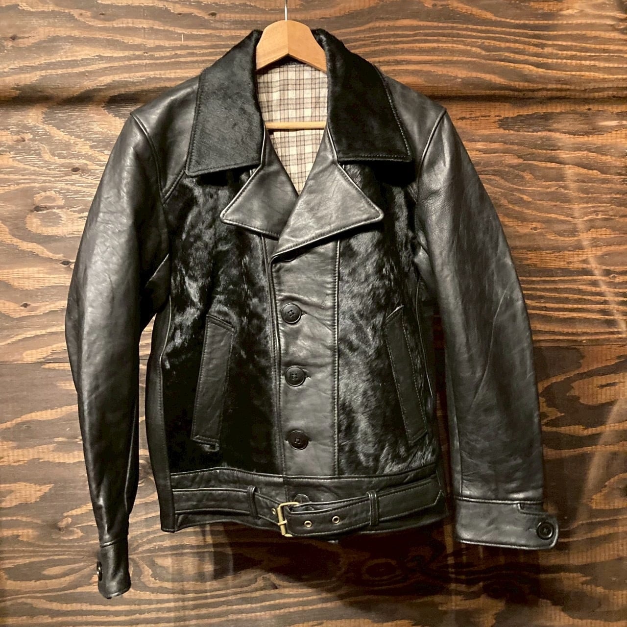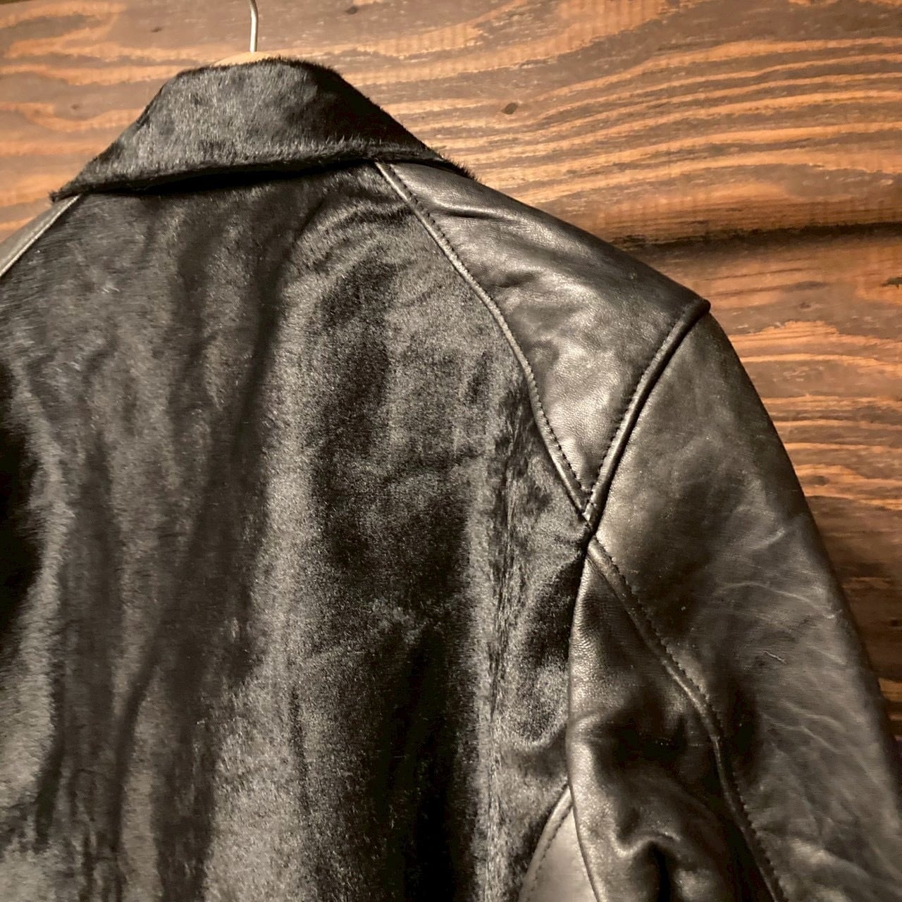 Vintage Leather Grizzly Jacket 再構築 熊ジャン ヴィンテージ ハラコ グリズリージャケット レザー ムートン ブラック 40s 50s ライダース ボタンタイプ