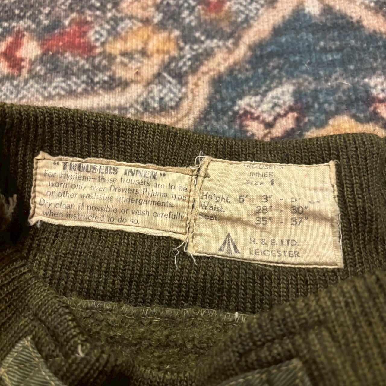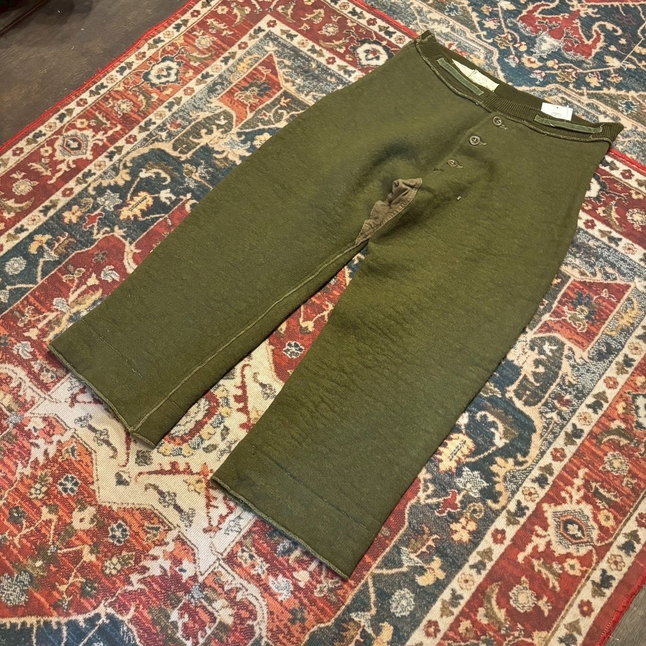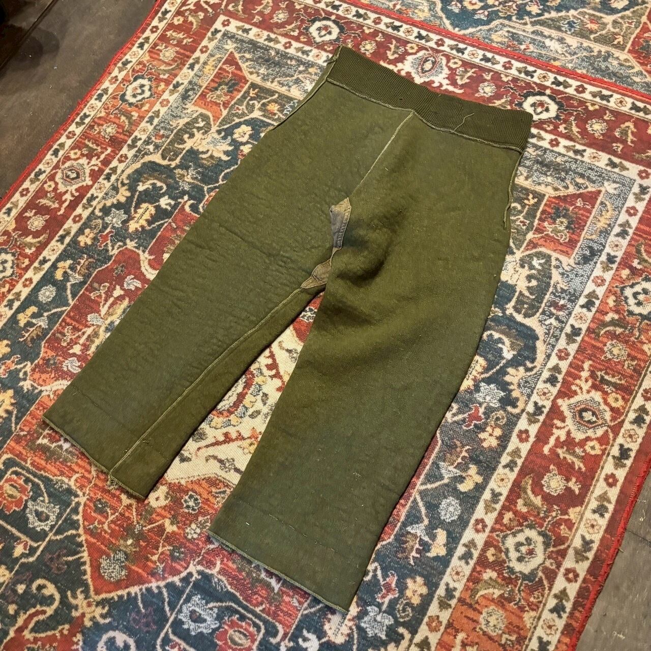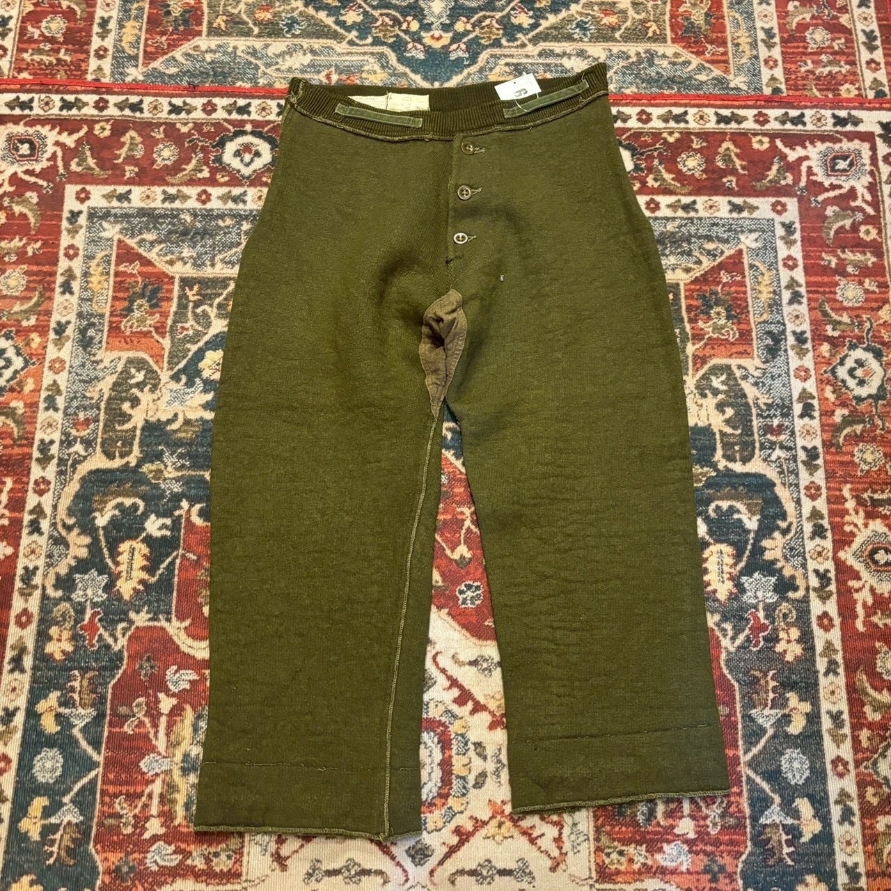 50s イギリス軍 ライナーパンツ トラウザーズ インナーパンツ W88cm オリーブ グリーン スリーピン スウェットパンツ ウール コットン 40s