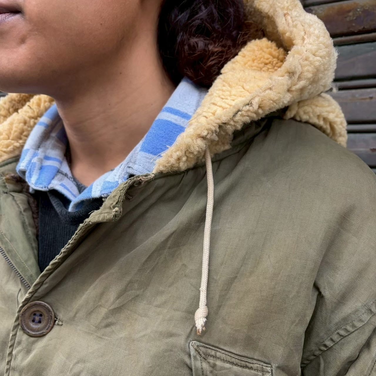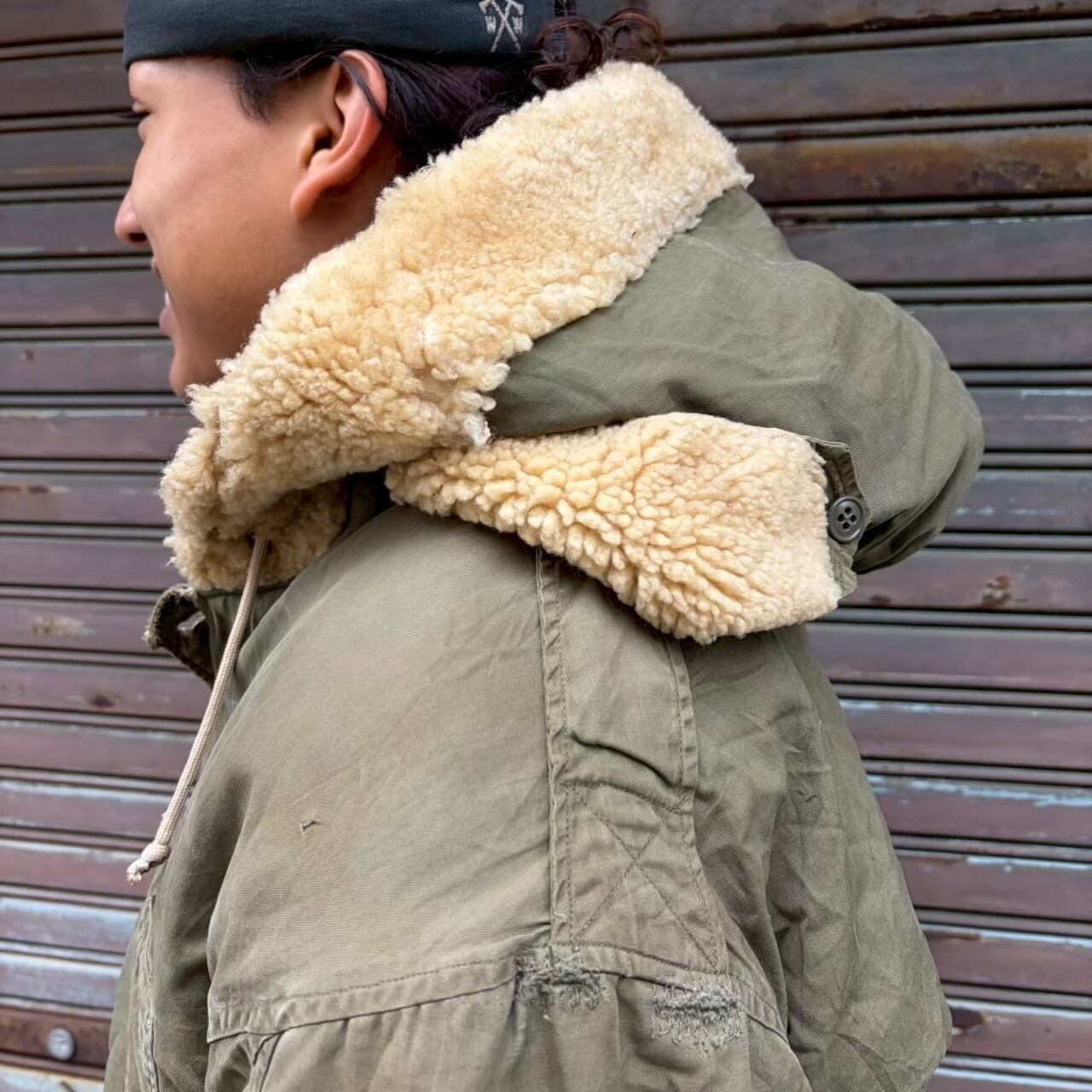 40s USAF 米軍 陸軍航空隊 B-11 フライトジャケット パーカー ヴィンテージ 民間 B-9 50s 白ムートン ミリタリー 雰囲気抜群 モッズコート