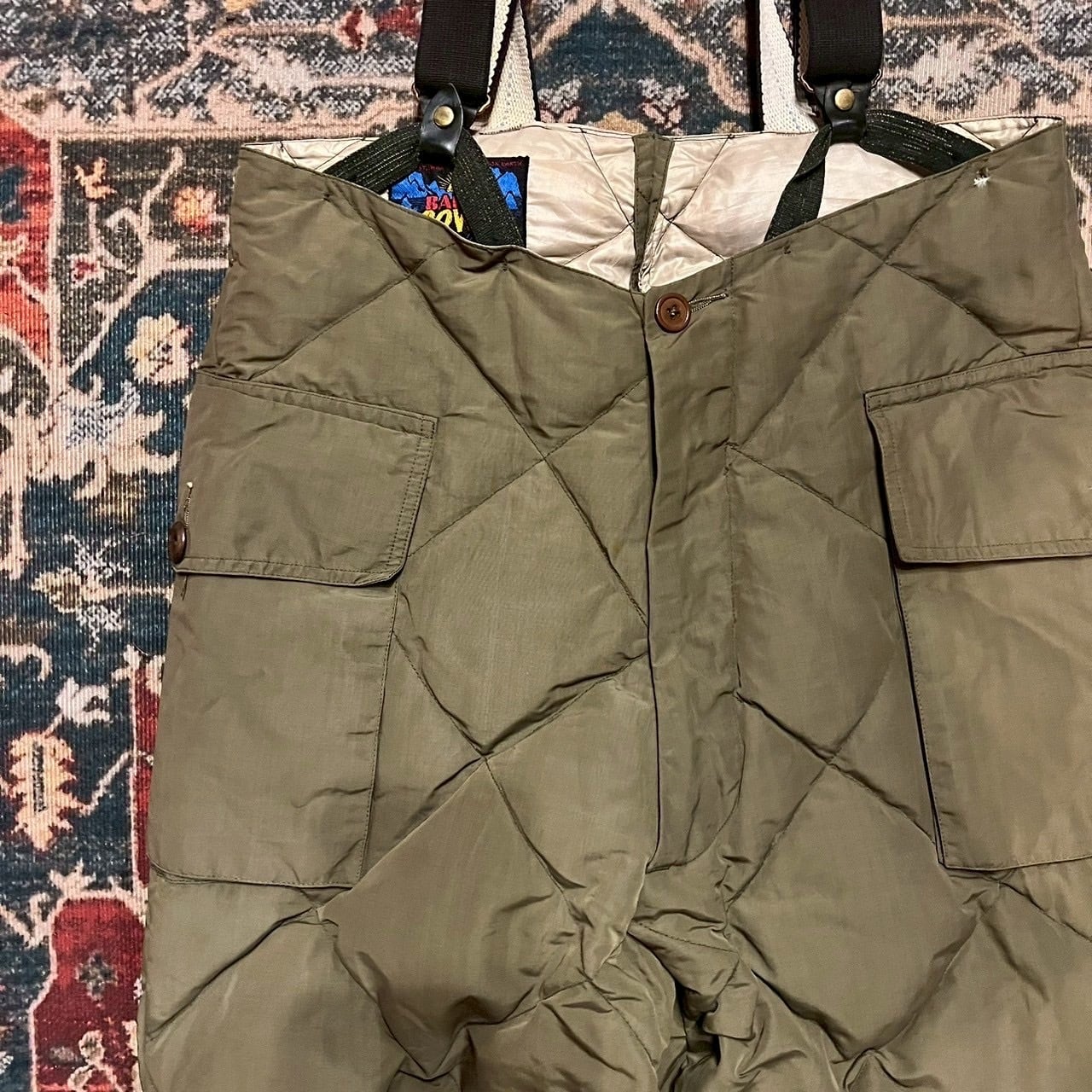 50s USA製 Eddie Bauer エディーバウアー 日の出タグ ダウンパンツ カラコラム W88cm ヴィンテージ サスペンダー カーゴ アウトドア 60s