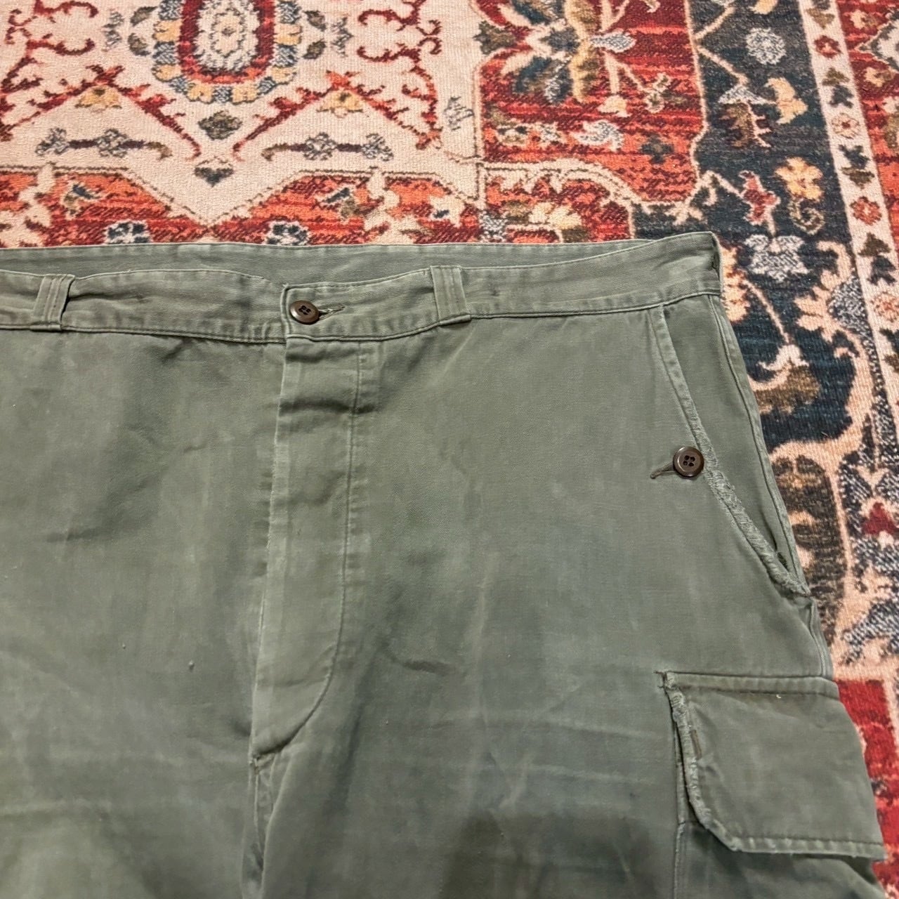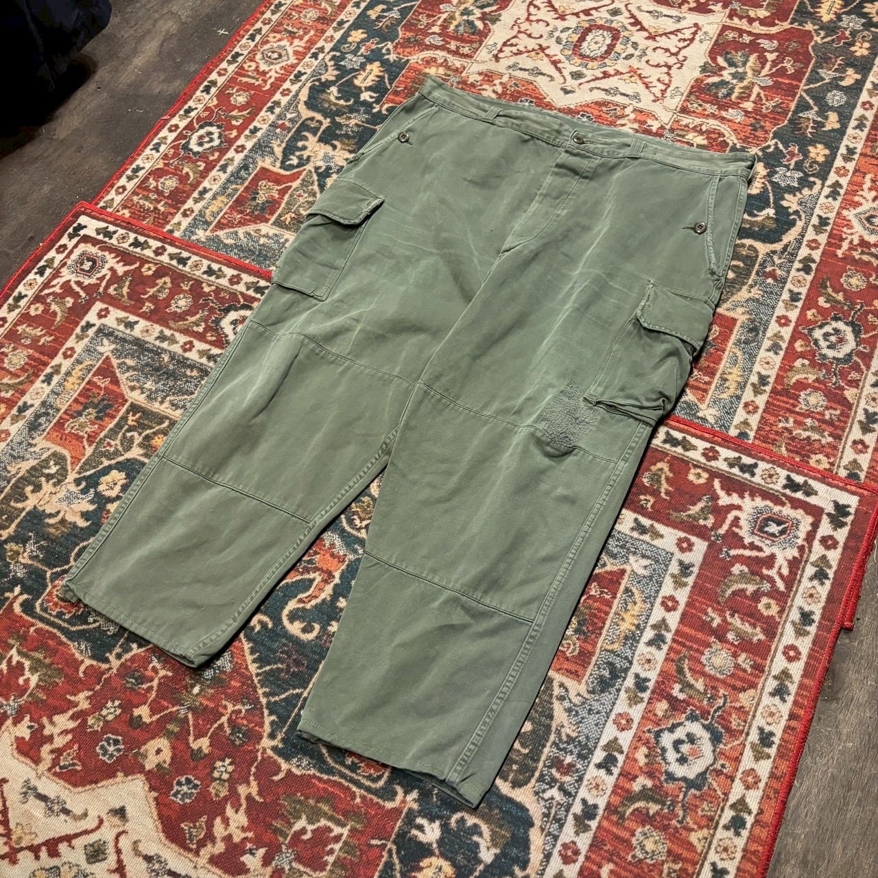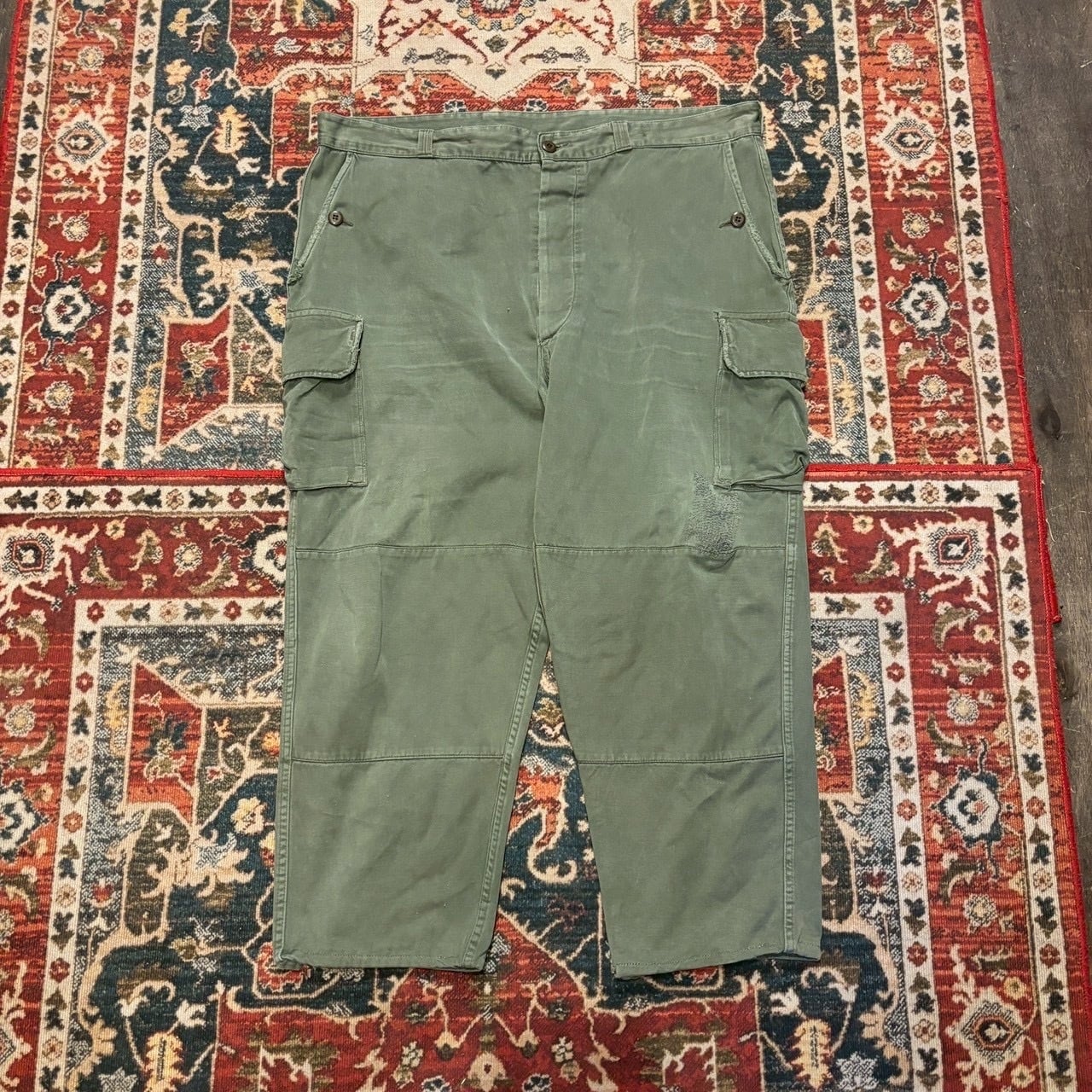 70s フランス軍 M-64 フィールドパンツ カーゴパンツ W108cm オリーブ ユーロ ミリタリー ヴィンテージ ワークパンツ M64 M47 80s