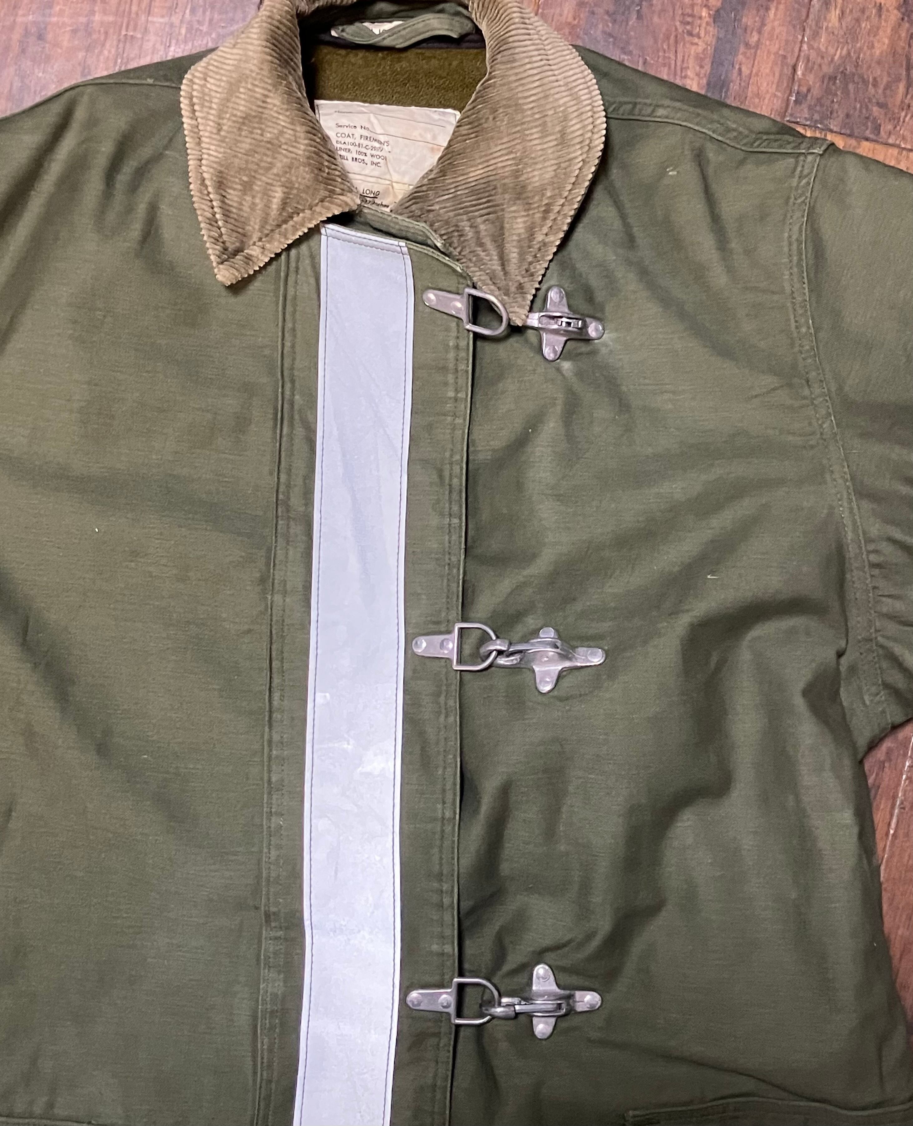 貴重 80s 米軍 実物 US Military Fireman Coat ミリタリー ファイヤーマン ライナー付き ジャケット ヴィンテージ 70s 消防士 グリーン M