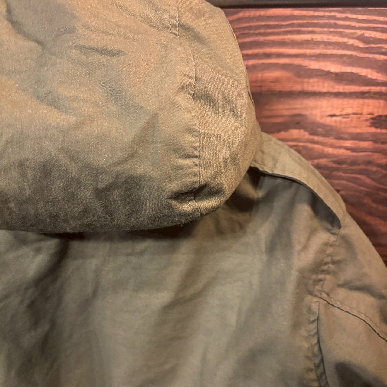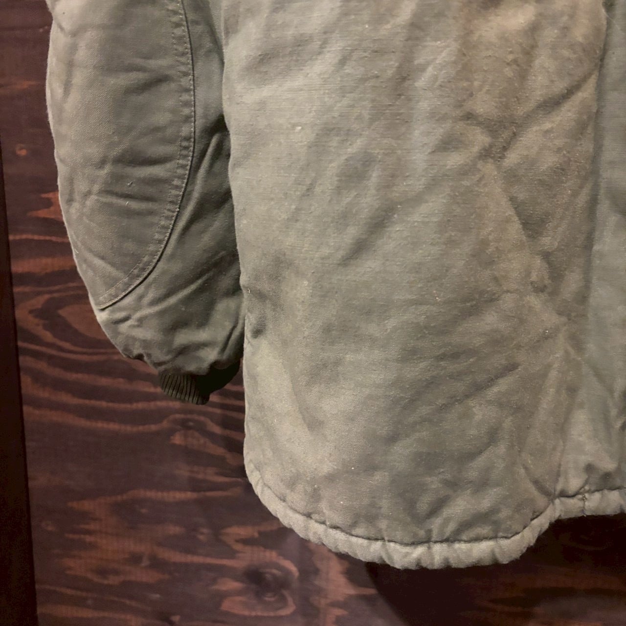 ややマットな質感のコットン×ポリエステルシェルに、中綿入りのライニングを組み合わせた構成。