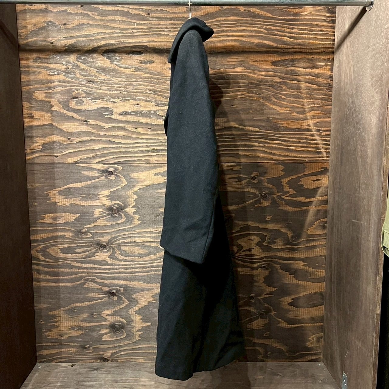 ピーコートよりも一段階ヘビーで無骨な存在感があり、ミリタリーコートらしい迫力を楽しめる一着。