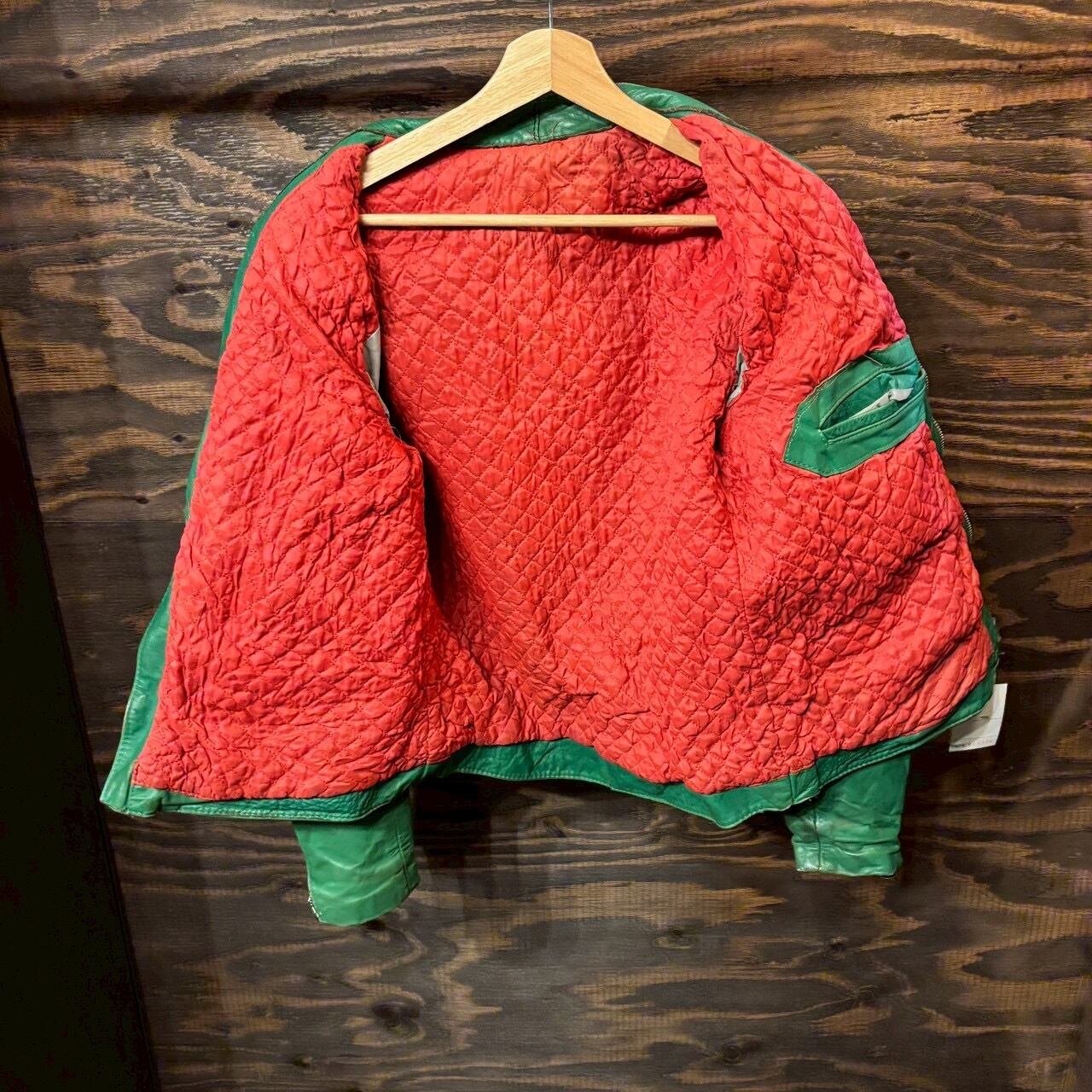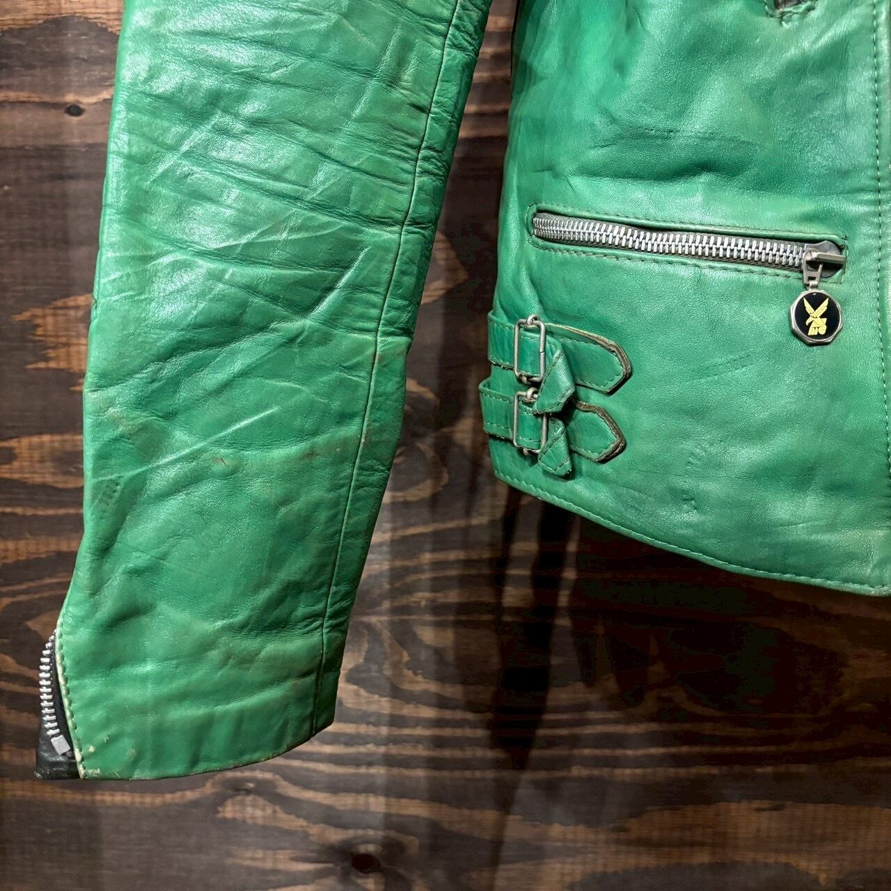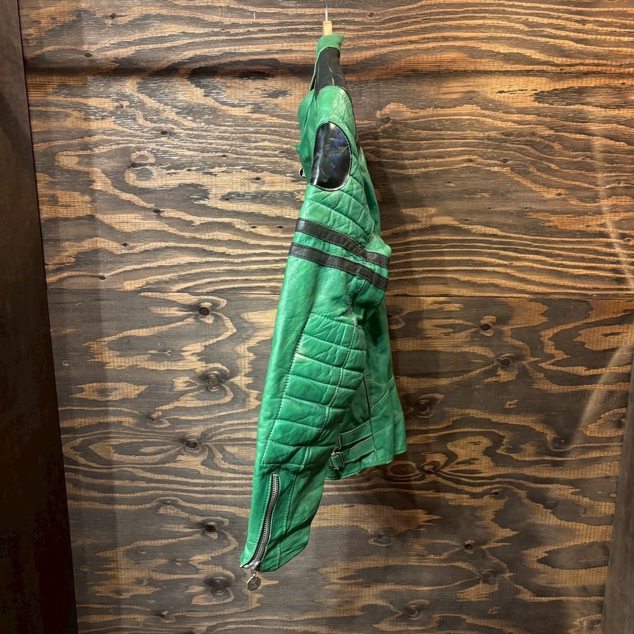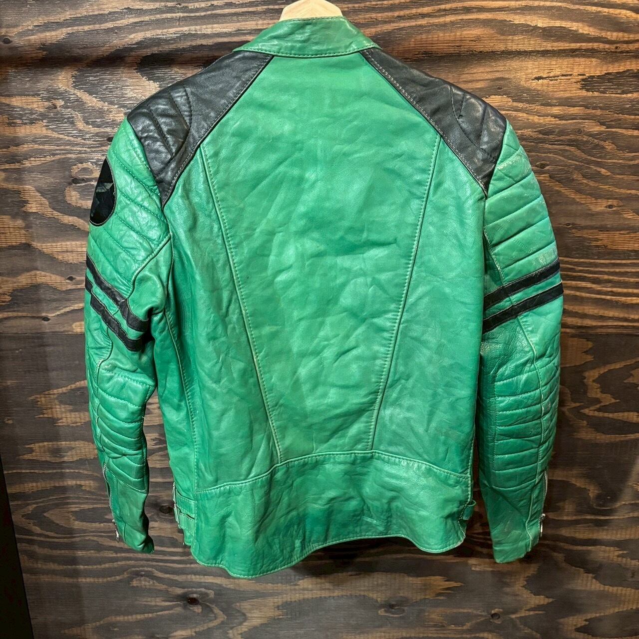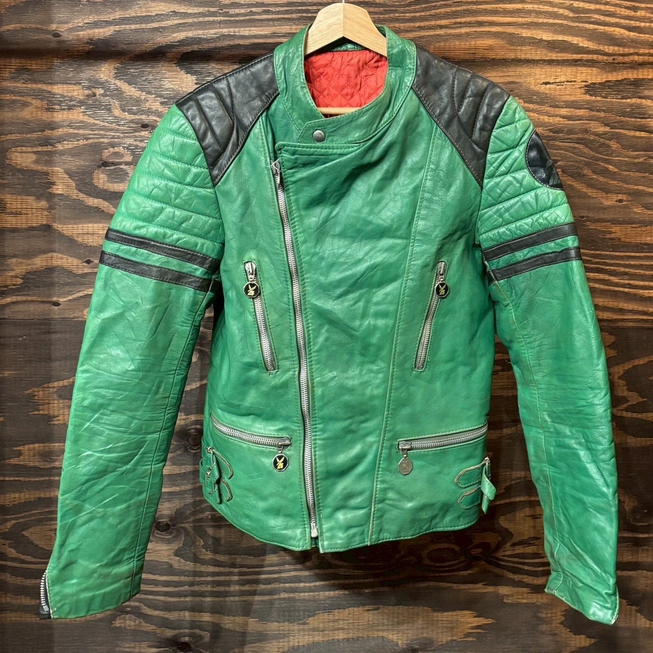 特価 70s French Vintage motorcycle Leather フランス ヴィンテージ モーターサイクルレザージャケット グリーン