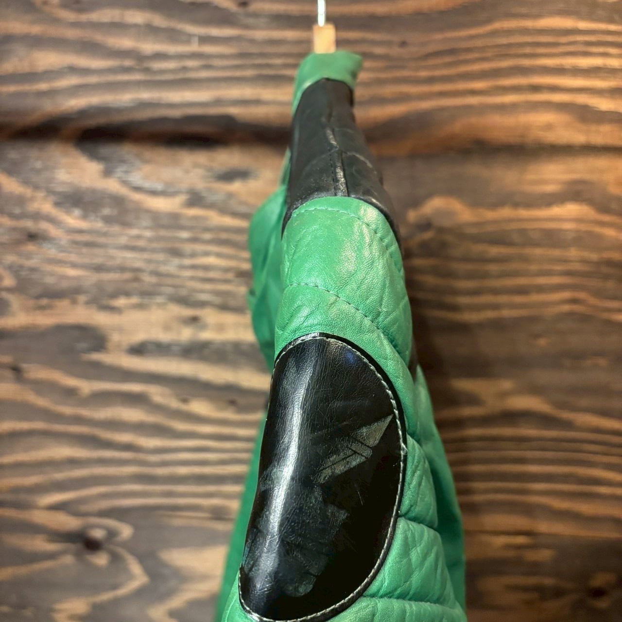 今ではまず見かけない発色の良いグリーンレザーに、ブラックの切り替え。