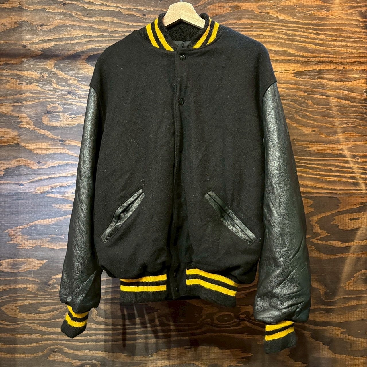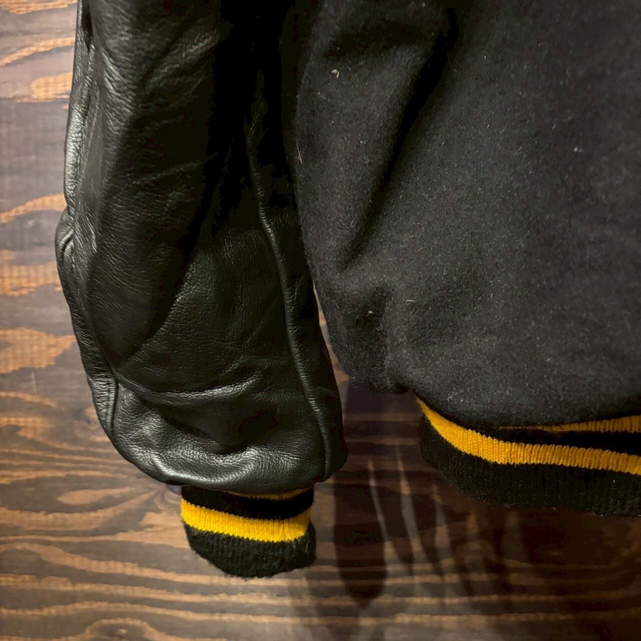 特価 80s USA Vintage Leather Wool stadium Jacket スタジャン ヴィンテージ スタジアムジャケット ブラック