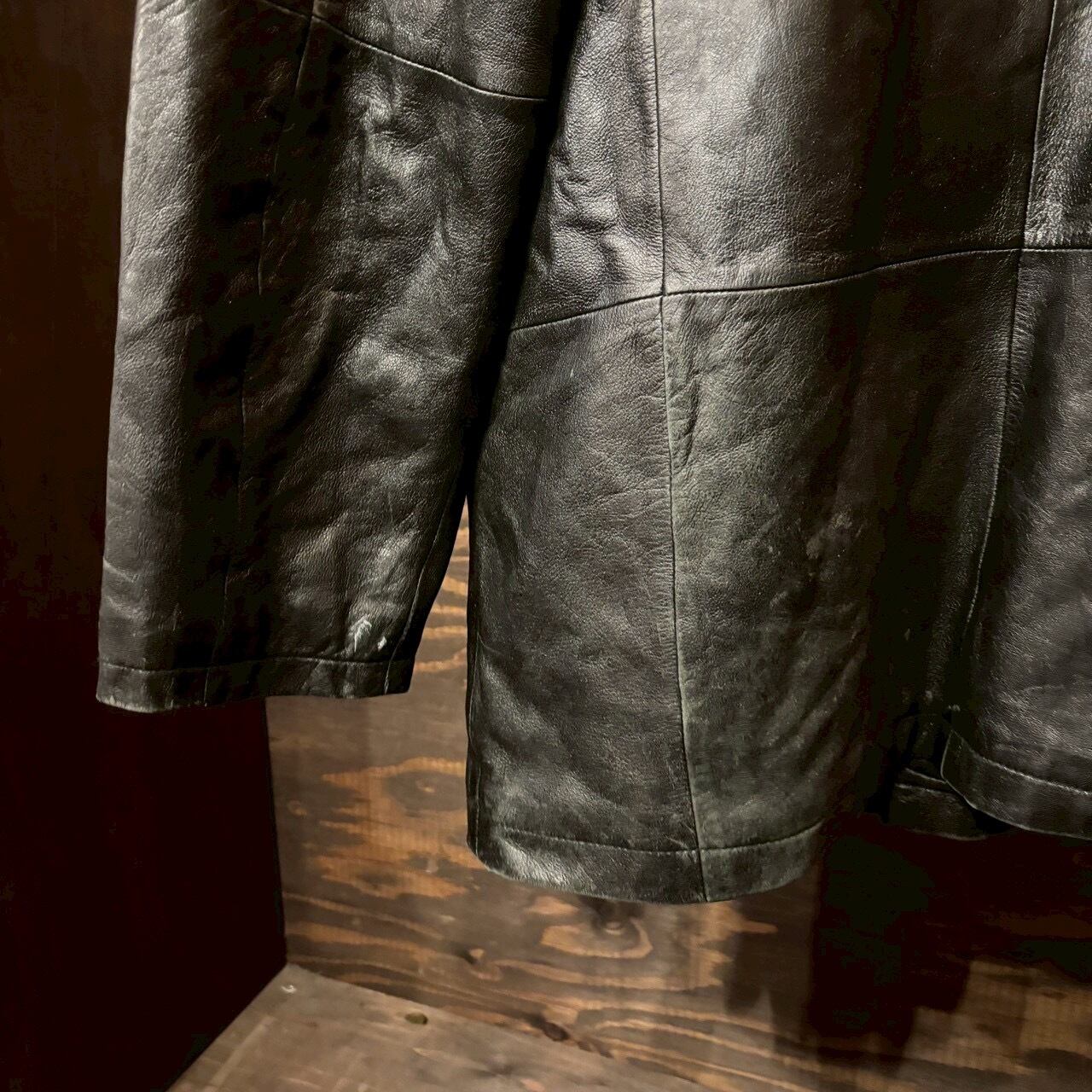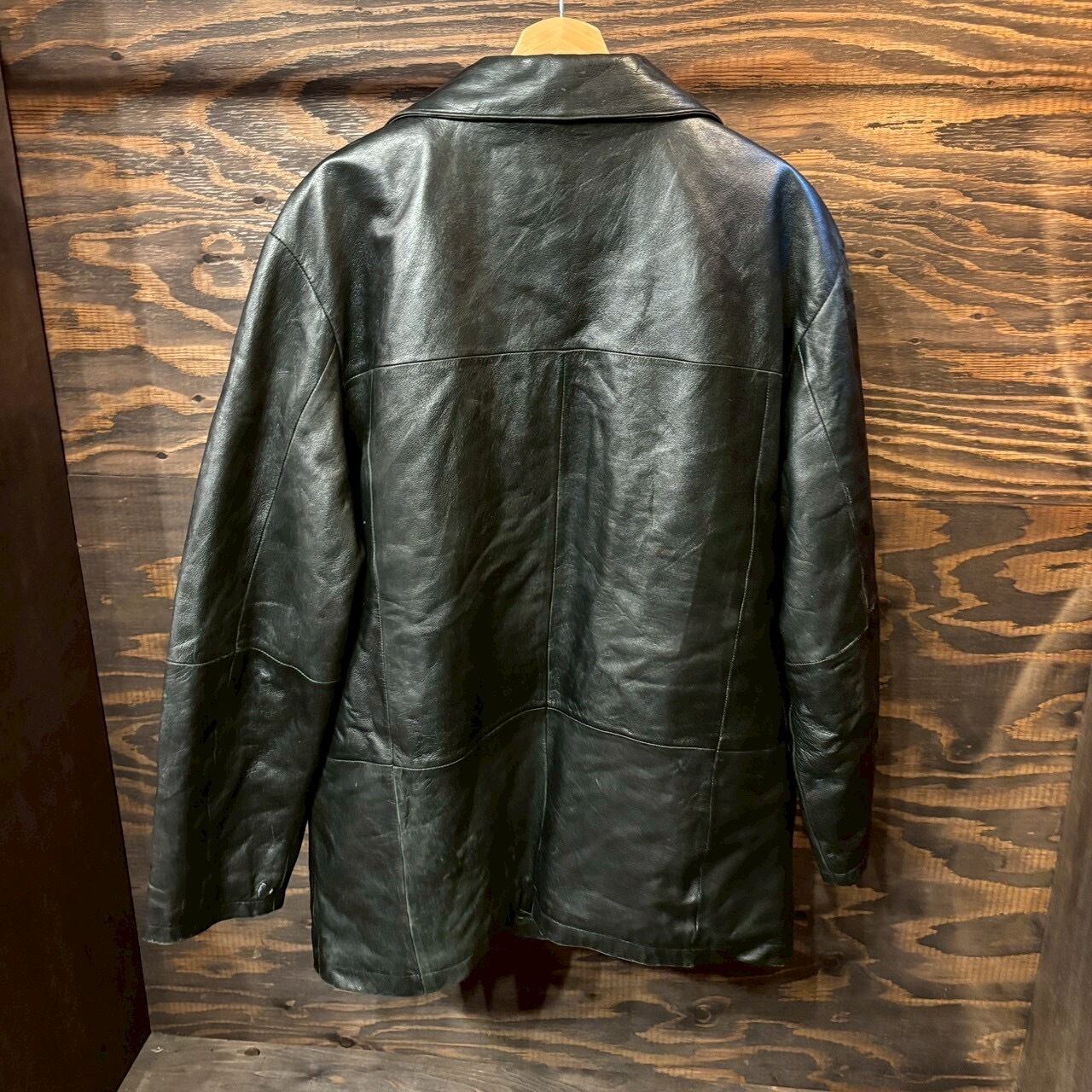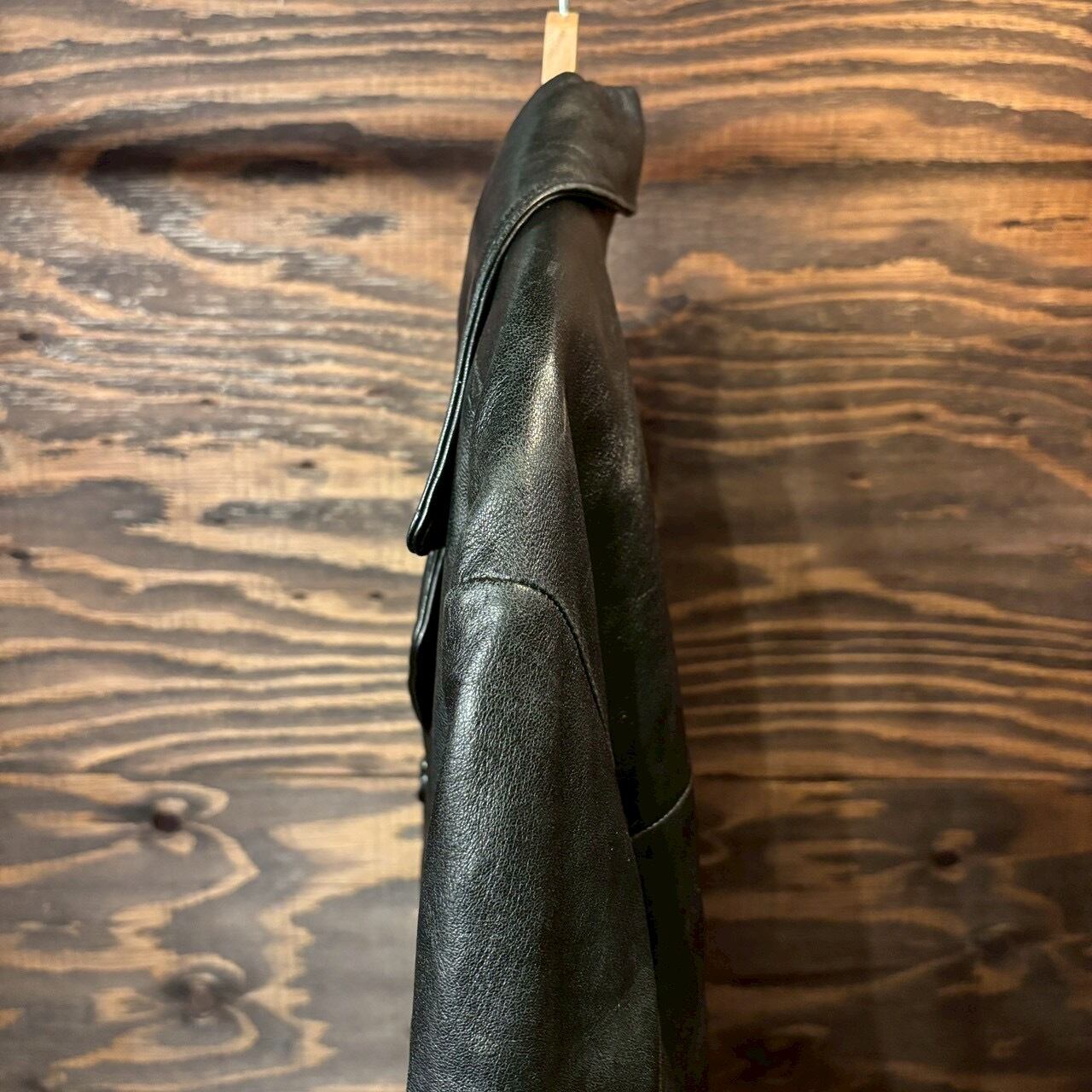 ヴィンテージの荒さや背景を楽しむ一着ではありませんが、その分ラフに着られて、日常使いに向いたレザーコートです。