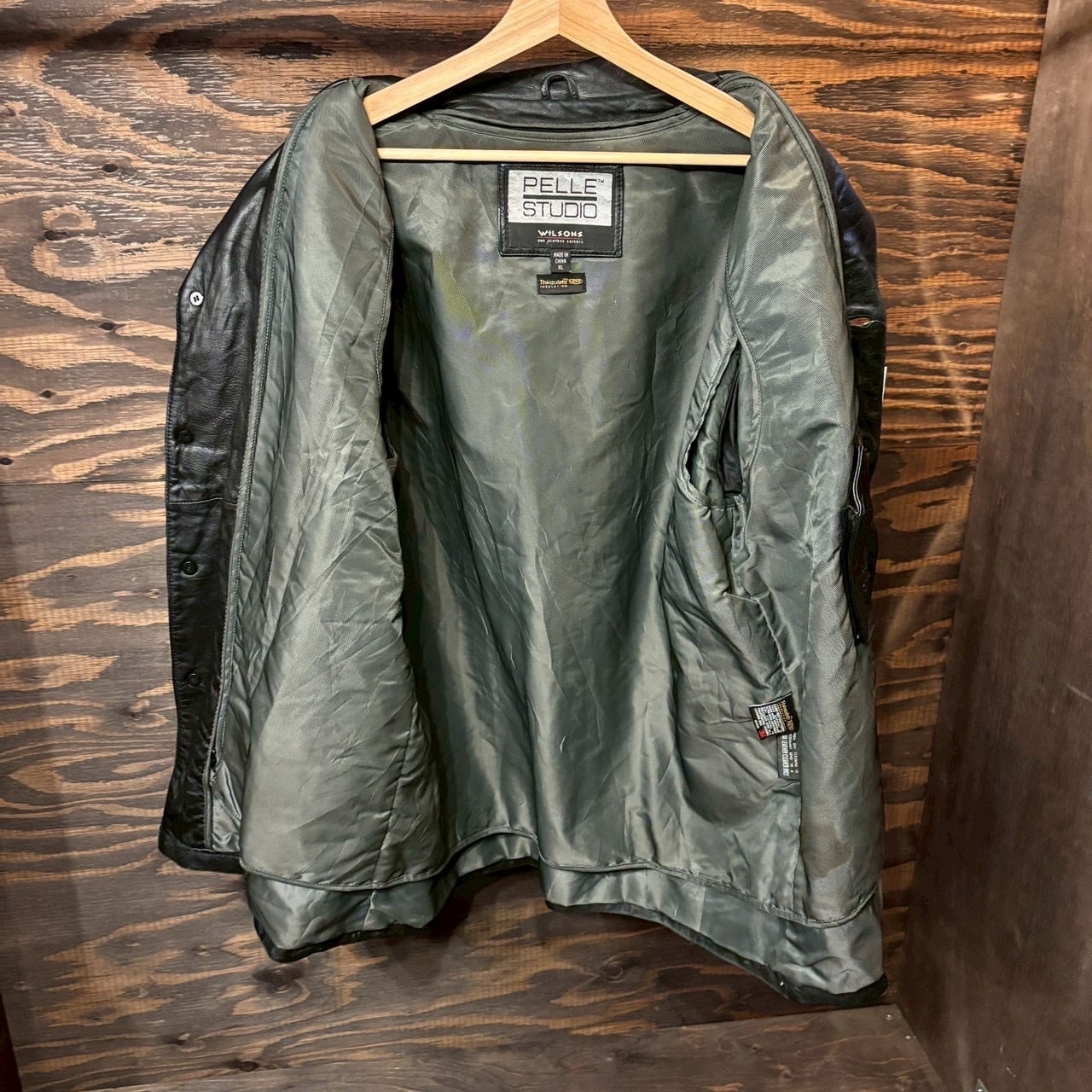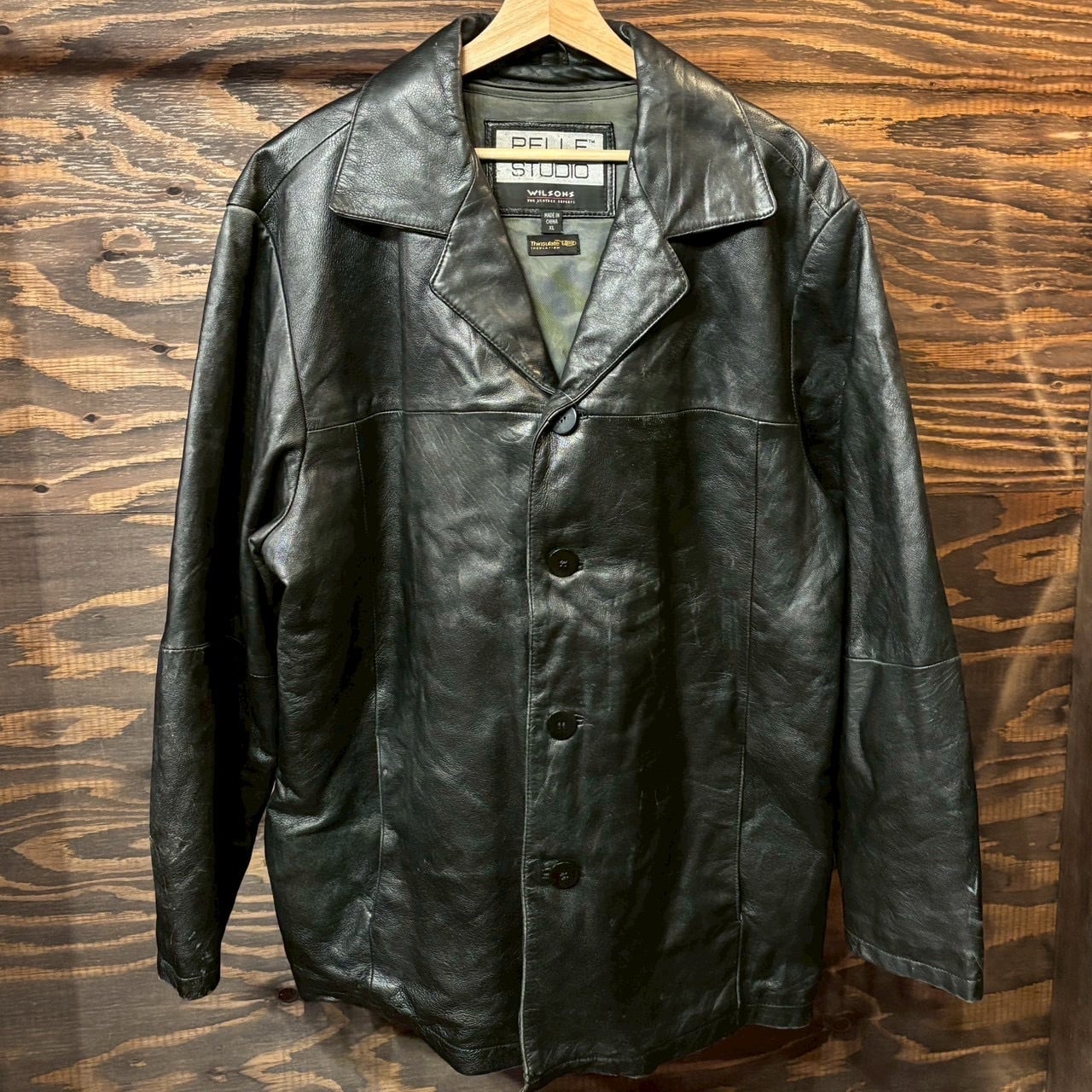 00s USA WILSONS PELLE STUDIO Leather Coat レザー カーコート ブラック Thinsulateライニング