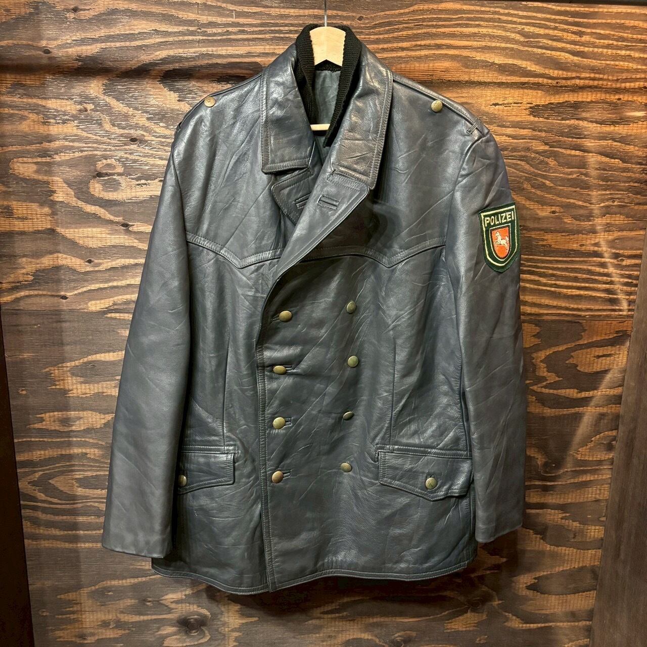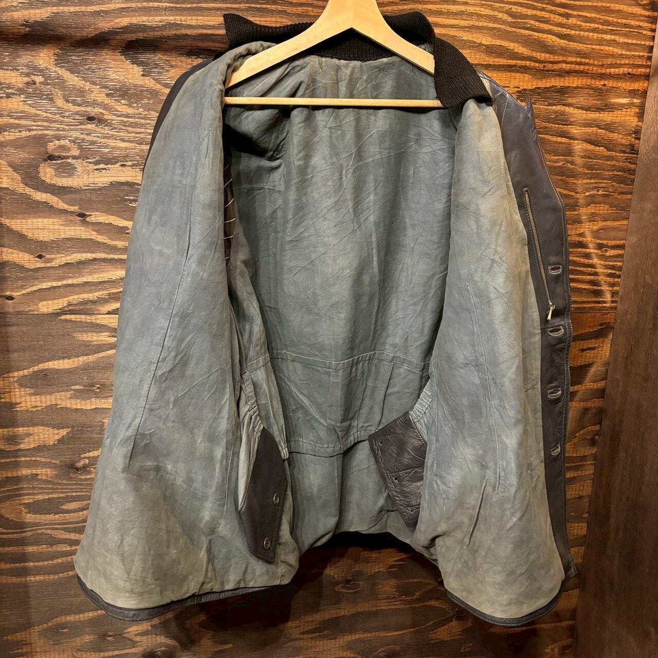 特価 70s Germany police ドイツ ポリスマン 本革 レザー コート ヴィンテージ ドイツ軍 カーコート ライダース 60s ユーロ ミリタリー XL