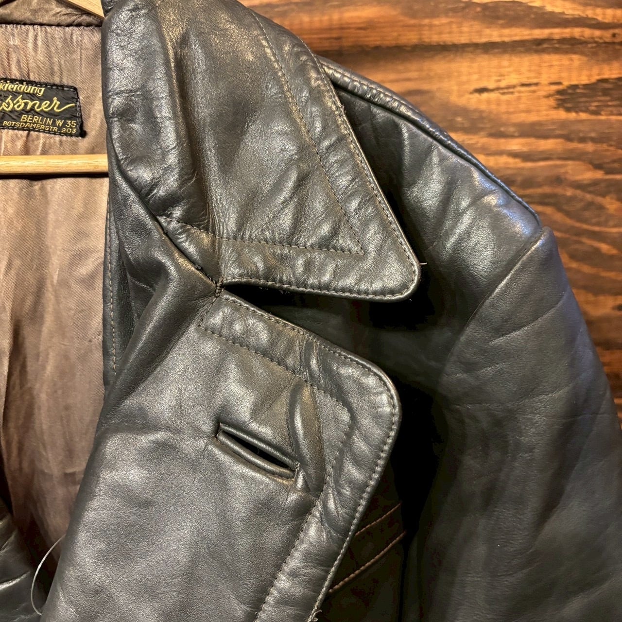 40s GERMANY Vintage WWⅡ レザー 将校 コート ライダース ヴィンテージ モーターサイクル ドイツ軍 20s30s 大戦 カーコート SS ブラック