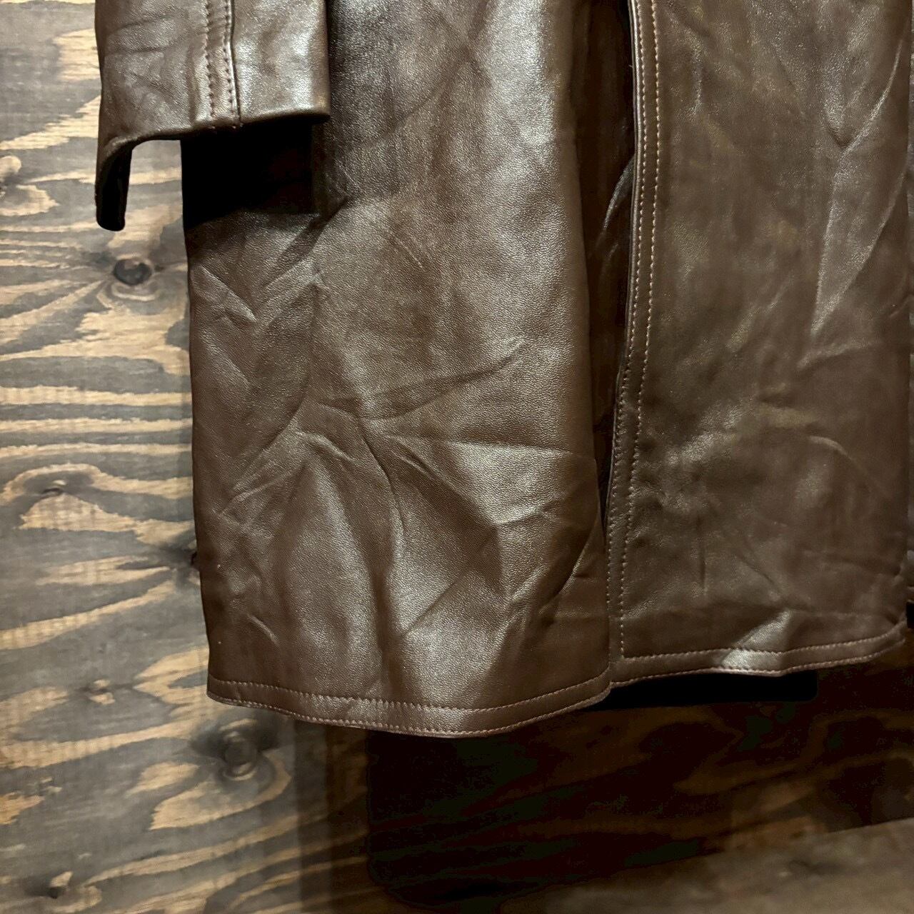 70s ユーロ レザージャケット カーコート ヴィンテージ ユーロ L ハーフコート 本革 ブラウン ダブルブレスト レザーコート 80s