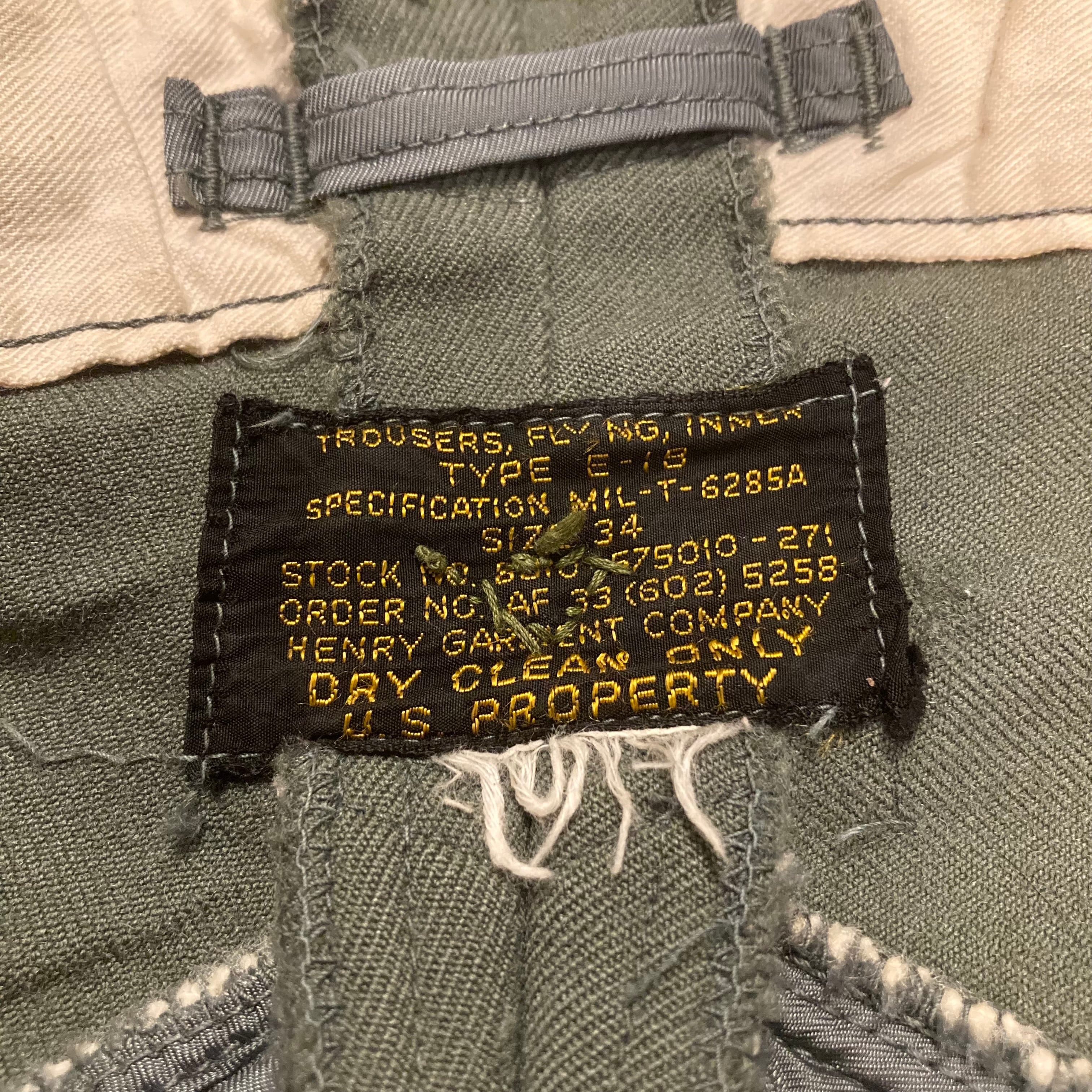 50s USAF E-1B フライトパンツ 米軍 エアフォース ミリタリー ヴィンテージ ベルト付き 黒タグ カーキ 実物 サイズ34 W86cm ウール