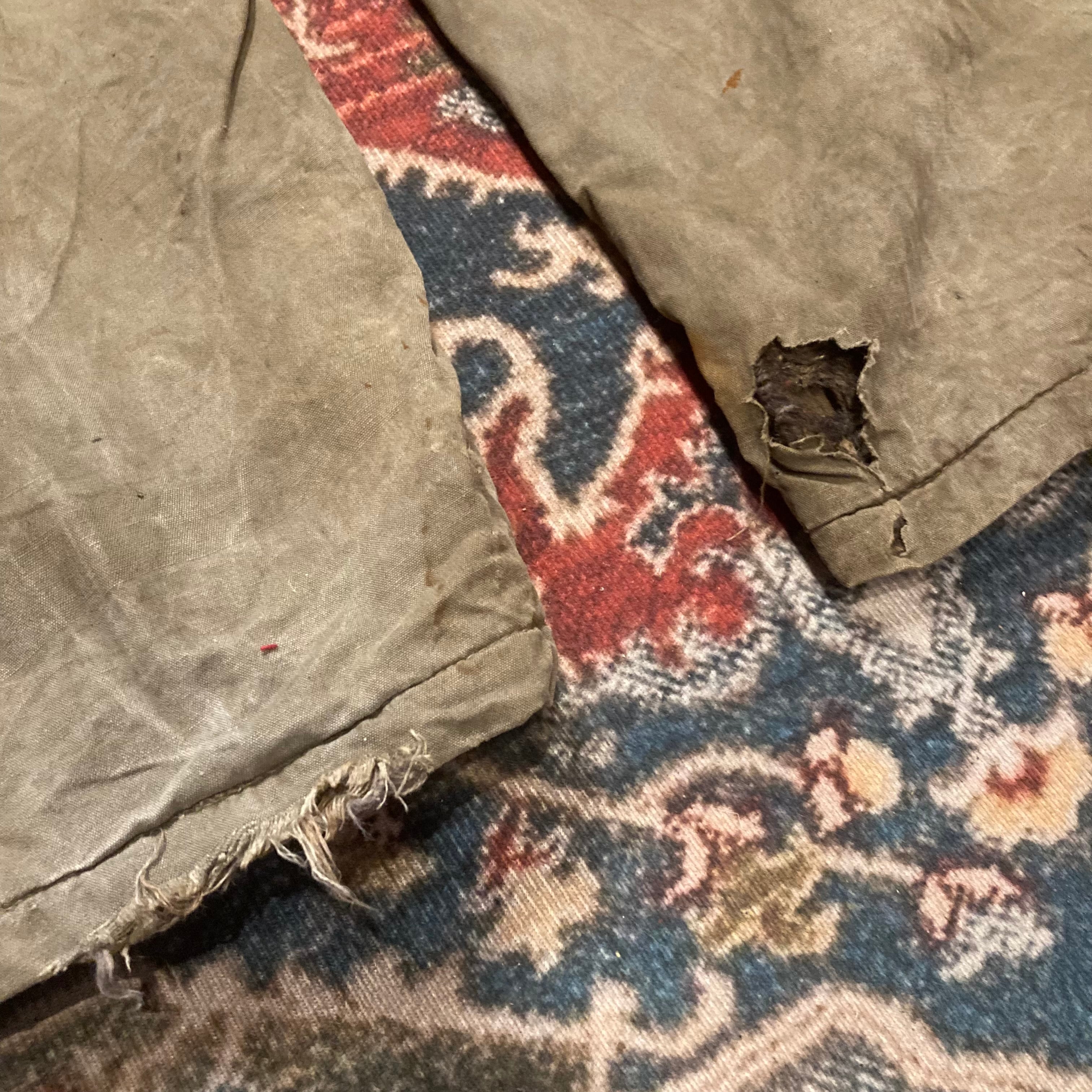 コンディション : 全体的に色落ちがあり、裾にダメージがある状態です。メタルボタンが錆び付いています。着用に問題あるダメージはございません。