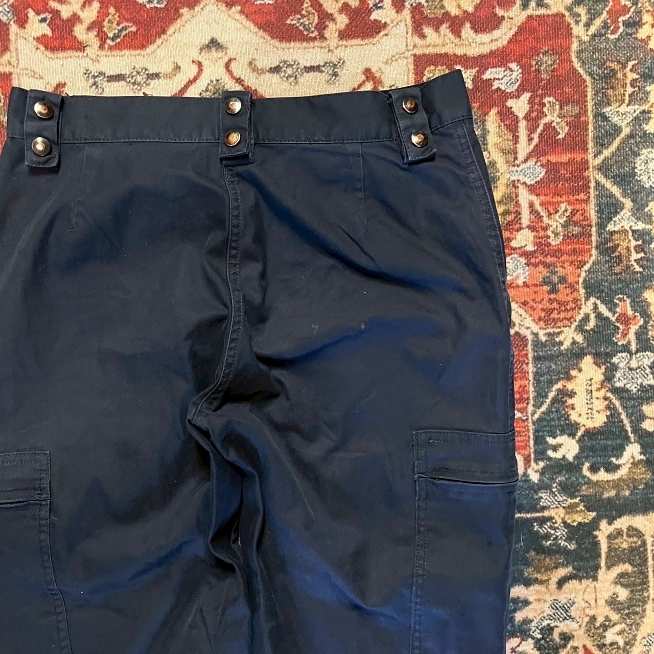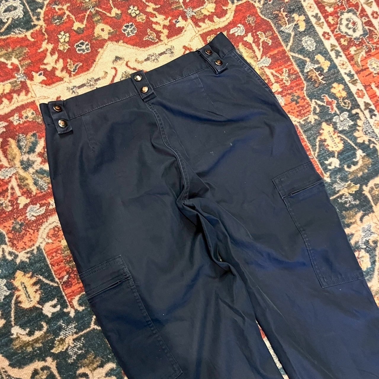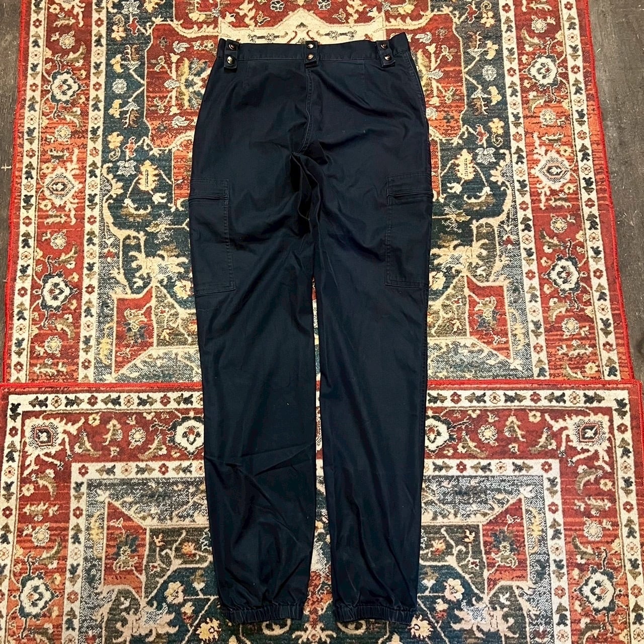 00s French フランス製 ワークパンツ ネイビーカラー 42L表記 W82cm ユーロ ヴィンテージ カーゴパンツ ドローコード ミリタリー 90s