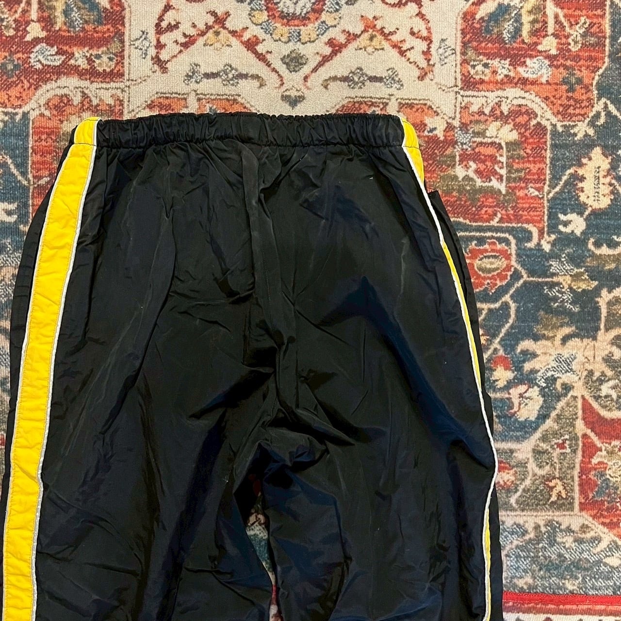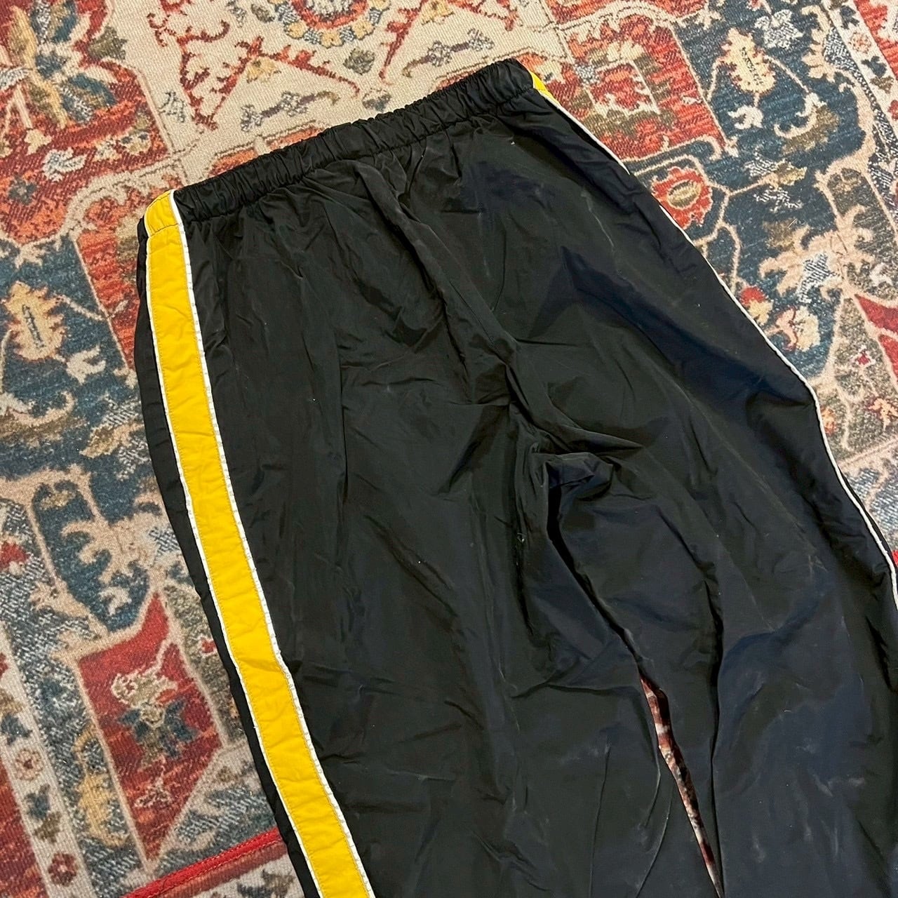 ブラックカラーのナイロントレーニングパンツ。