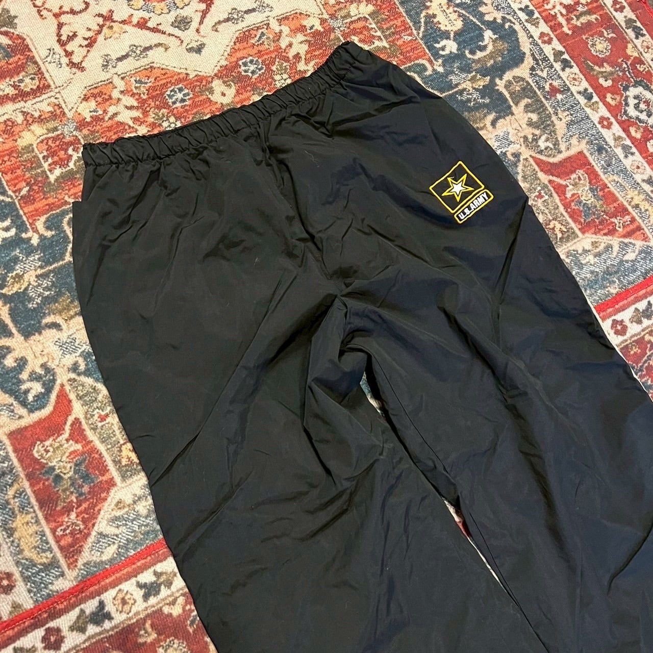 00s US ARMY 米軍実物 トレーニング パンツ サプレックス ナイロン IPFU裾ジップ 米軍実物 ブラックトラック ミリタリー パンツ L-R