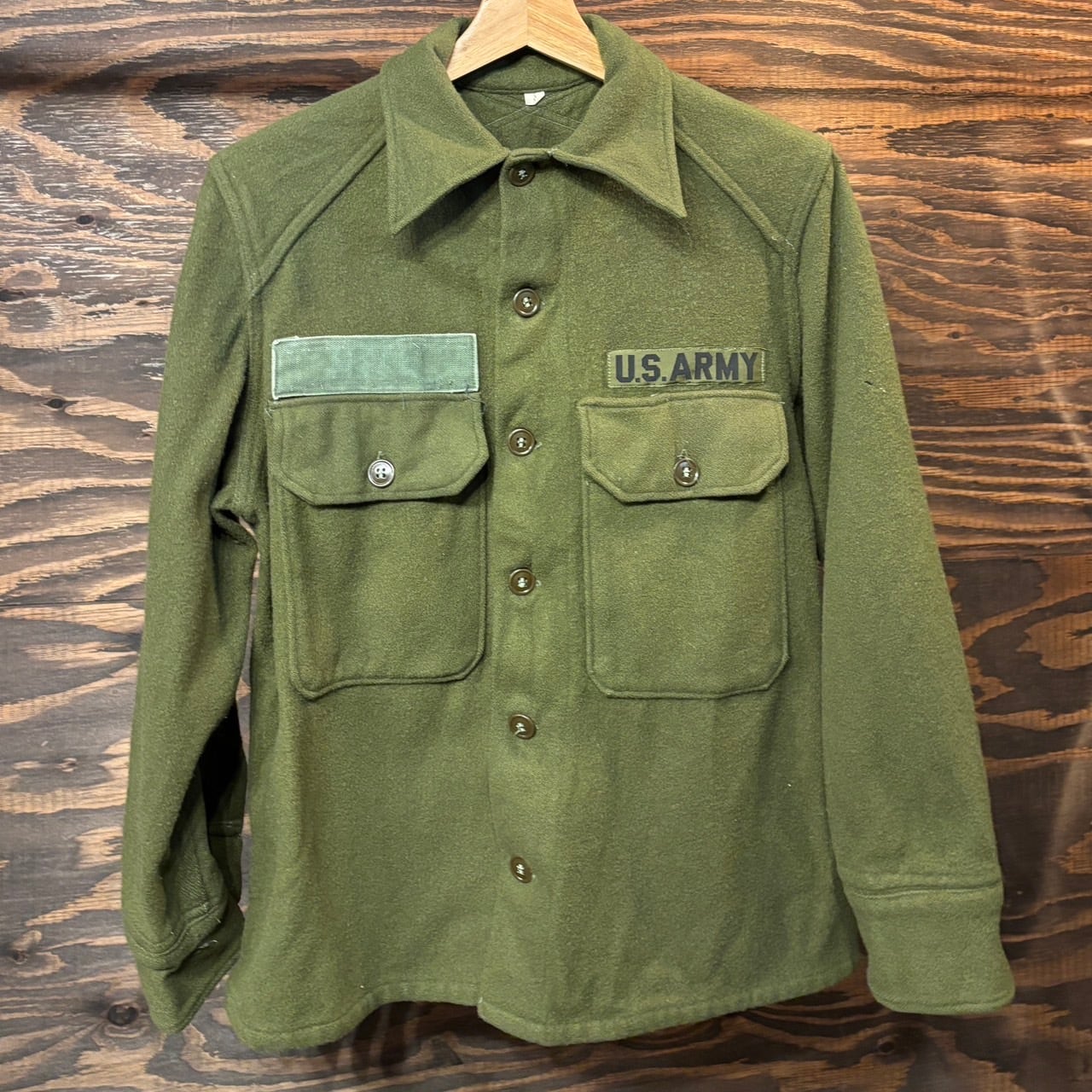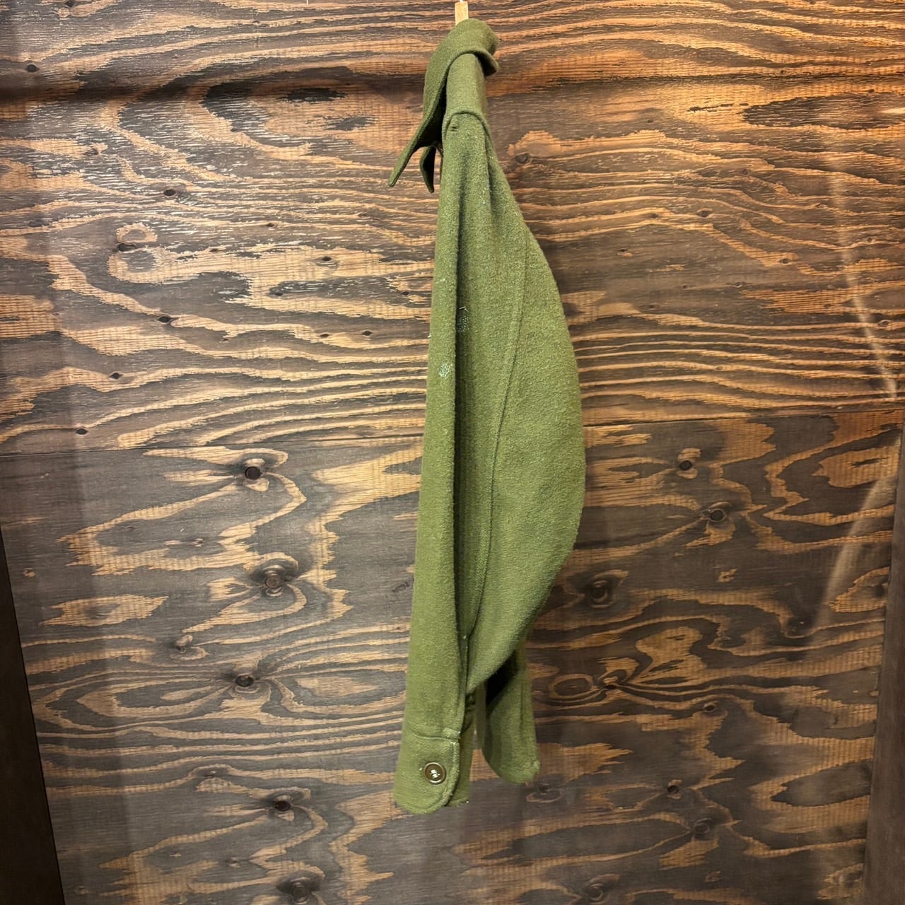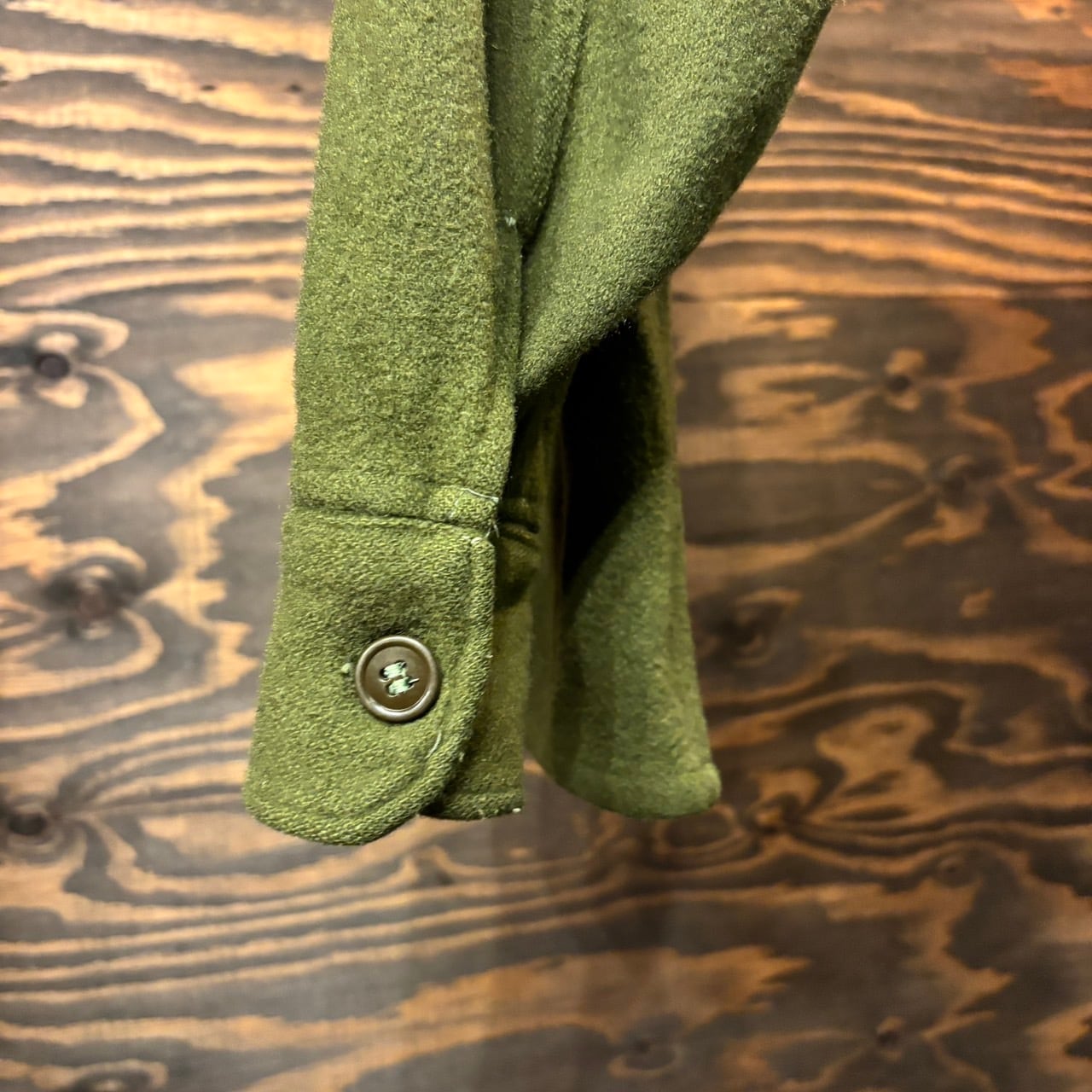 50s US ARMY OG-108 米軍 ウールシャツ 前期型 ヴィンテージ ミリタリー クロスヨーク プリーツ 朝鮮戦争 ブランケットシャツ 防寒 S
