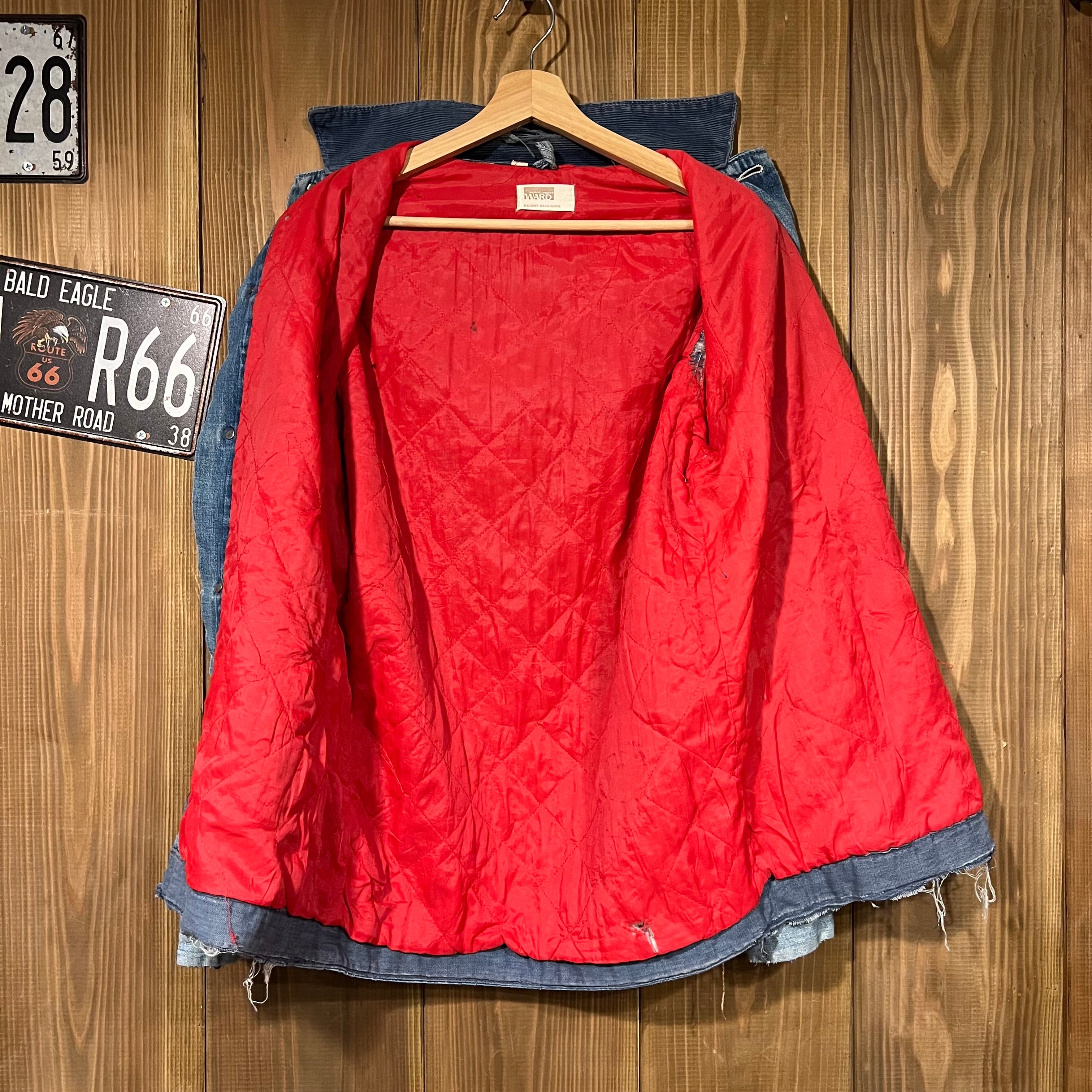 赤のキルティングライニングが施されており、コーデュロイ生地の襟、当時のワークウェアに見られるクラシックなディテール。