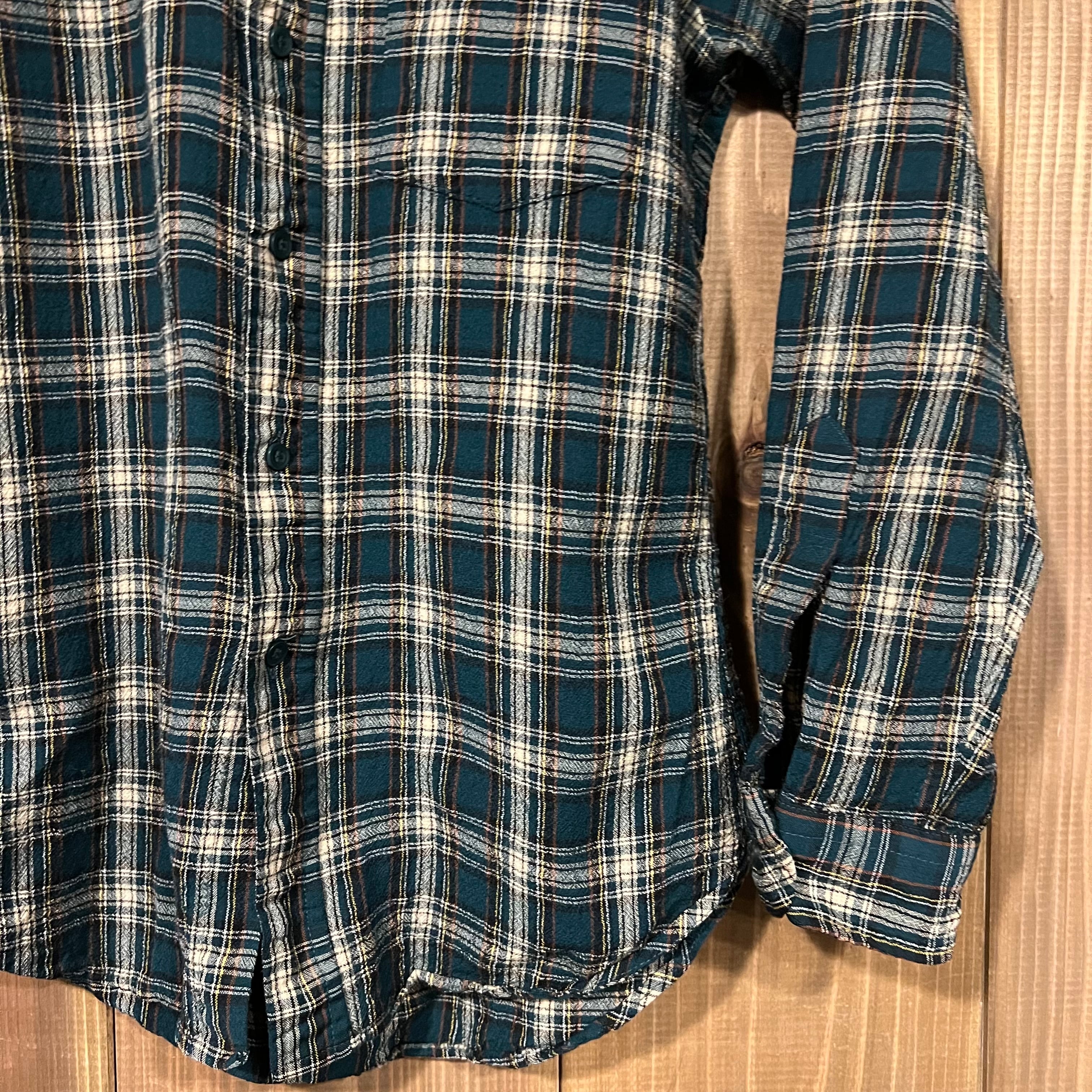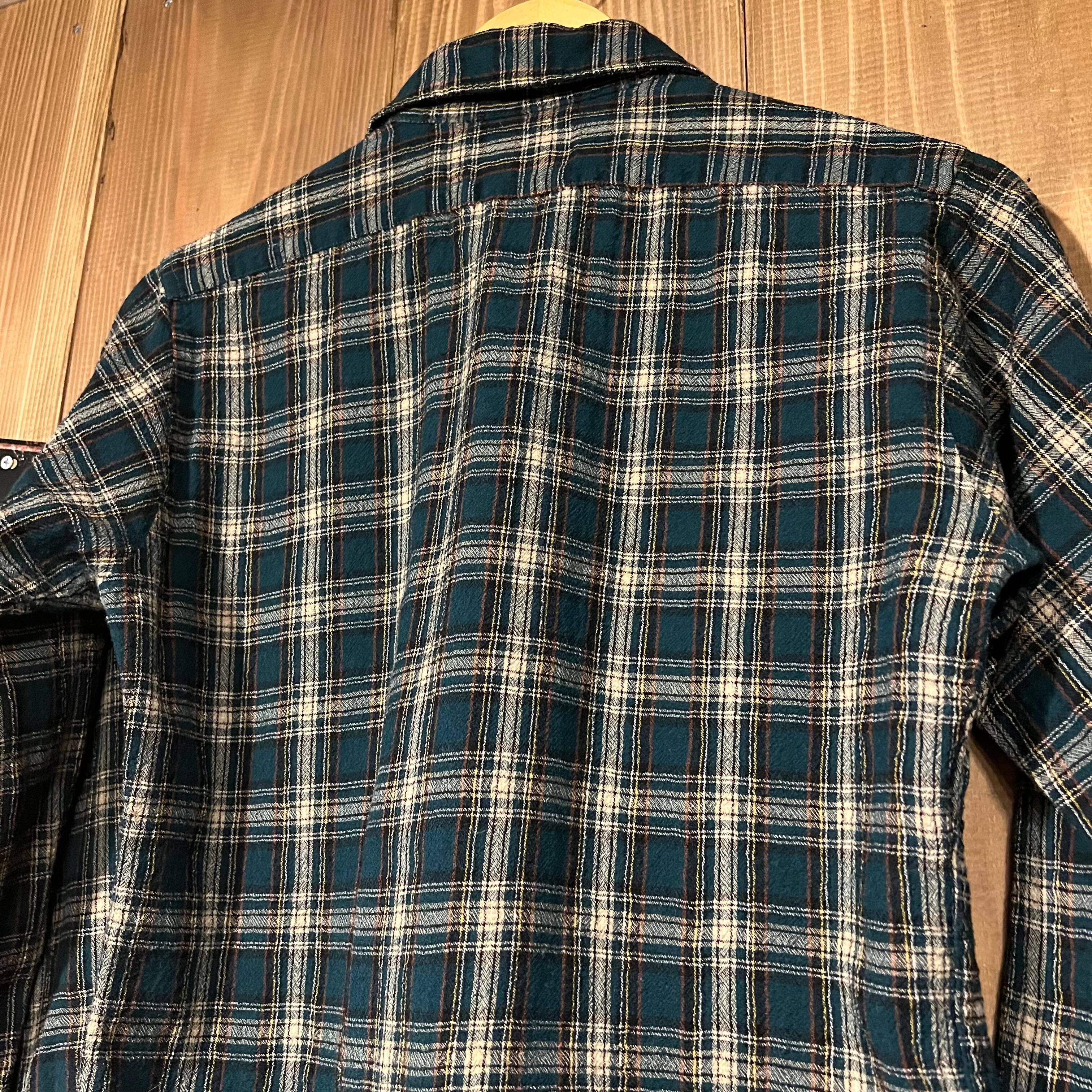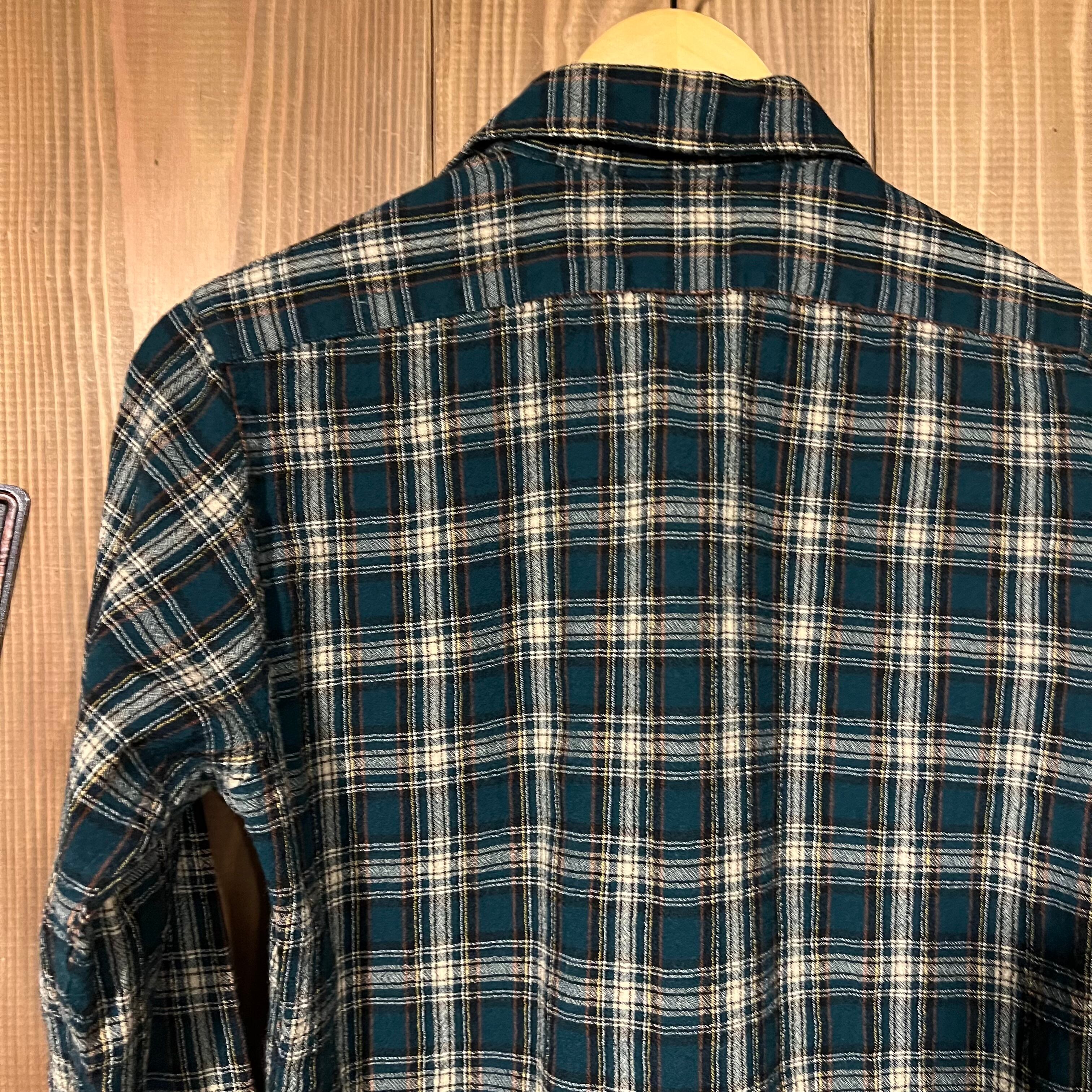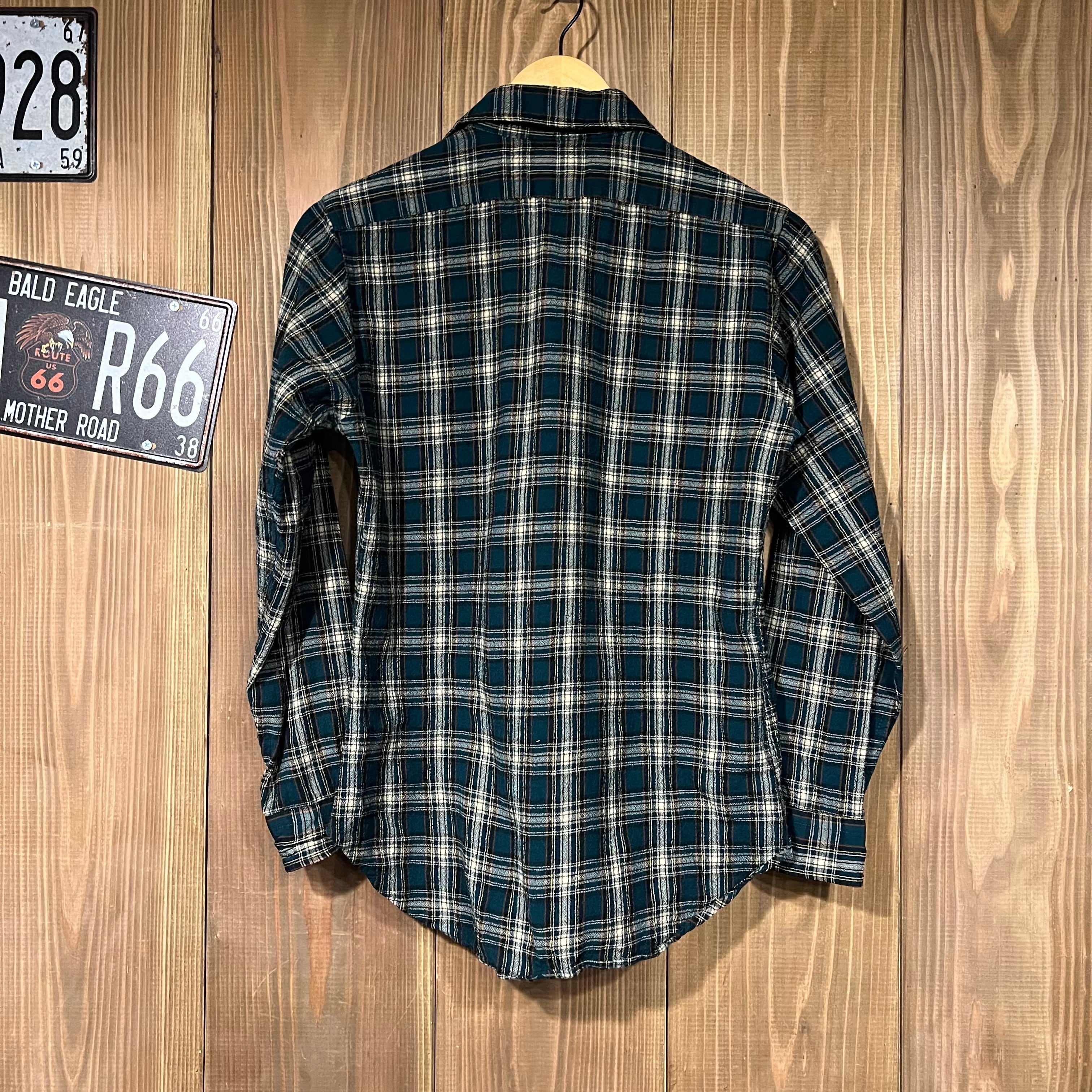 70s USA製 PENDLETON ペンドルトン バージンウール チェックシャツ M表記 ヴィンテージ ネルシャツ ウールシャツ 総柄 深緑 長袖 60s