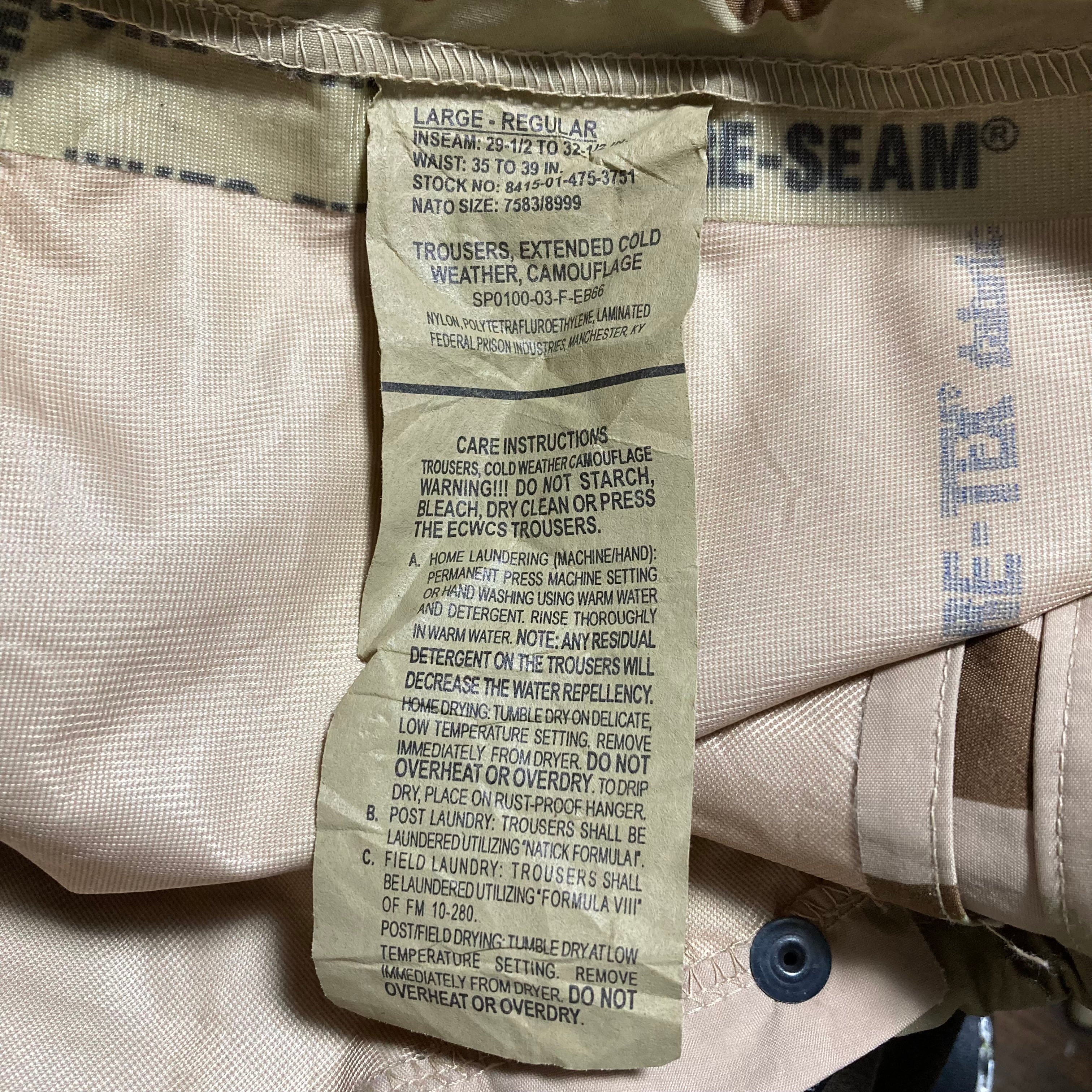 00s US Army 米軍 ECWCS 3C デザートカモ ナイロン オーバーパンツ W102cm 米軍 GORE-TEX ゴアテックス カーゴ ジップフライ L-R表記 90s