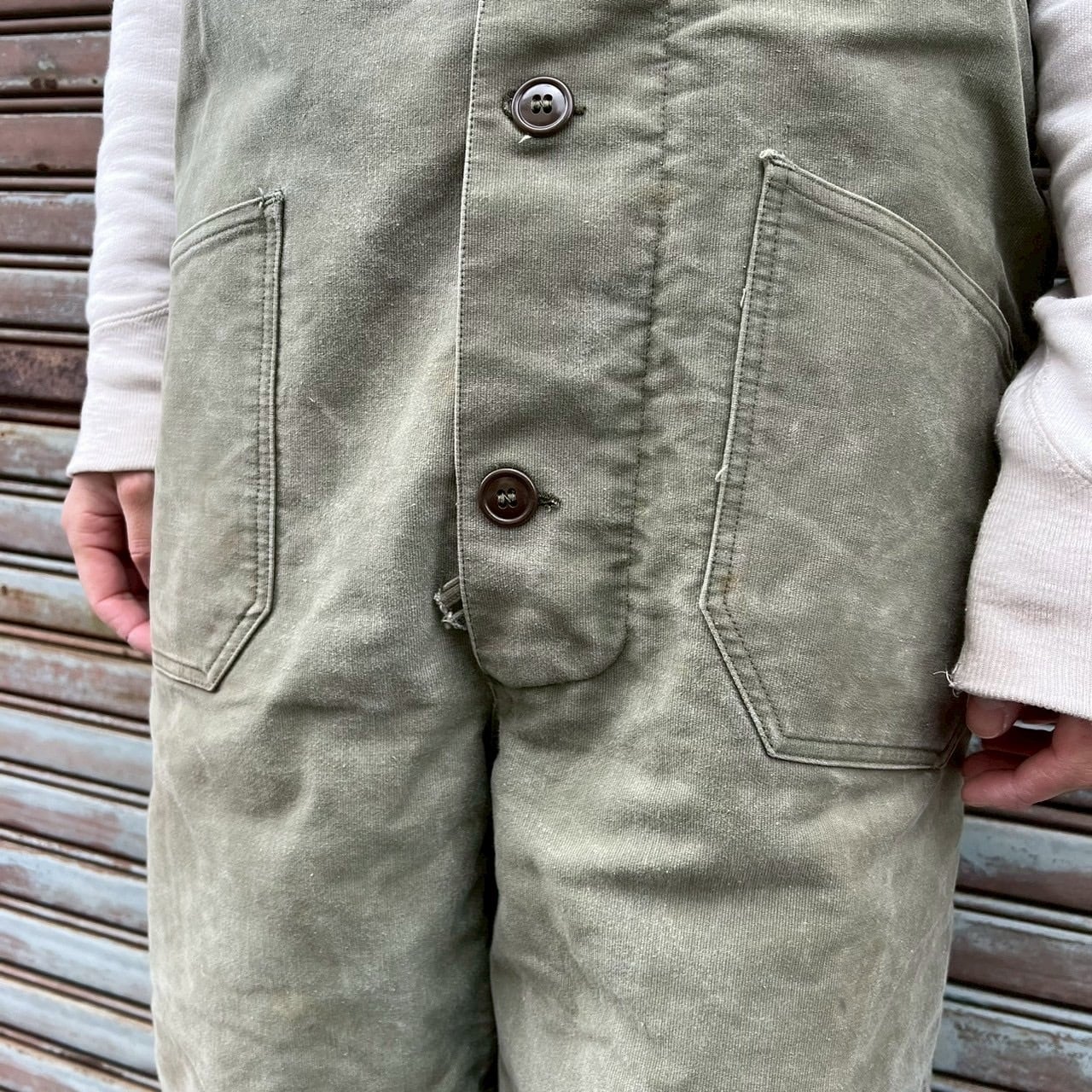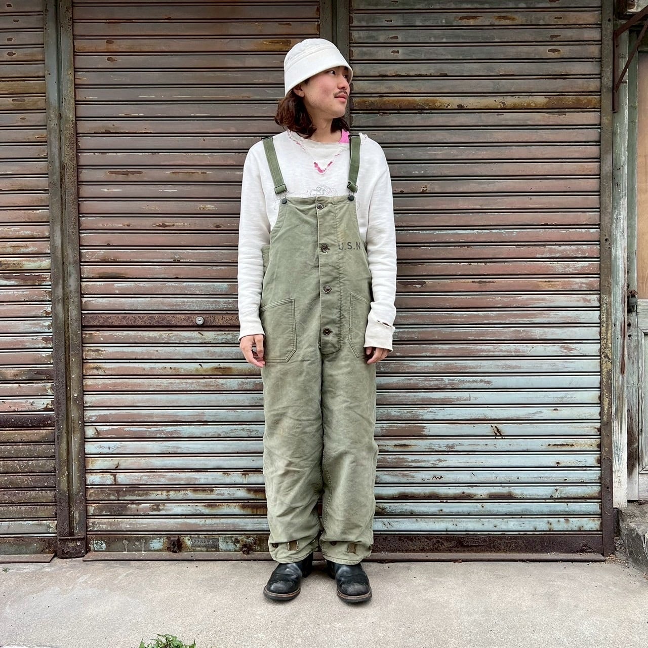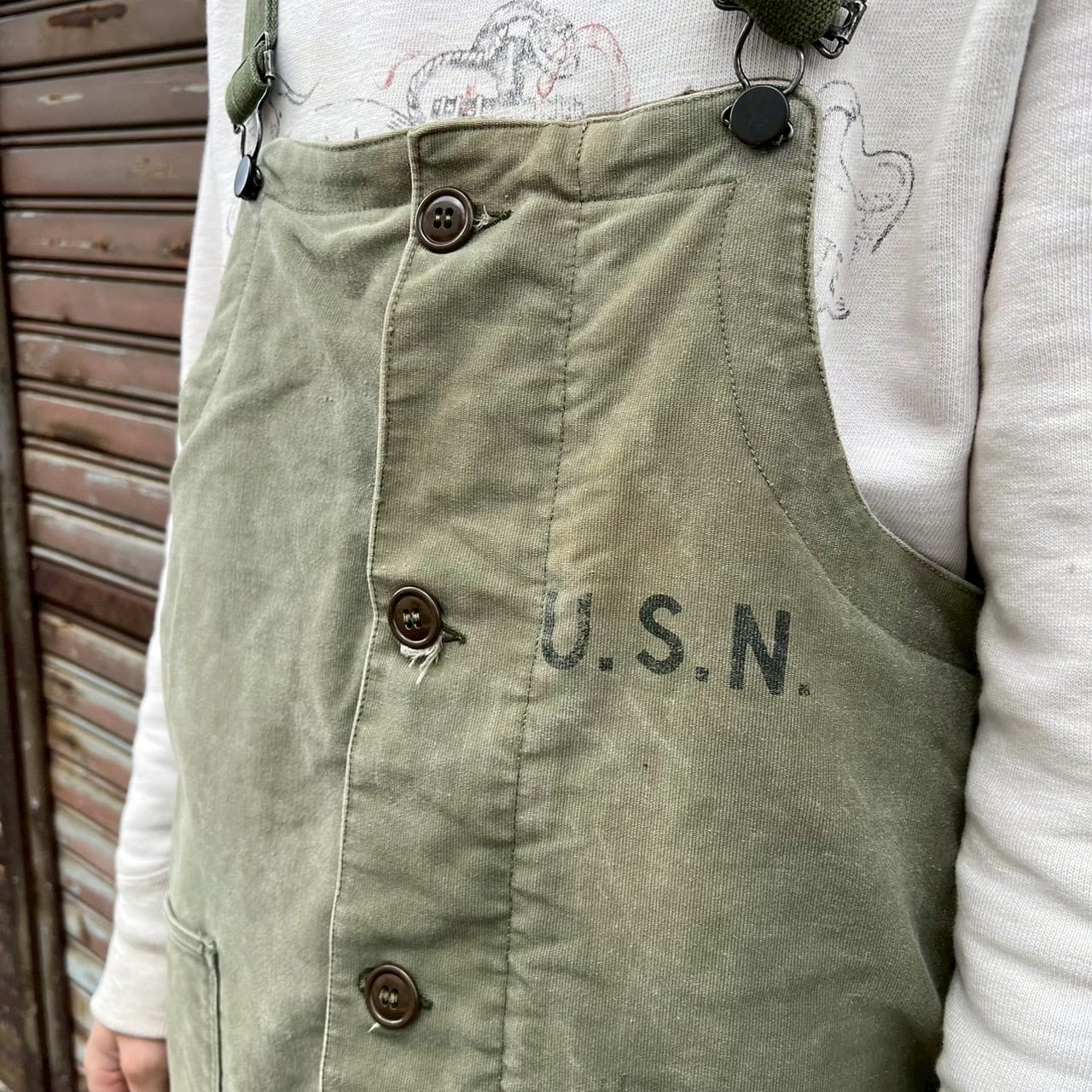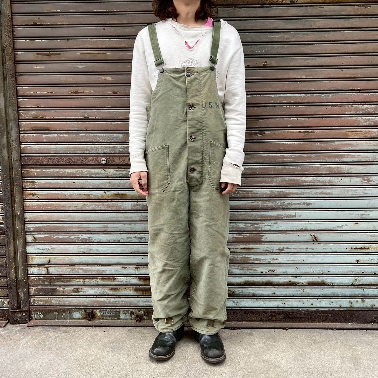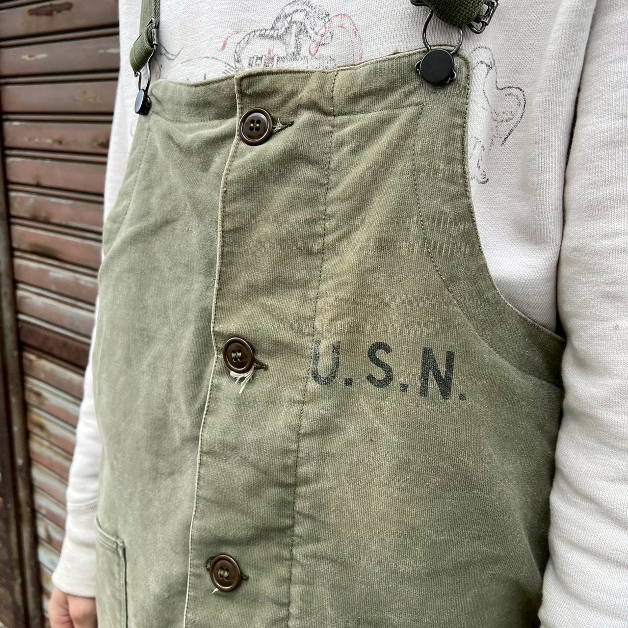 40s 米軍実物 ヴィンテージ US.NAVY N-1 デッキパンツ オーバーオール 米海軍 アメリカ軍 ミリタリー カーキ WWⅡ 大戦 USN M表記 50s