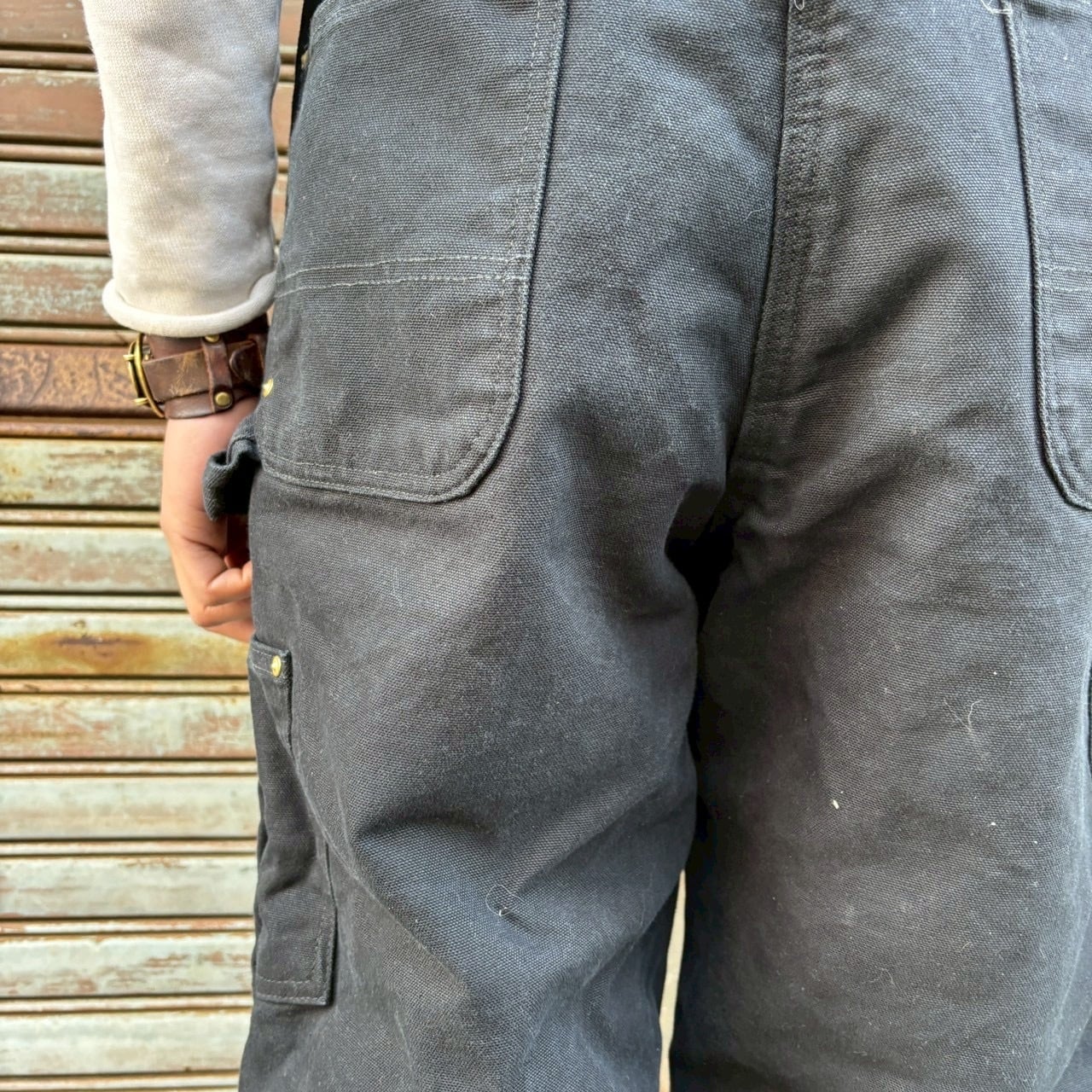 ダック地でダブルニー、ペインターのブラックのオーバーオールです。