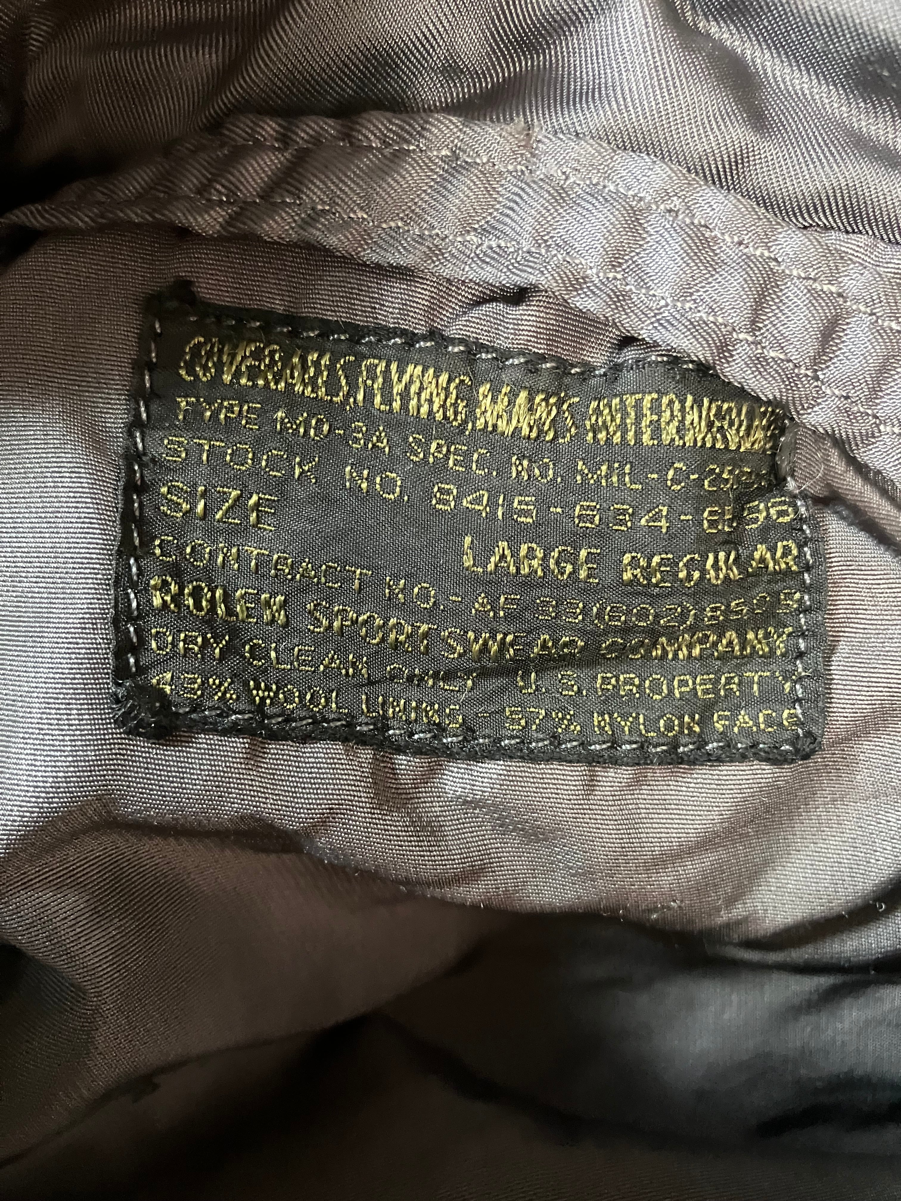 ナイロンシェル×ウールライニングの防寒仕様で、当時のフライト環境に対応したリアルミリタリーアイテム。