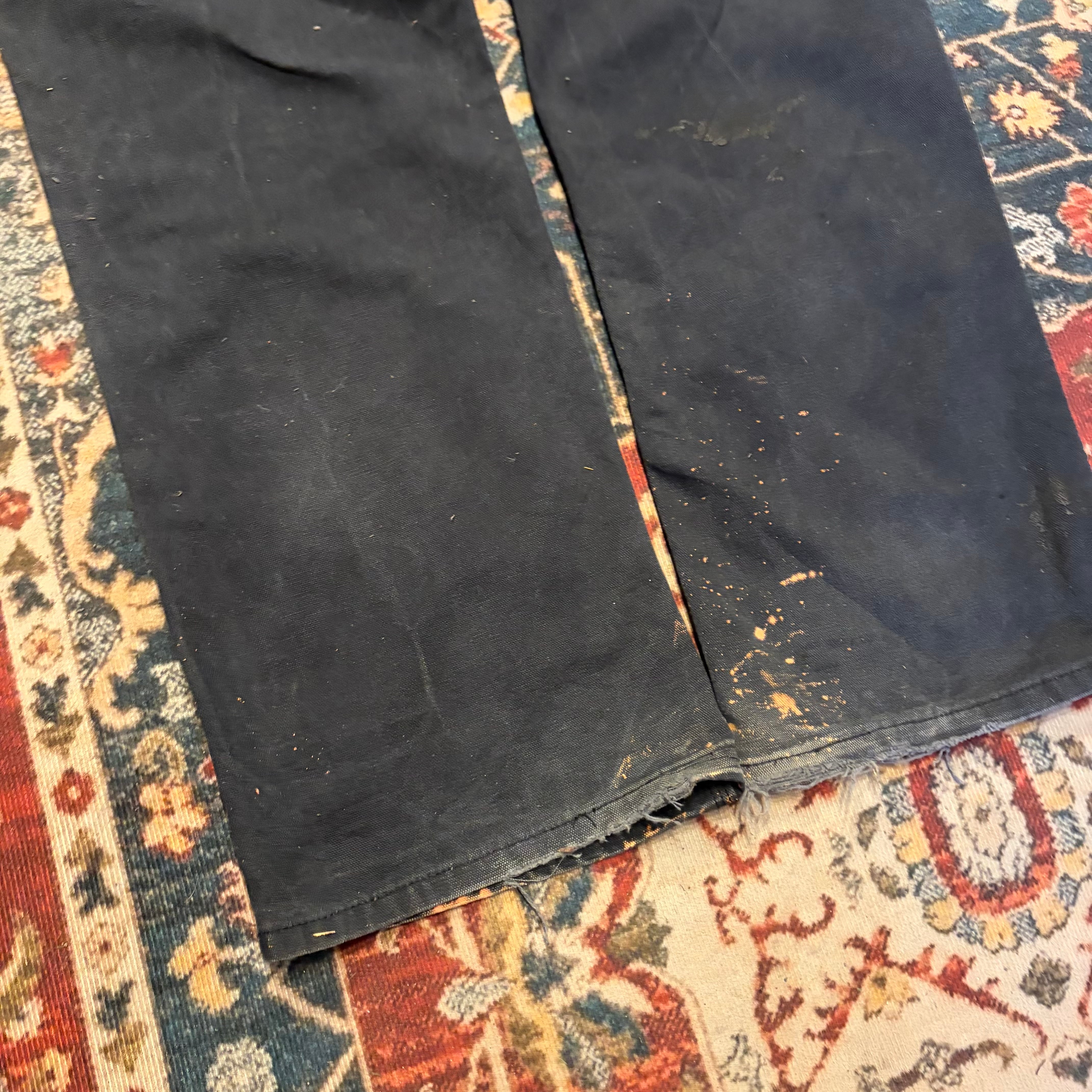 コンディション:フロント、ヒップに全体的にペンキ、インク汚れ、裾にダメージがございますが、着用に問題あるダメージはございません。