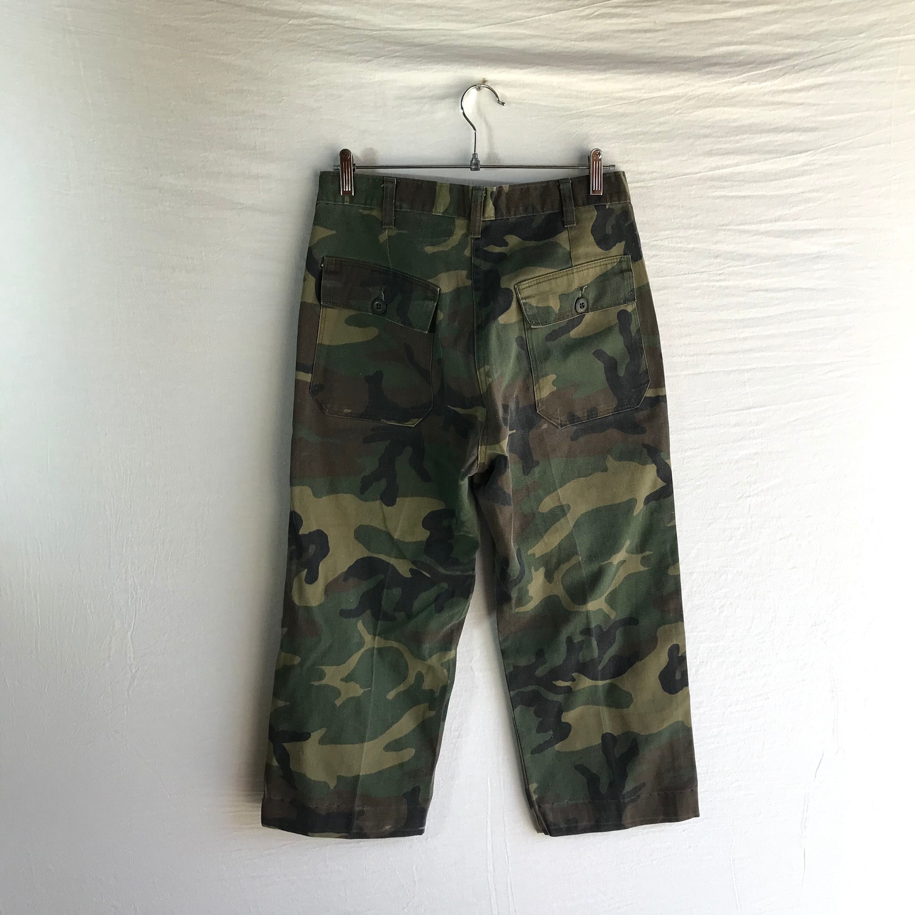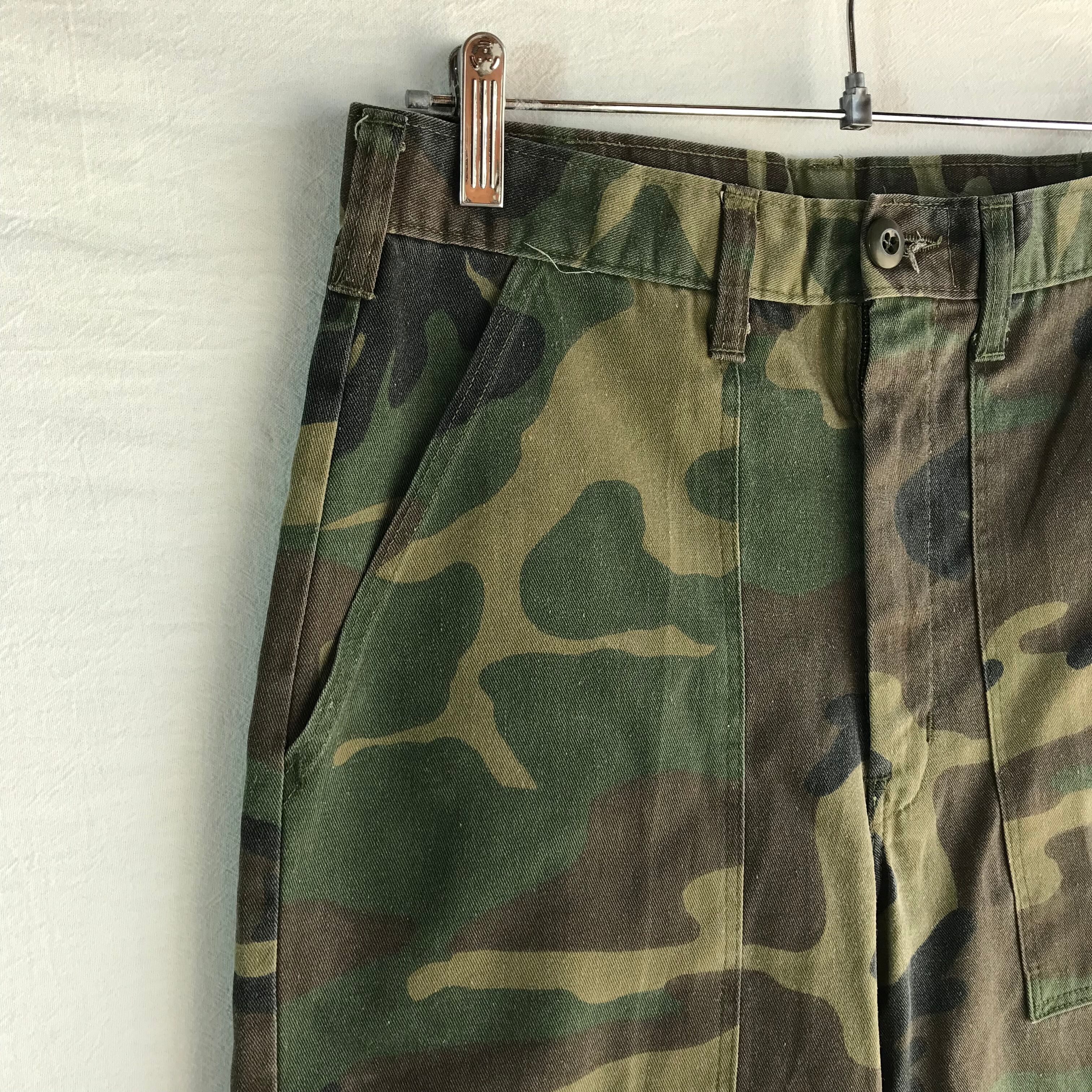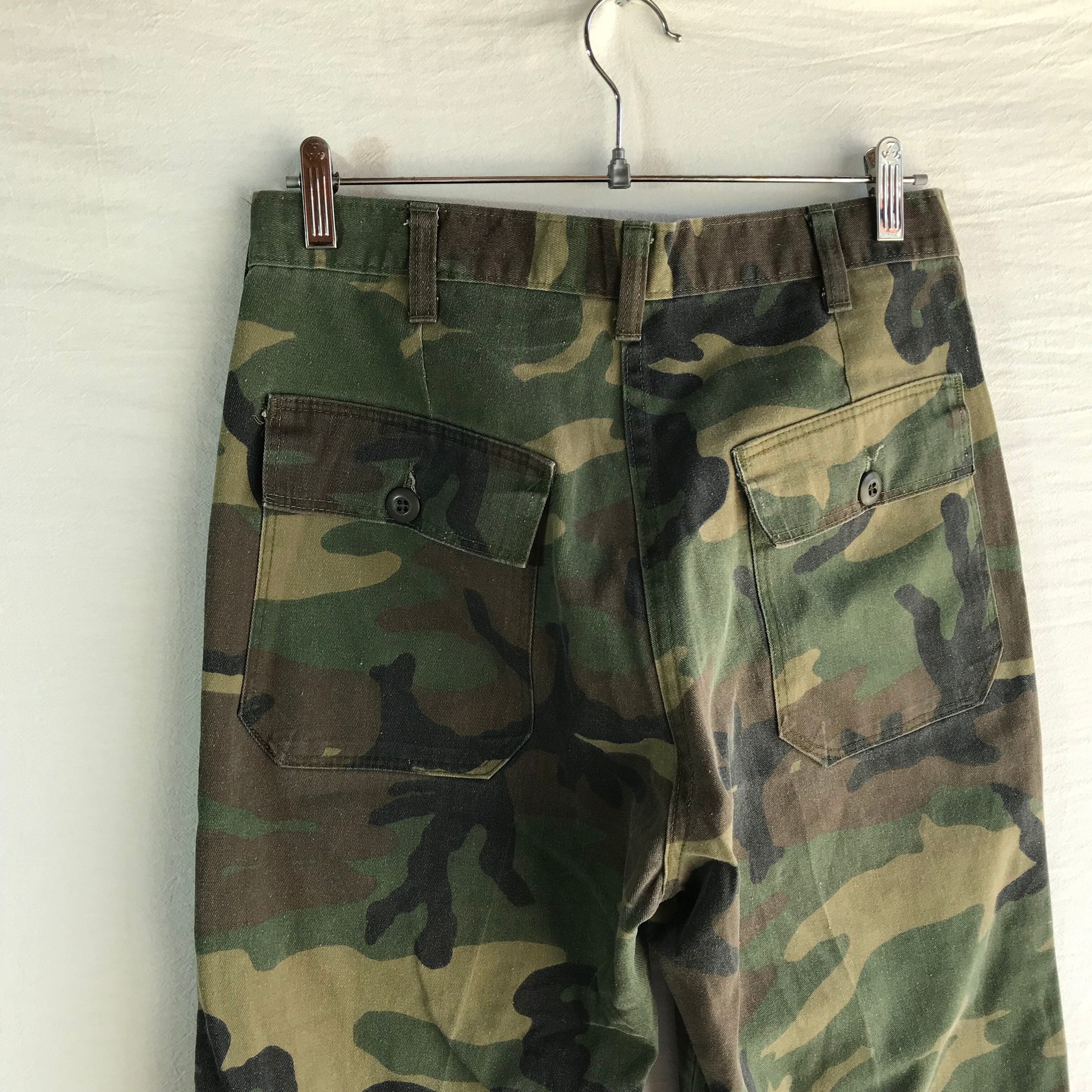 希少 80s 米軍 ヴィンテージ 迷彩 カモ コットンサテン OG-107 ベイカー カーゴ パンツ US Army 70s Talon タロンジッパー ミリタリー 80cm