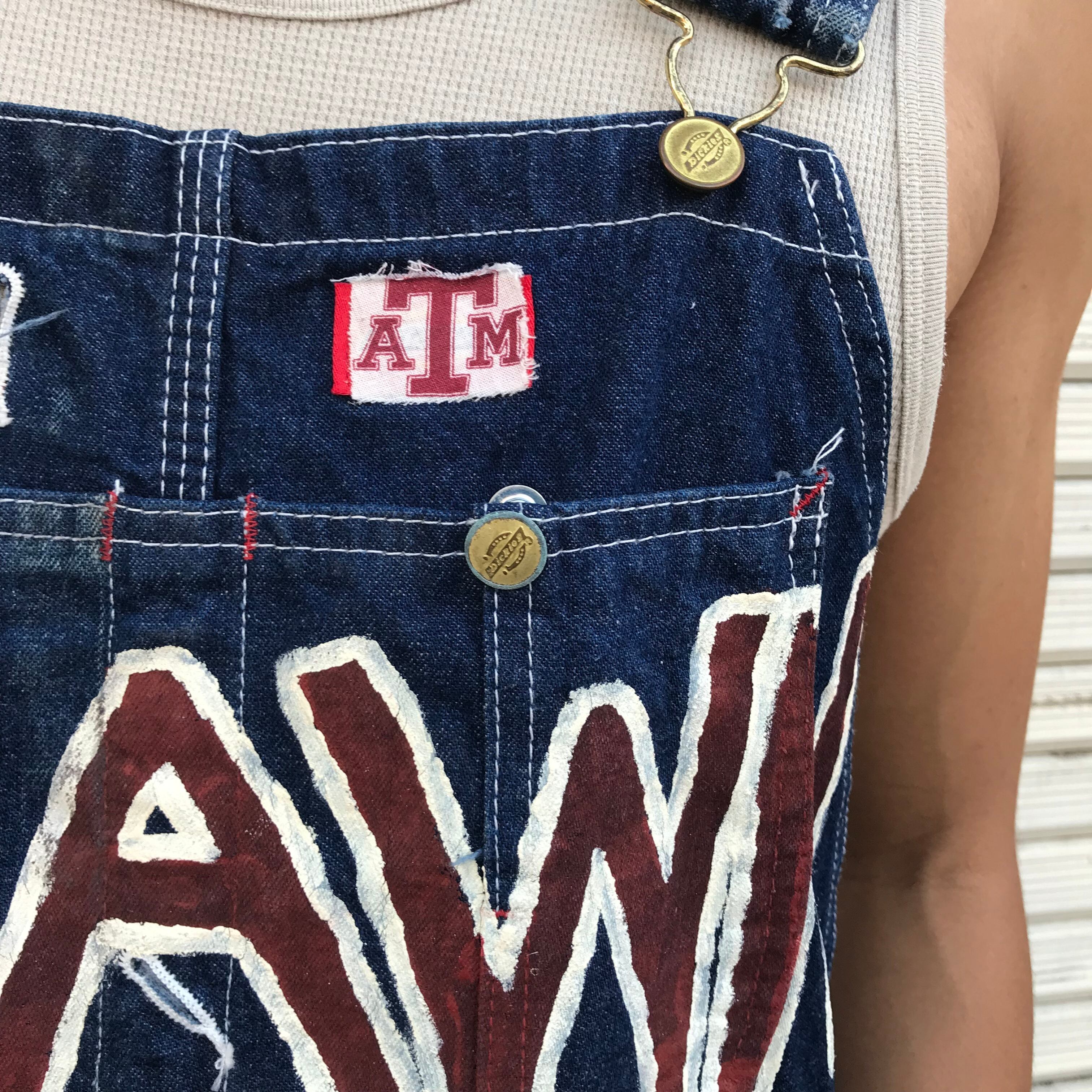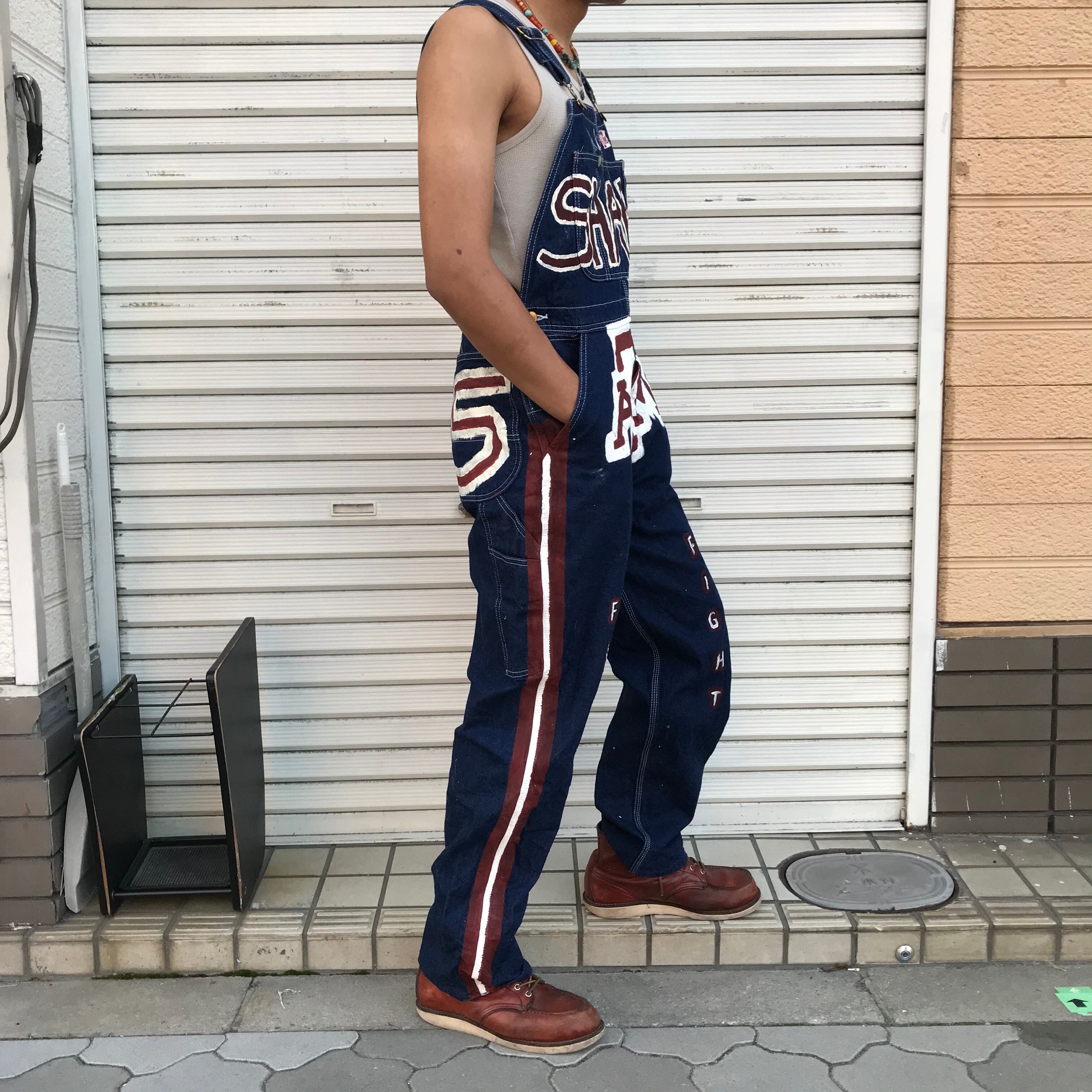 00s ディッキーズ ハンドペイント Dickies コットン ワーク デニム オーバーオール カレッジ カスタム デニム パンツ US オンリーワン 34