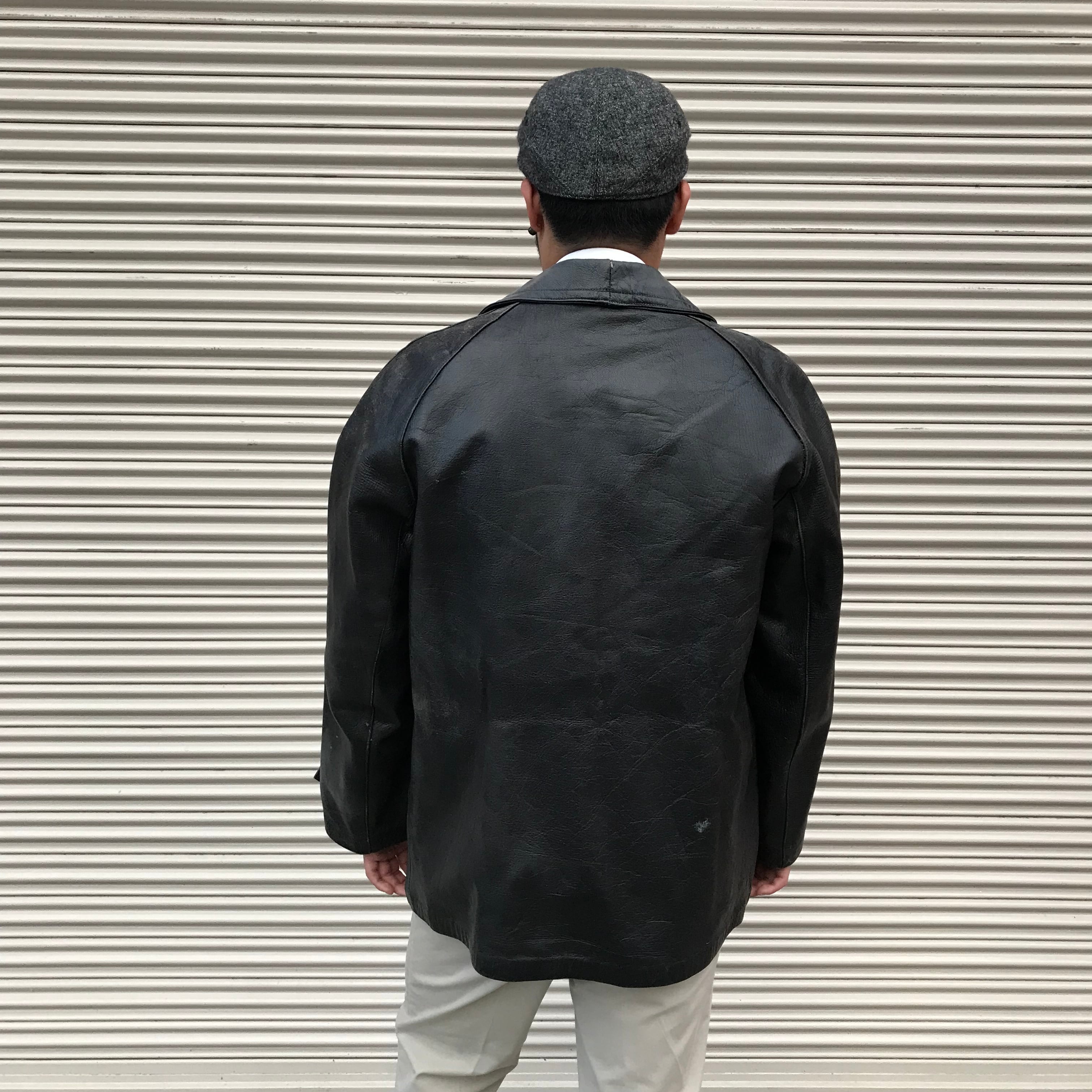 50s Italy Vintage イタリア軍 ポリスマン レザー カーコート ブラック ヴィンテージ ユーロ ヴィンテージ 40s ジャケット クロームレザー