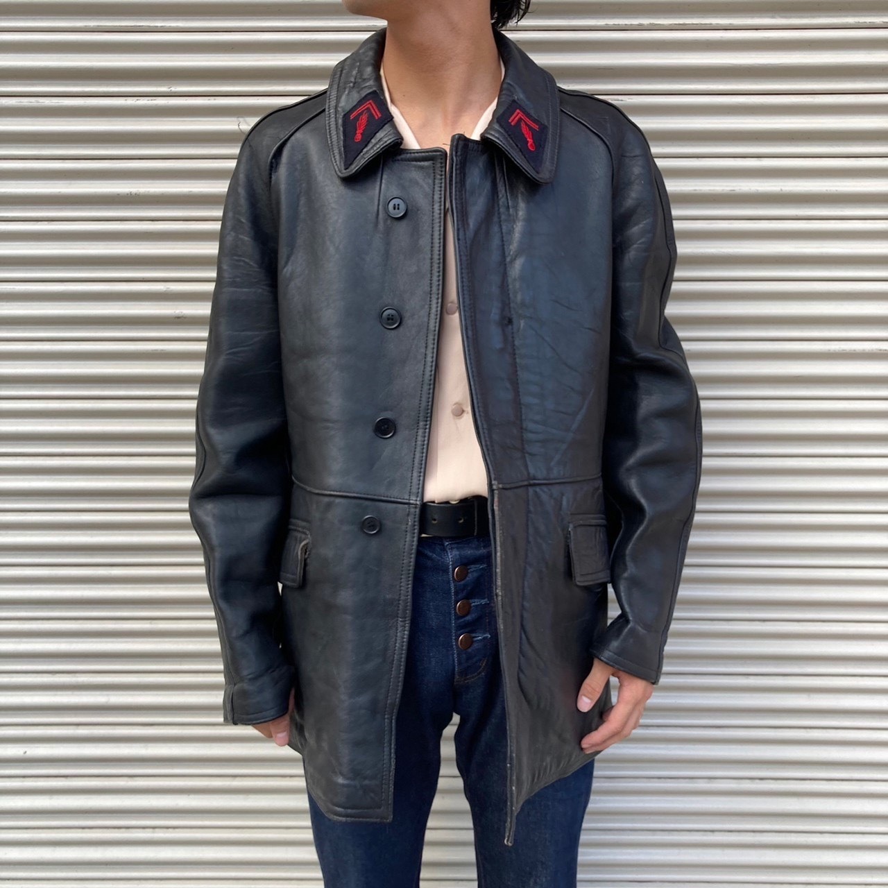 Sサイズ 60s French Vintage ヴィンテージ ファイヤーマン レザー ジャケット コート フレンチ カーコート フランス軍 ラムスキン 羊革 70s