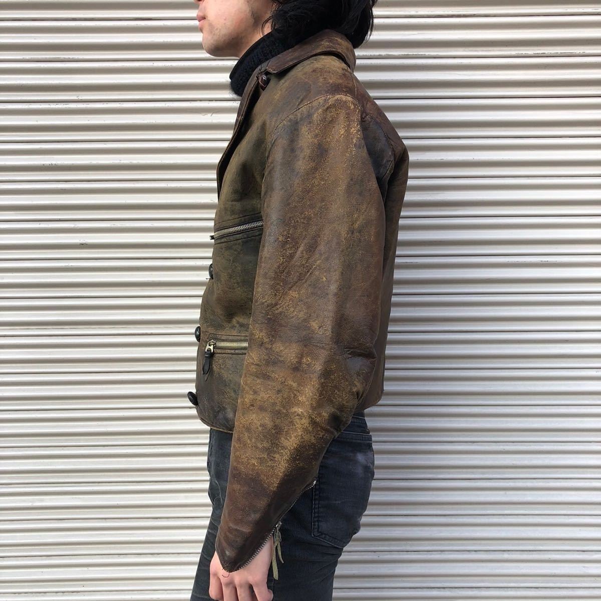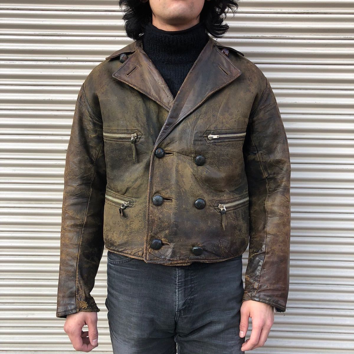 超貴重 30s 40s Germany vintage モーターサイクルジャケット ドイツ製 ヴィンテージ ミリタリー レザー 茶芯 ドイツ軍 裏ムートン S