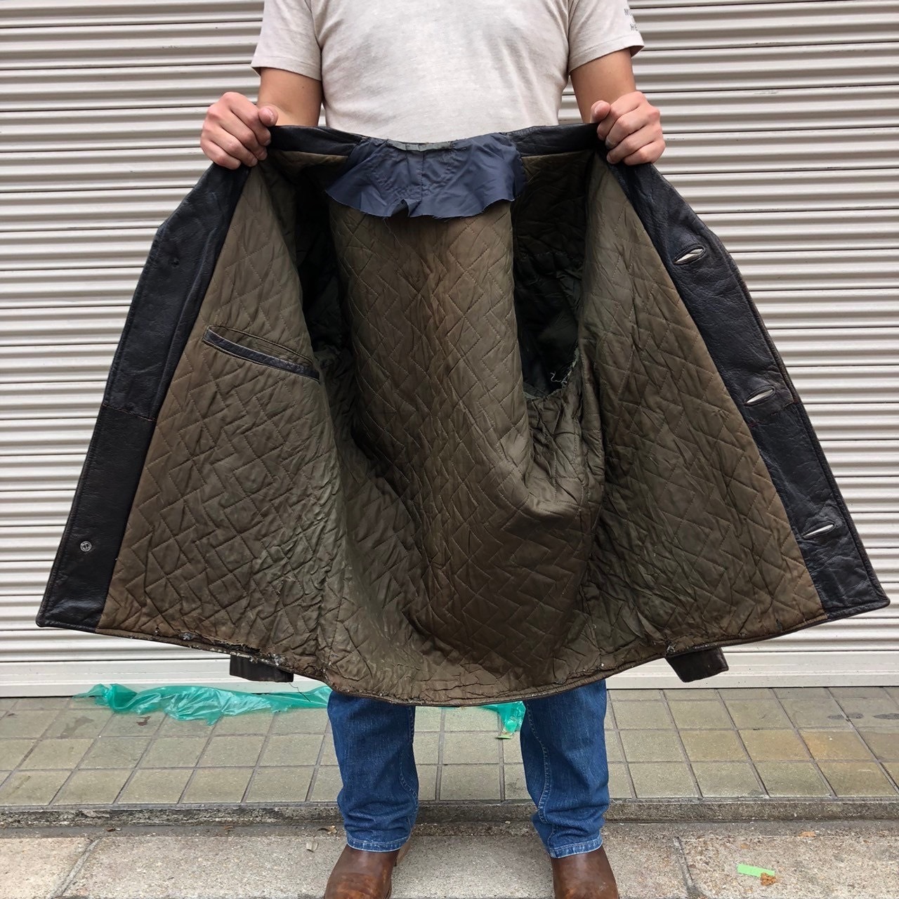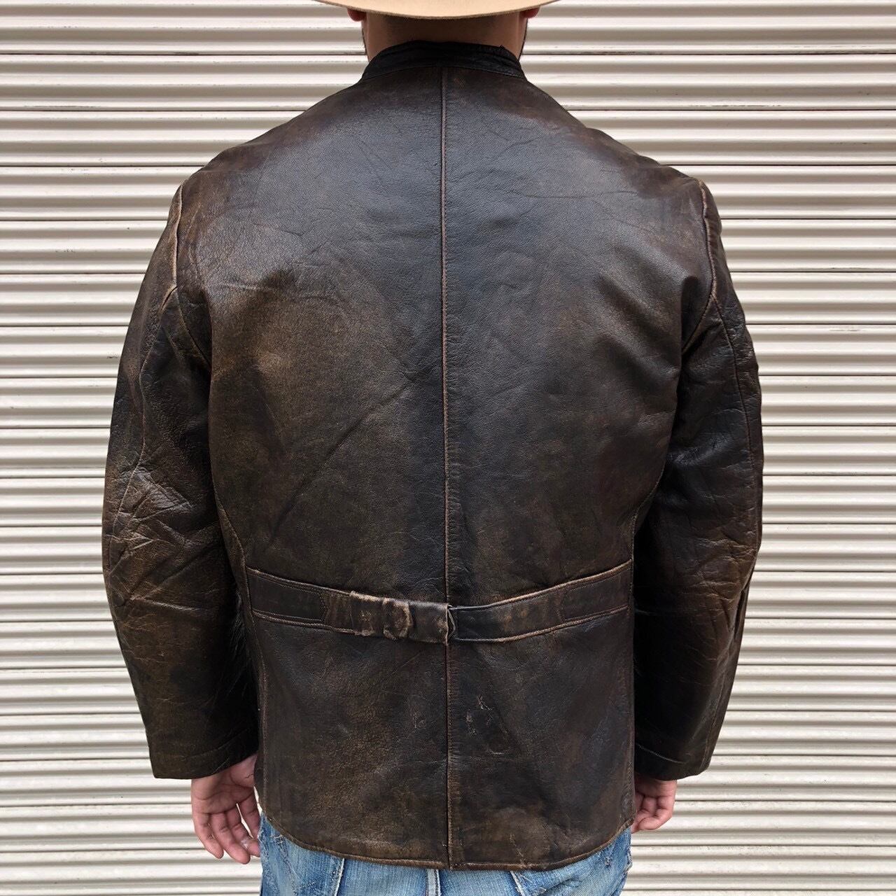 雰囲気抜群 40s スウェーデン ヴィンテージ レザー ゴートスキン シングル カーコート ジャケット 50s 茶辛 コルビジェ 針刺し フランス軍