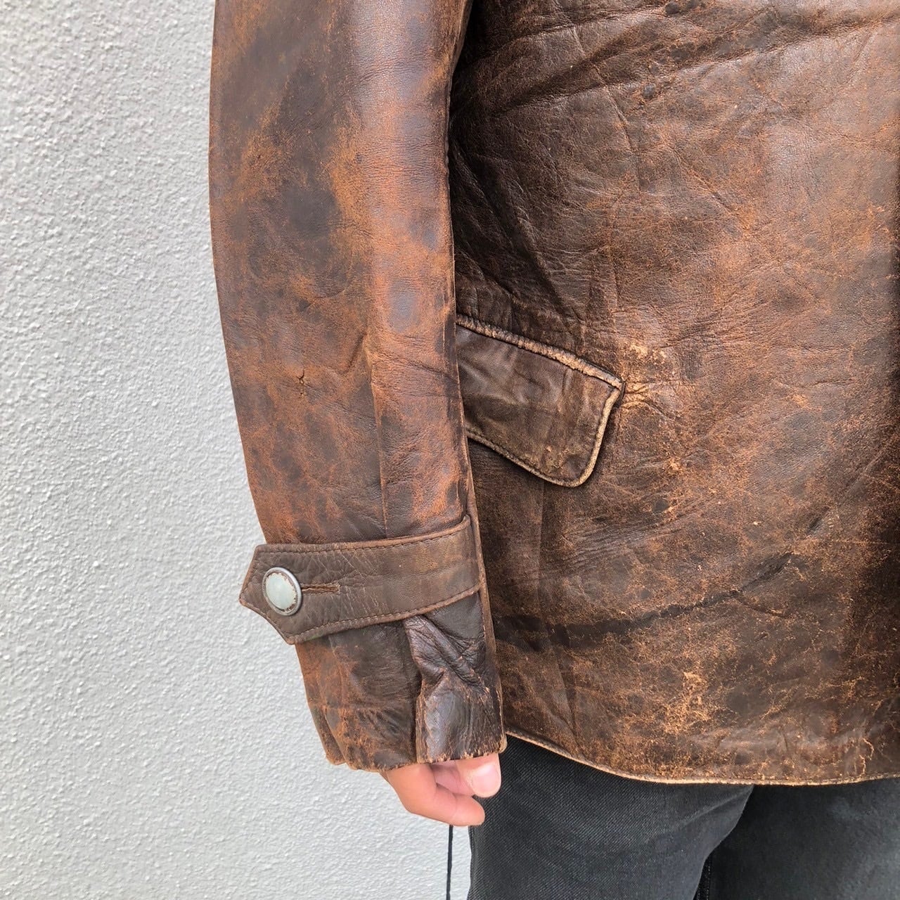 コンディション : 背中、肩付近に目立つ擦れ傷、全体的に使用感あります。破れなどのダメージ、ボタンの欠損などはありません。
