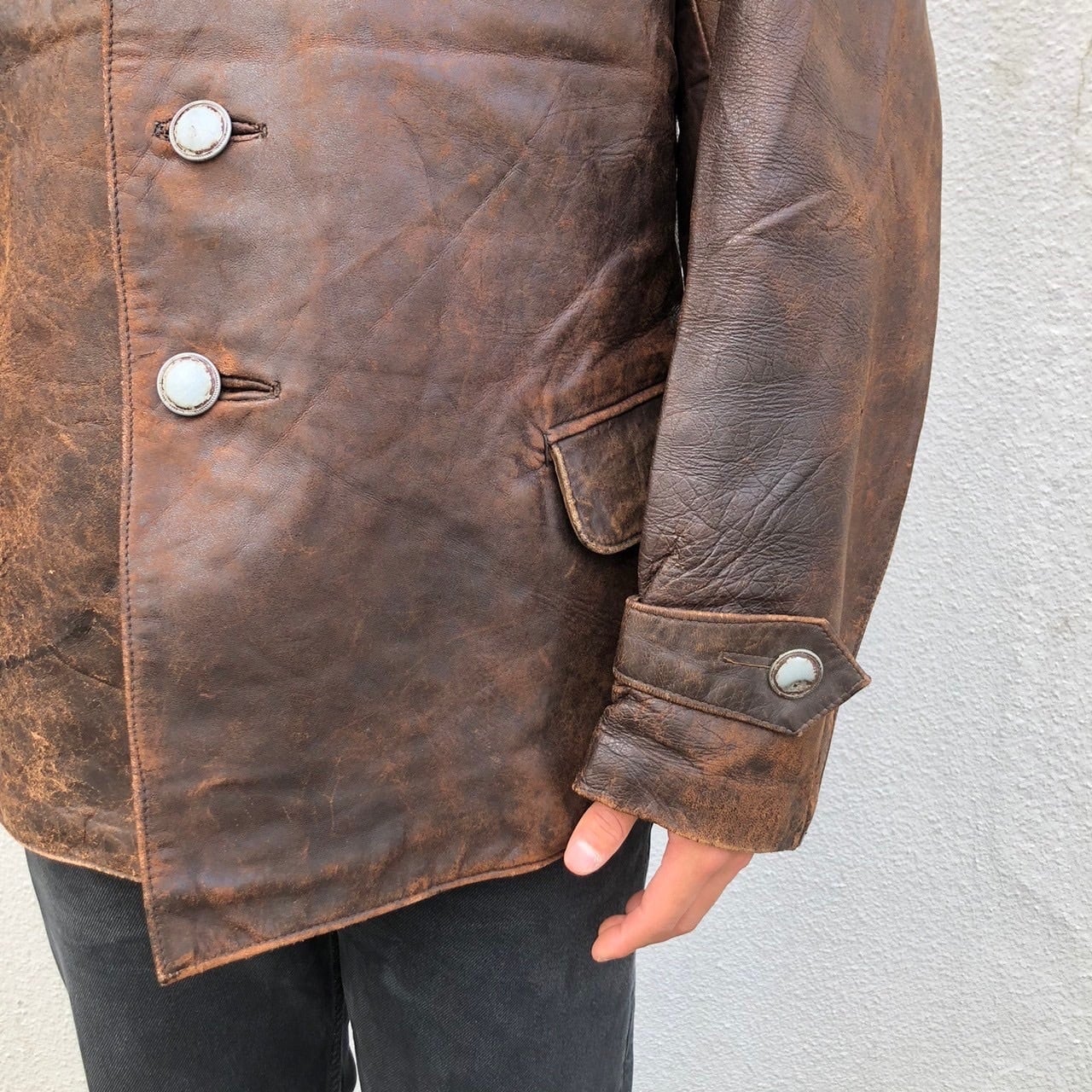 極上 貴重 40s ドイツ軍 実物 Uボート レザー ジャケット SS 武装親衛隊 U-BOAT ヴィンテージ WW2 カーコート ブラウン 30s ミリタリー 茶