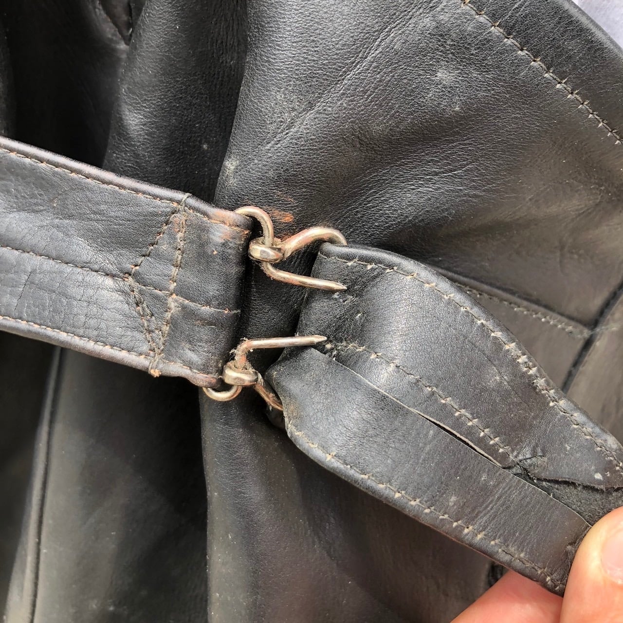 美品 40s スウェーデン軍 実物 レザー モーターサイクル パンツ ジョッパーズ オーバーオール ヴィンテージ 針刺し バックルバック 30s WW2