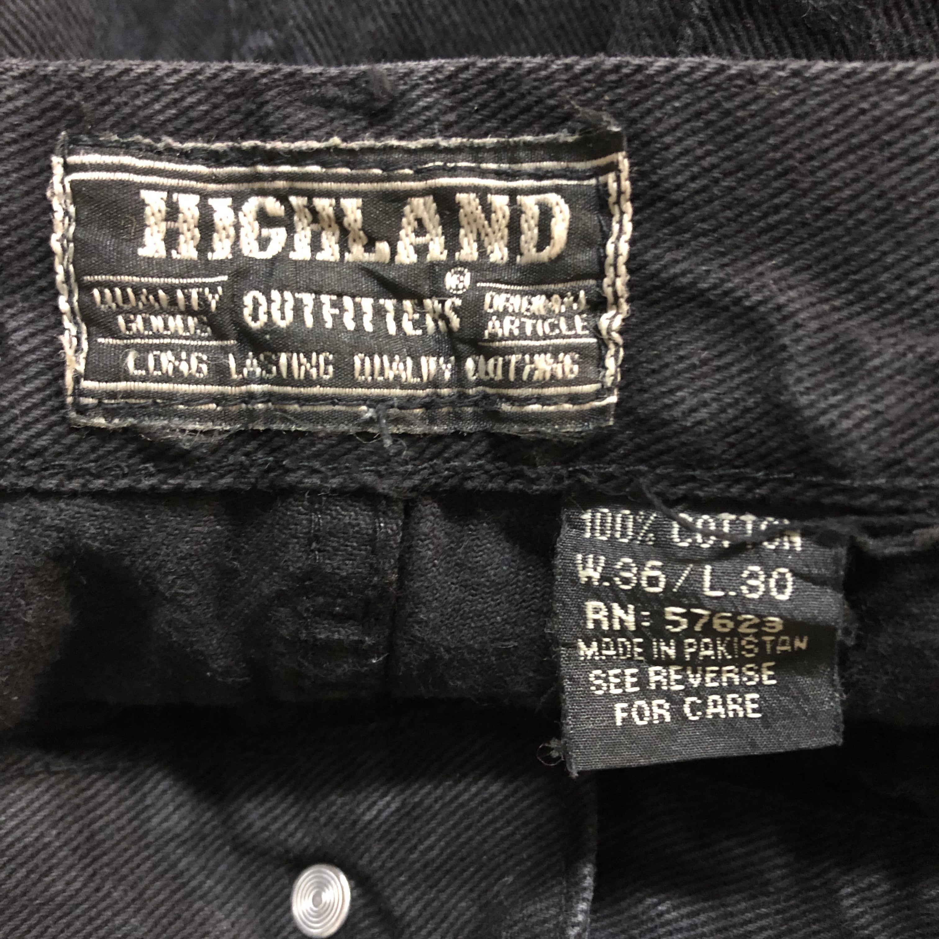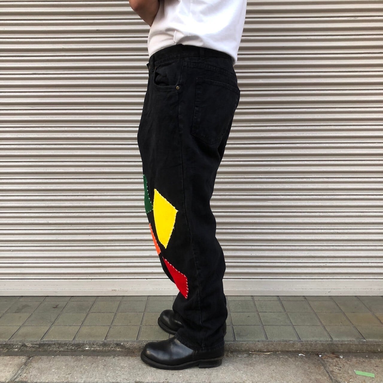 Highland ブラックデニムパンツ パッチワーク ヒッピー 後染め 00s ブラック 黒 ヴィンテージ 86cm W36 L30 Lサイズ90s カスタム 古着