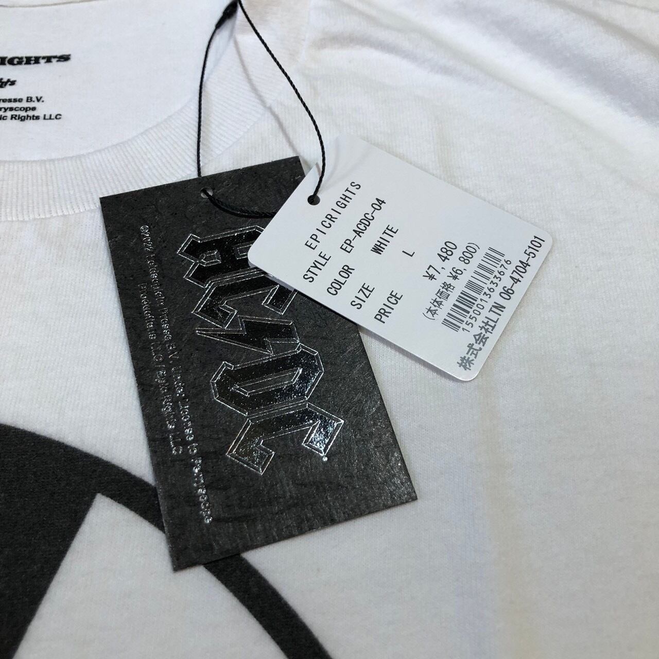新品 未使用品 Epic Rights ACDC バンド バンドTシャツ カットソー 半袖 カットソー ホワイト 白 プリント Tシャツ トップス Lサイズ